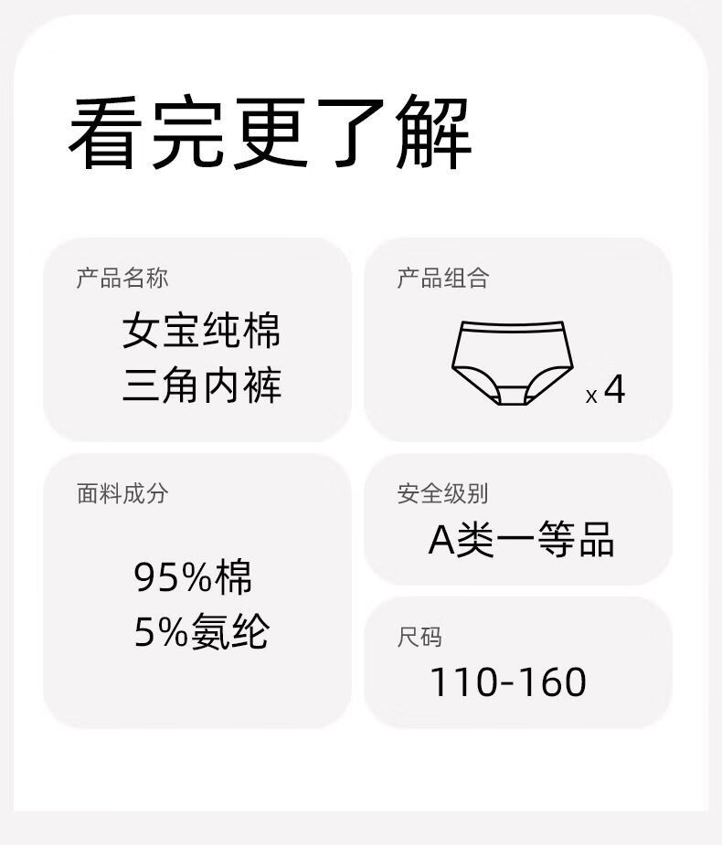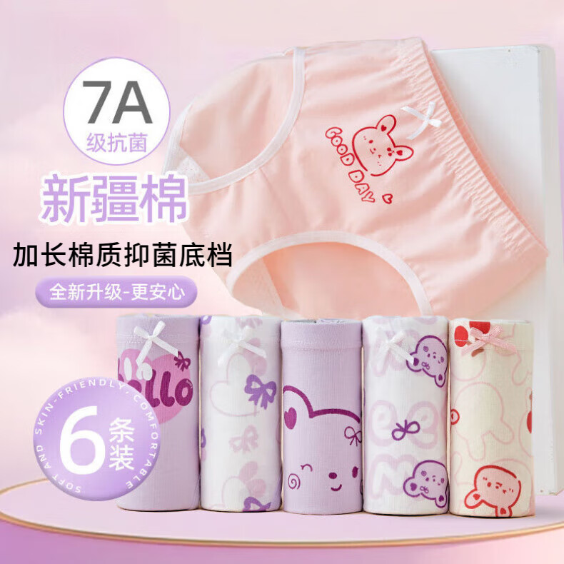 Modal children's underwear girls baby cotton briefs shorts bottoms medium size children baby little girl home pants triangle Xinjiang cotton 7A antibacterial 6 pieces A 130 (XL) 38-48Jin Jin equals 0.5 kg