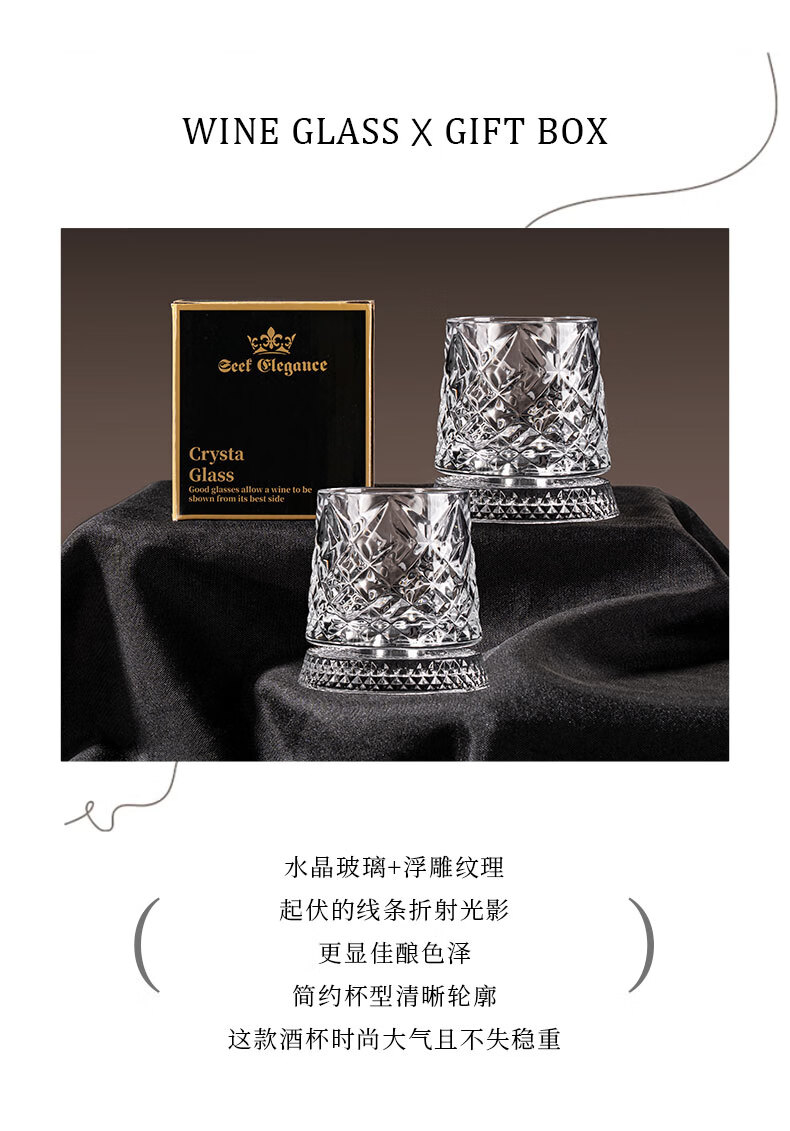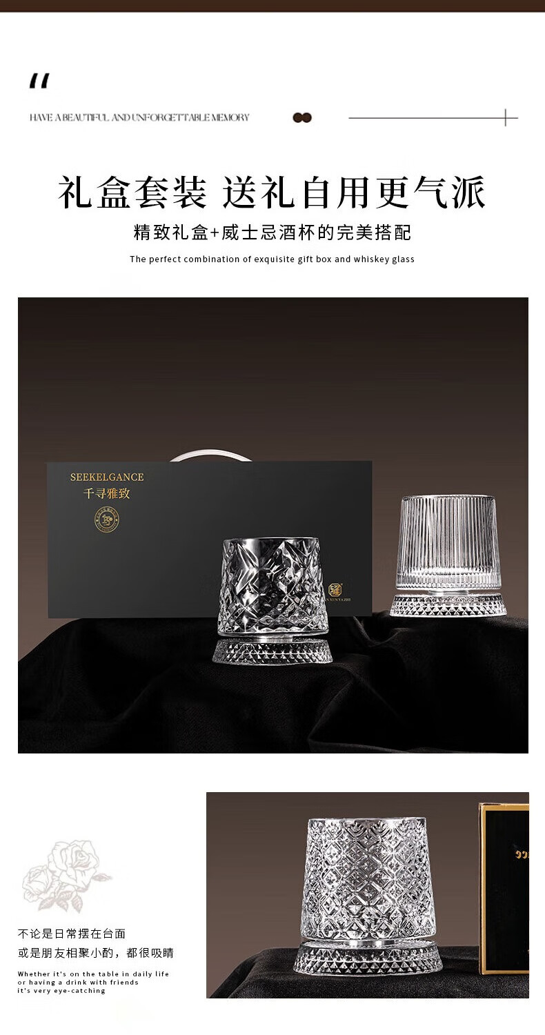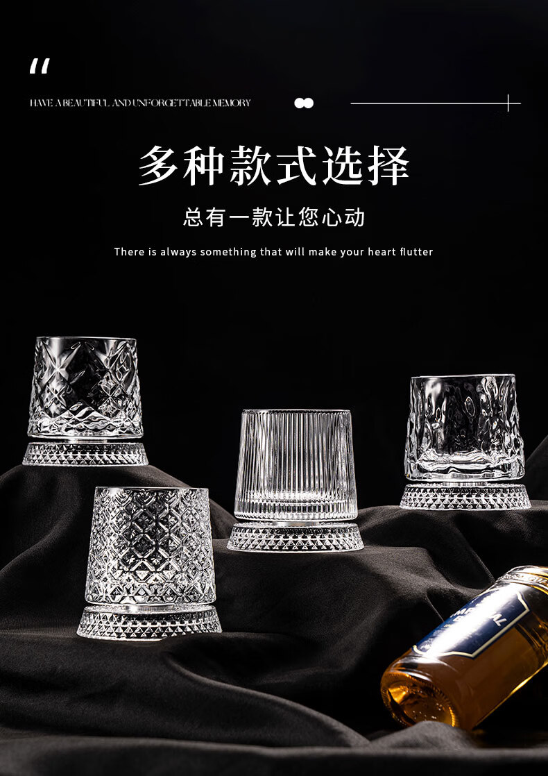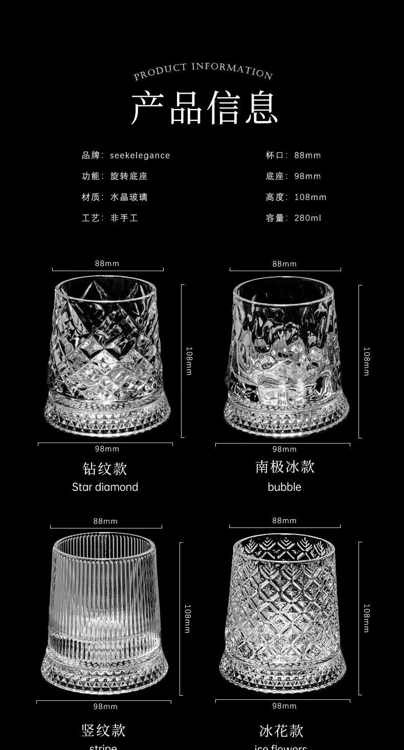 Qianxun Yazhi's new creative whiskey glass set glass t foreign wine glass rotating cup water glass glass beer diamond style 280ml crystal bottom rotating cup
