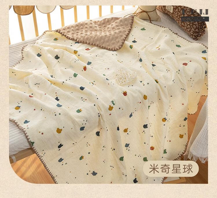 He Jiagong Japanese brand imported baby blanket Class A baby special small quilt baby blanket pure cotton gauze bean blanket 150*120.c.m-Mickey Planet four-layer gauze blanket