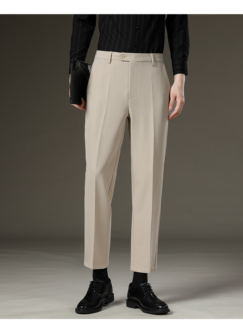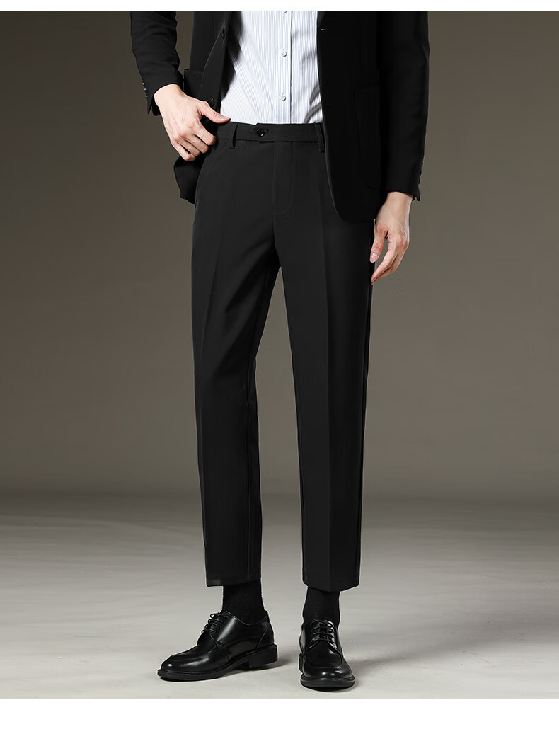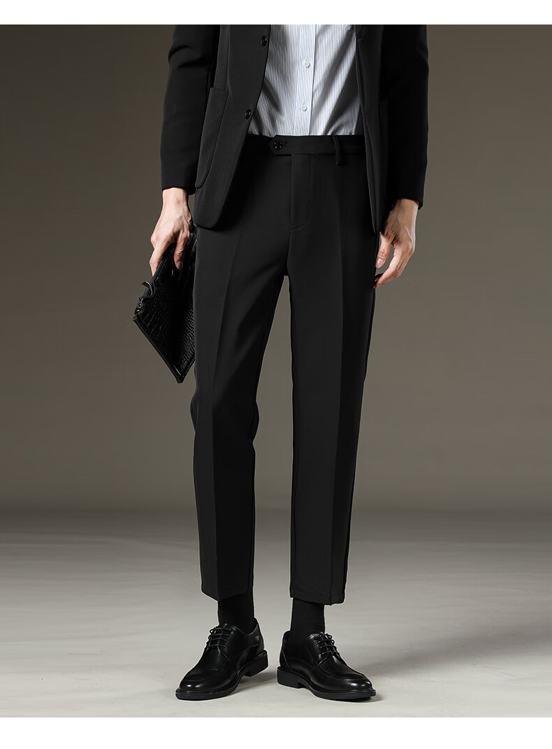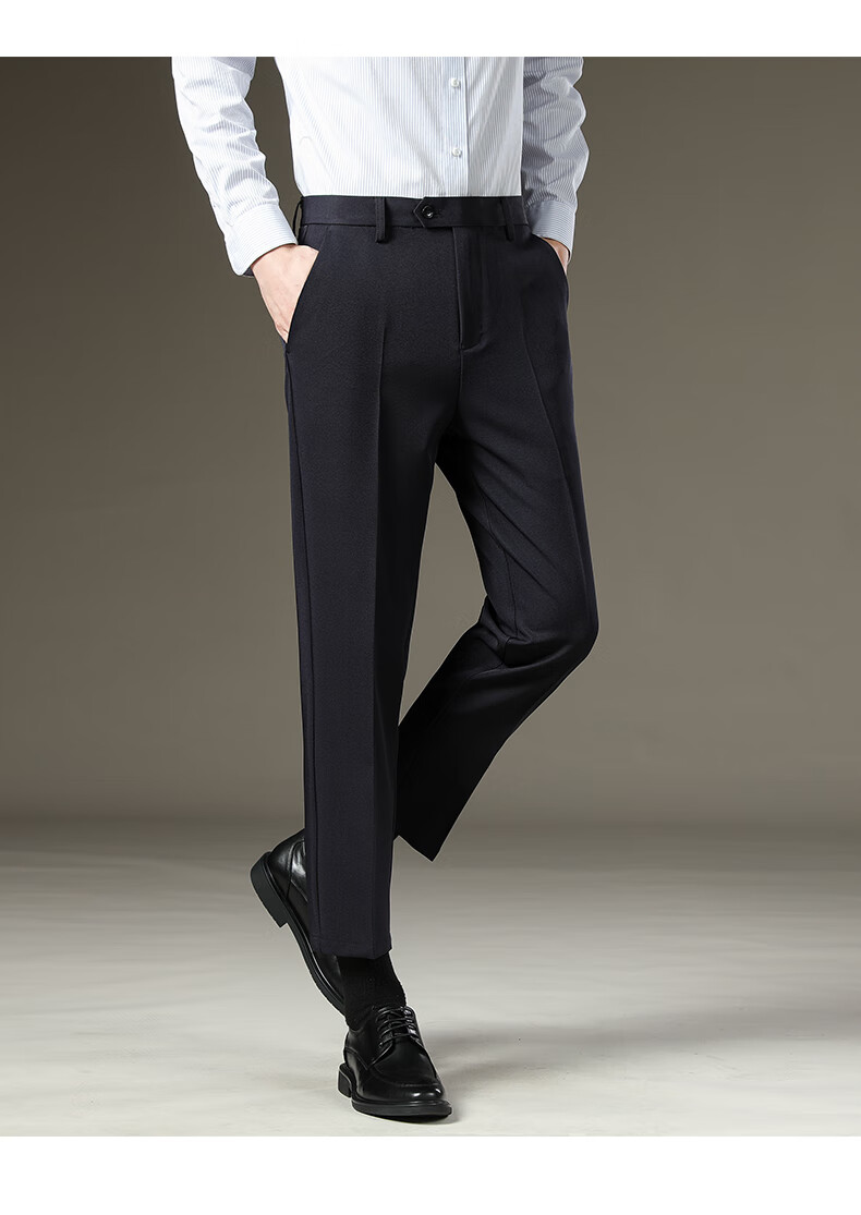 LESS IS MORE Lilang Men's Suit Pants 2025 Winter New Men's Thick Slim Straight Business Casual Nine-Point Pants Suit Pants Dark Gray Nine-Point Pants Plus Velvet 30 (Recommended 120-130 Jin Jin equals 0.5 kg)
