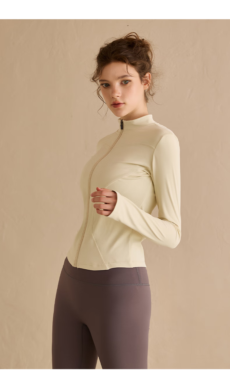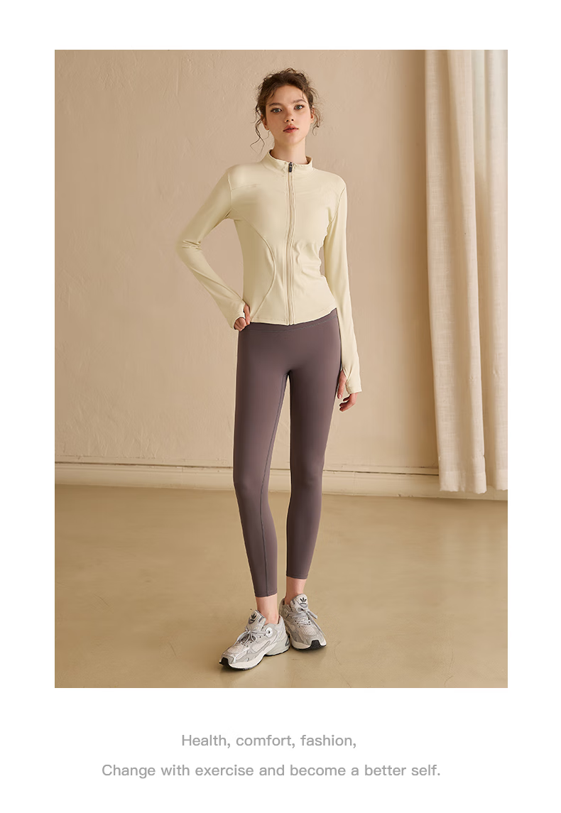 Tanbeiman Stand Collar Zipper Yoga Wear Jacket Women's Cardigan Cycling Wear Quick-Drying Sports Top Long Sleeve Autumn and Winter Running Fitness Wear Purple.