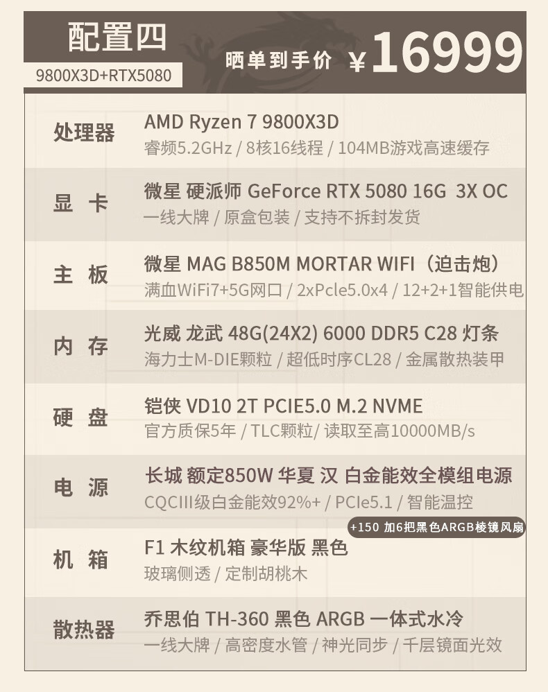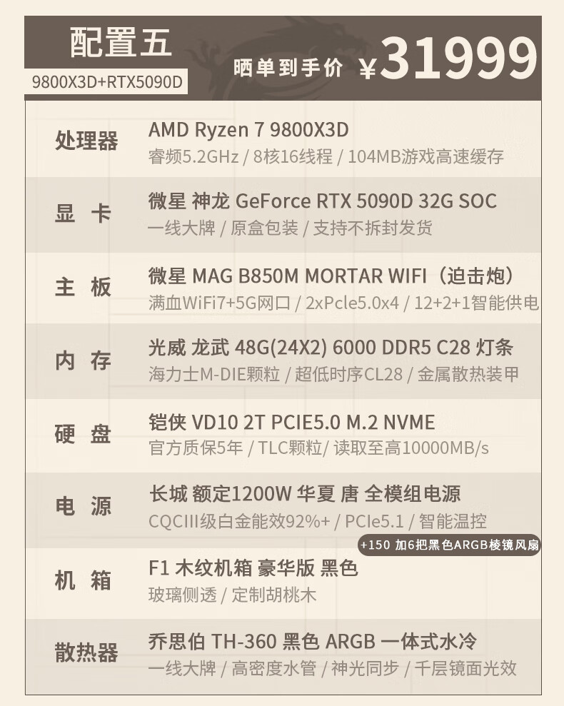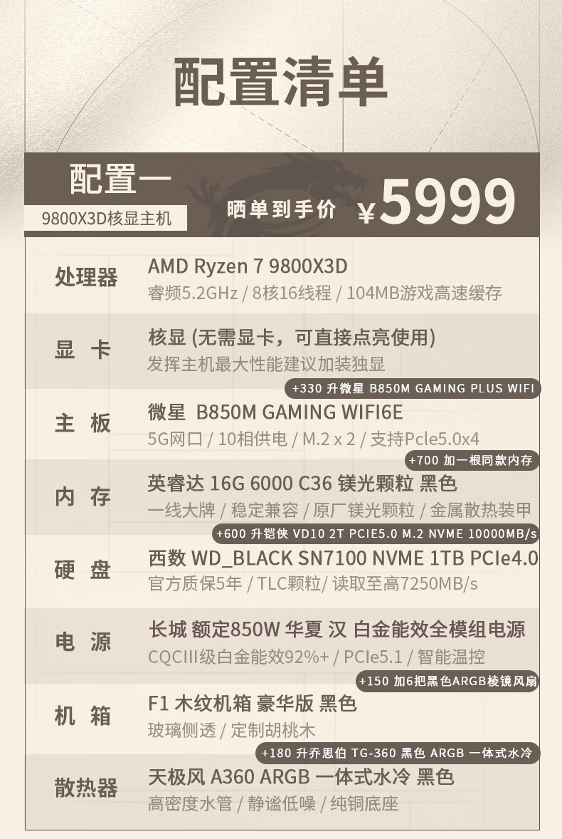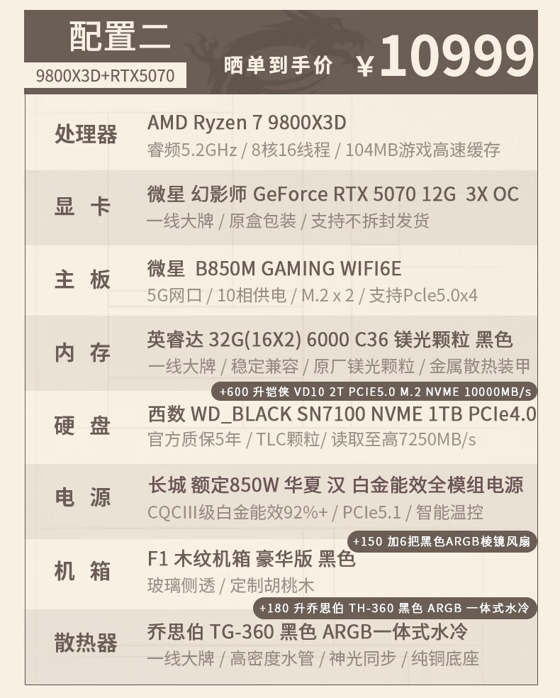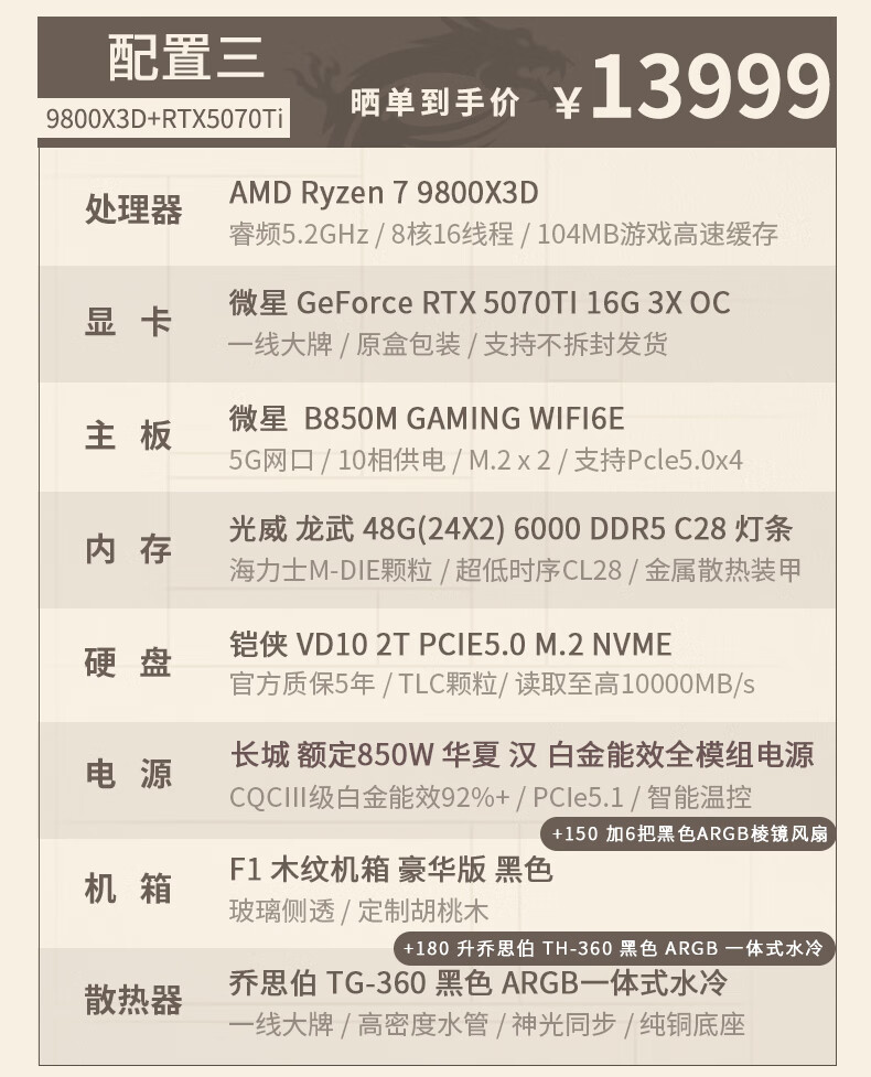 MSI AMD Ryzen 7 9800X3D/RTX5090D/5080/5070 E-sports game desktop AI design and assembly computer Black Myth host complete machine DIY sea view room assembly machine Configuration three | 9800X3D/5070Ti