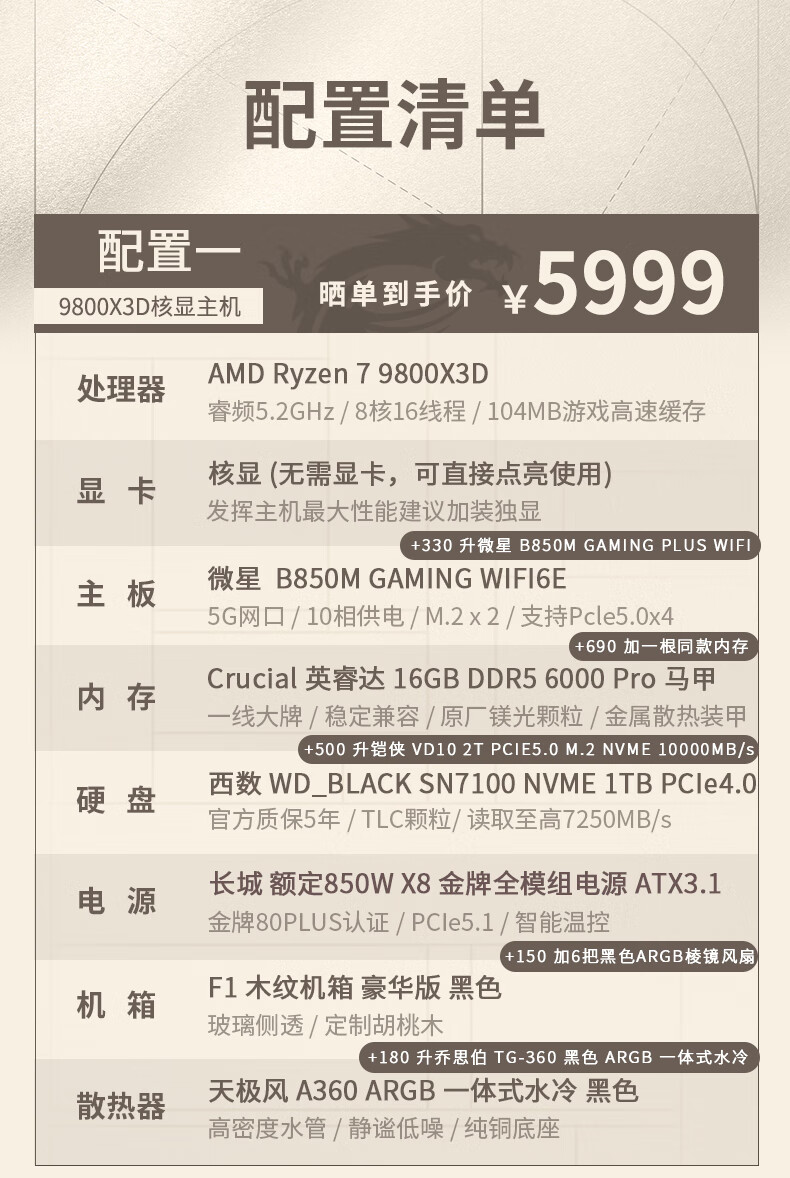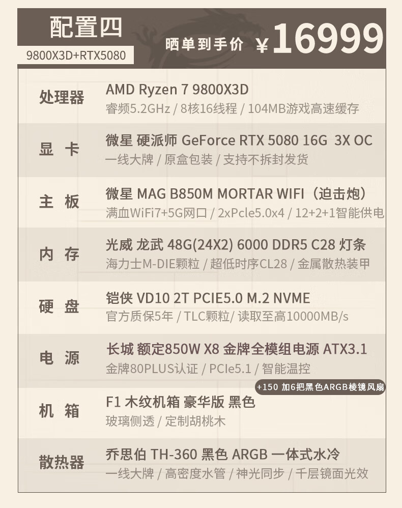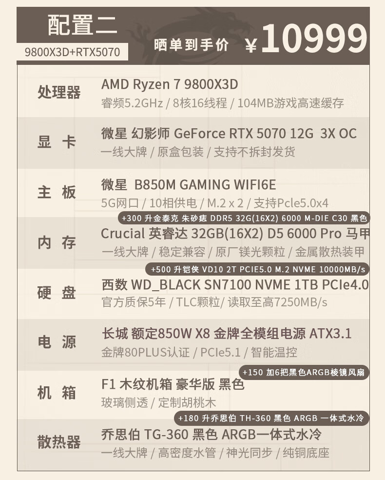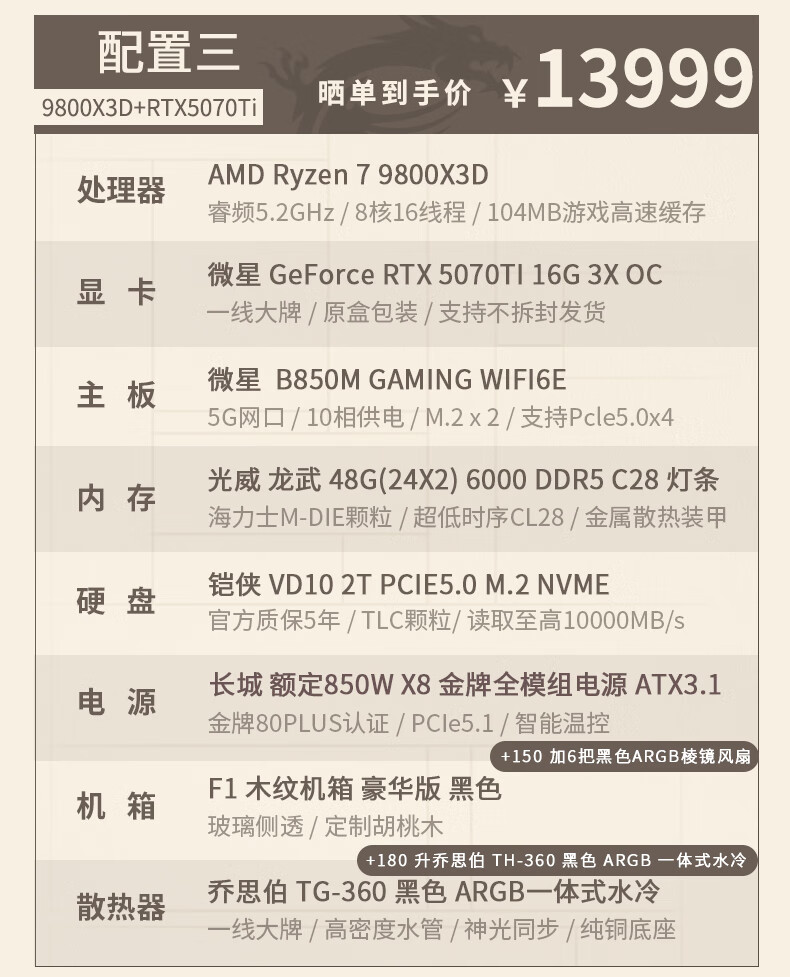 MSI AMD Ryzen 7 9800X3D/RTX5090D/5080/5070 e-sports game desktop AI design and assembly computer Black Myth host complete machine DIY sea view room assembly machine configuration four | 9800X3D/5080