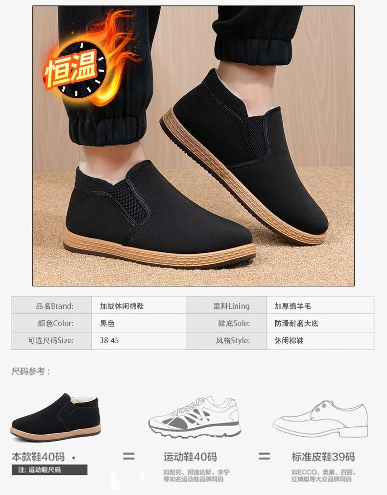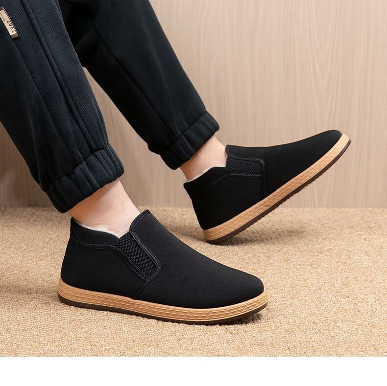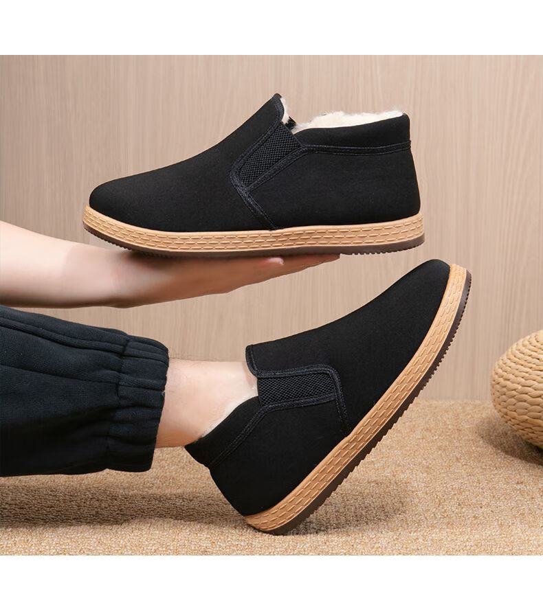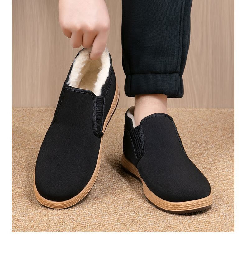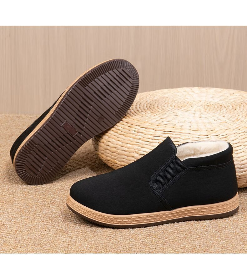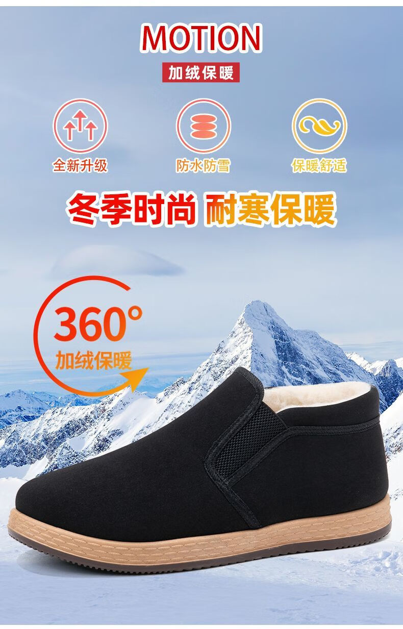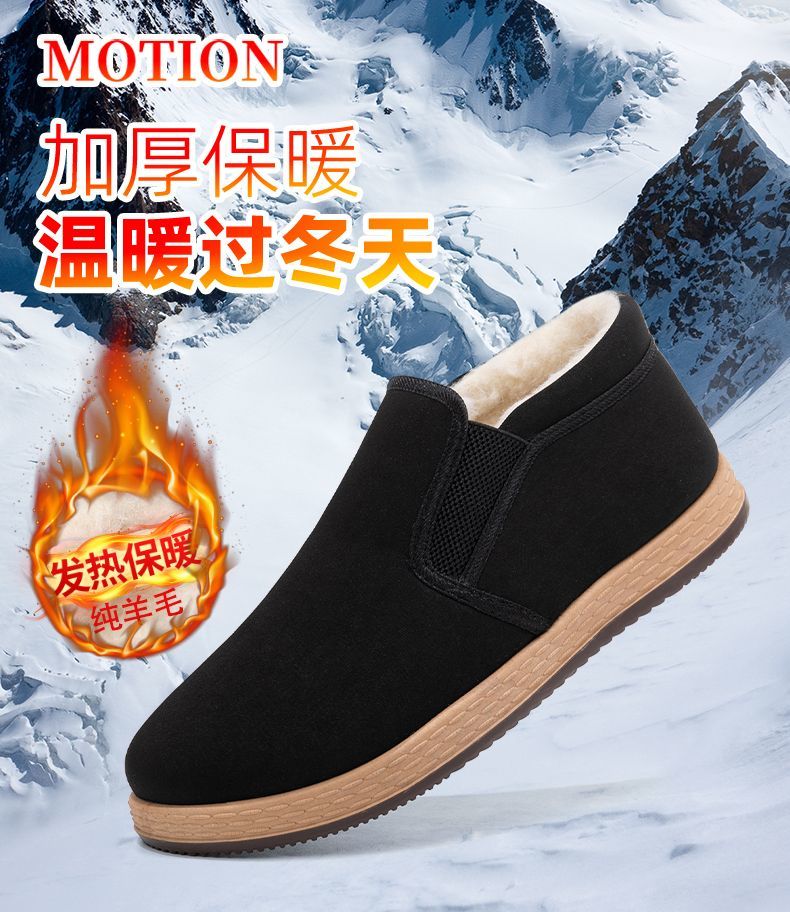 Winter sheep wool high-top old Beijing cloth shoes and cotton shoes plus velvet and thickening to keep warm dad shoes lightweight non-slip black cloth shoes YH-A8 velvet and thickened old Beijing high-top wool and cotton shoes 43 (265mm) standard size
