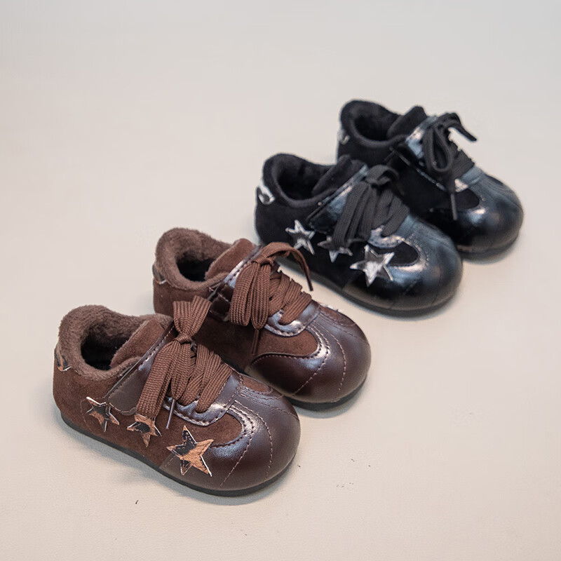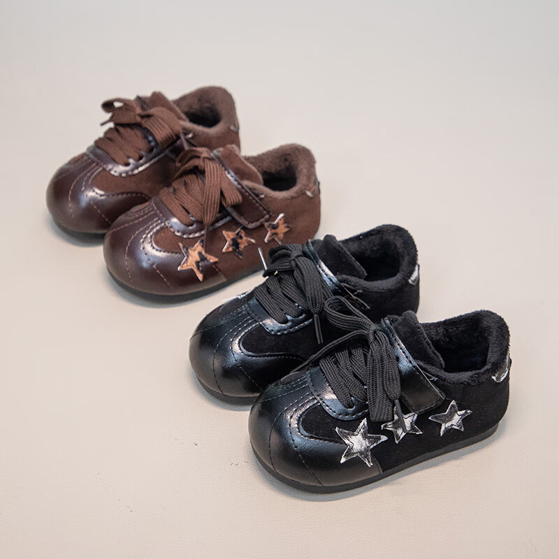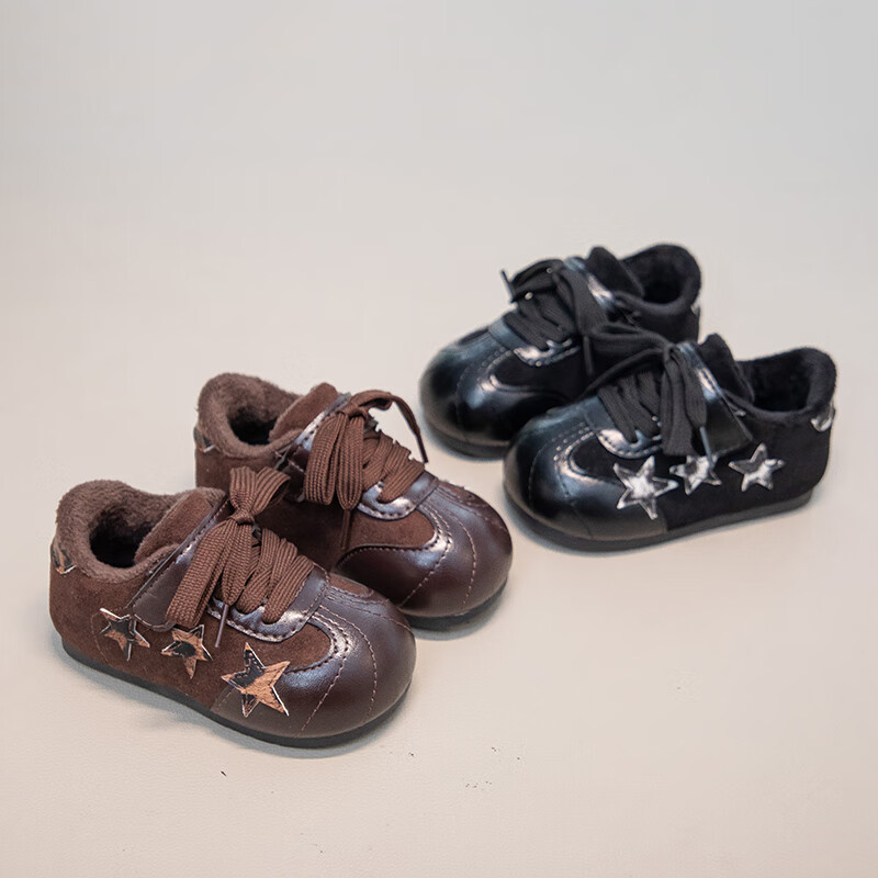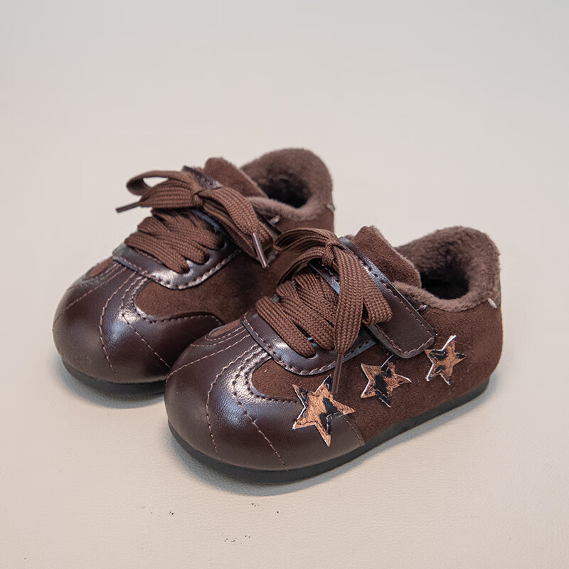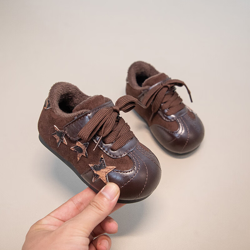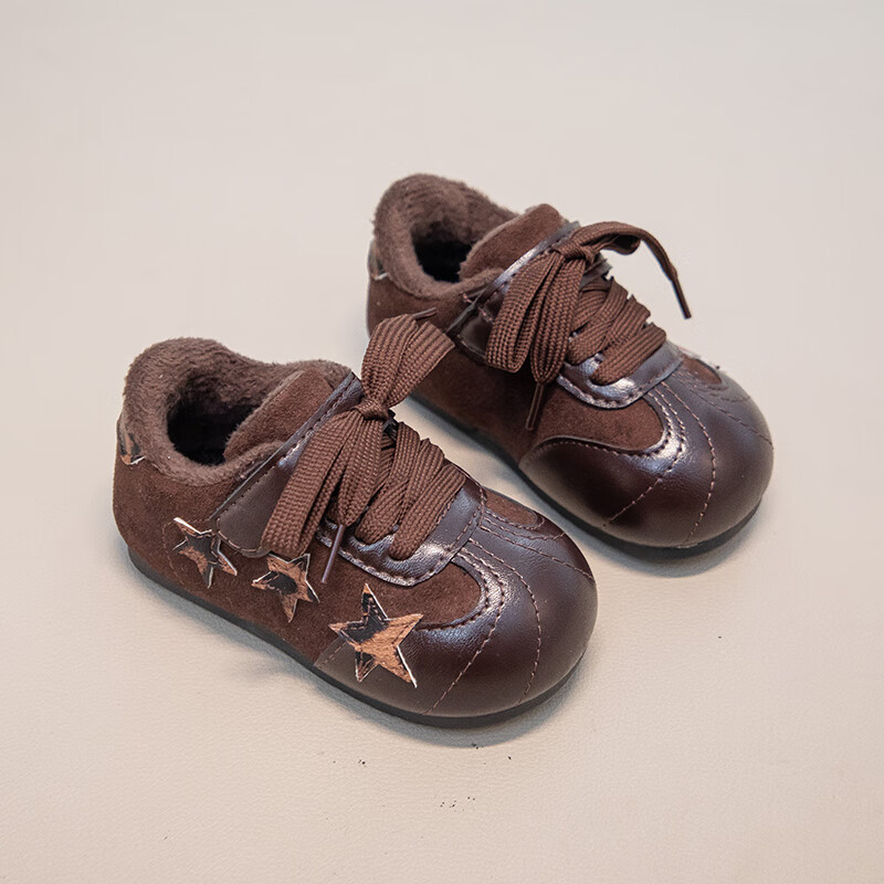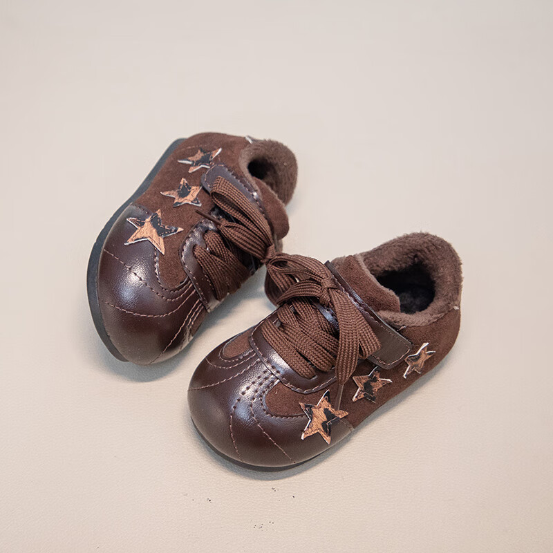 Girls' Cotton Shoes 2025 Winter New Children's Girls Princess Shoes Soft Sole Plus Velvet Second Cotton Moral Training Shoes Sports Shoes Brown (Photographed by Inner Length) 29 Inner Length Approximately 17.8cm/Suitable for Foot Length 16.8cm