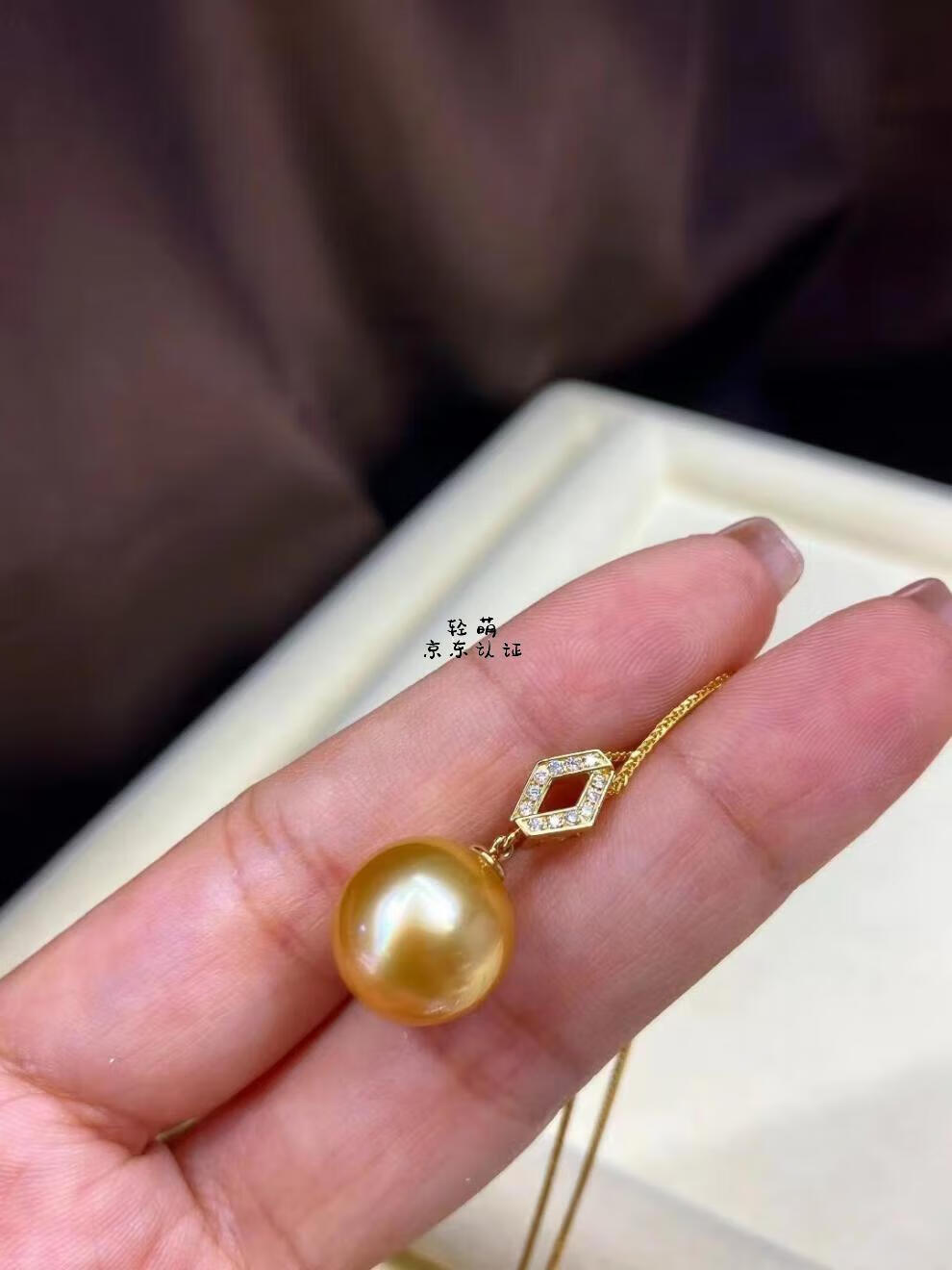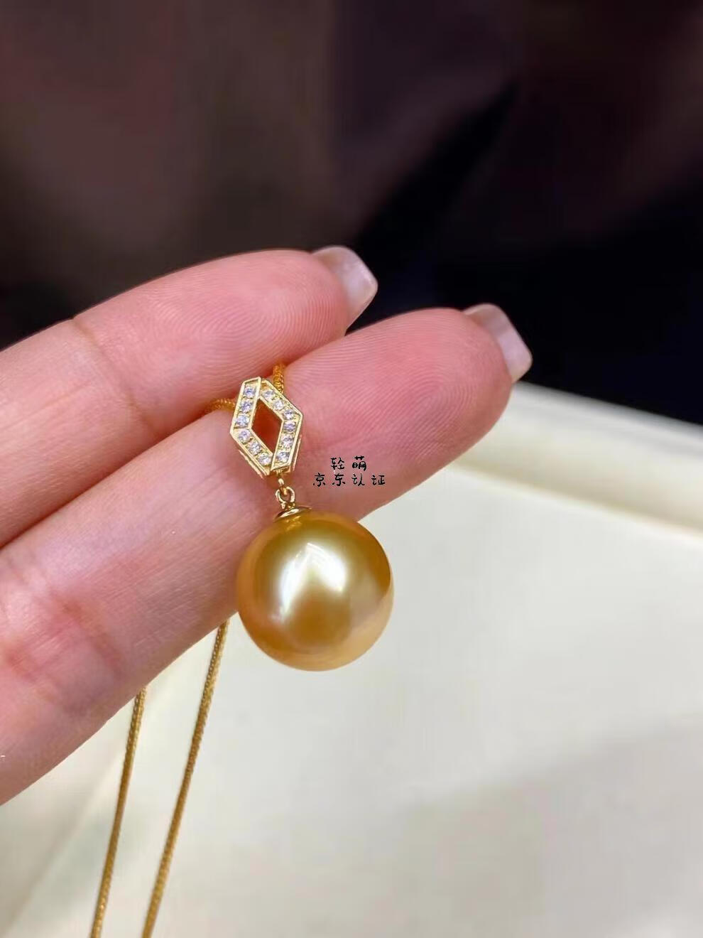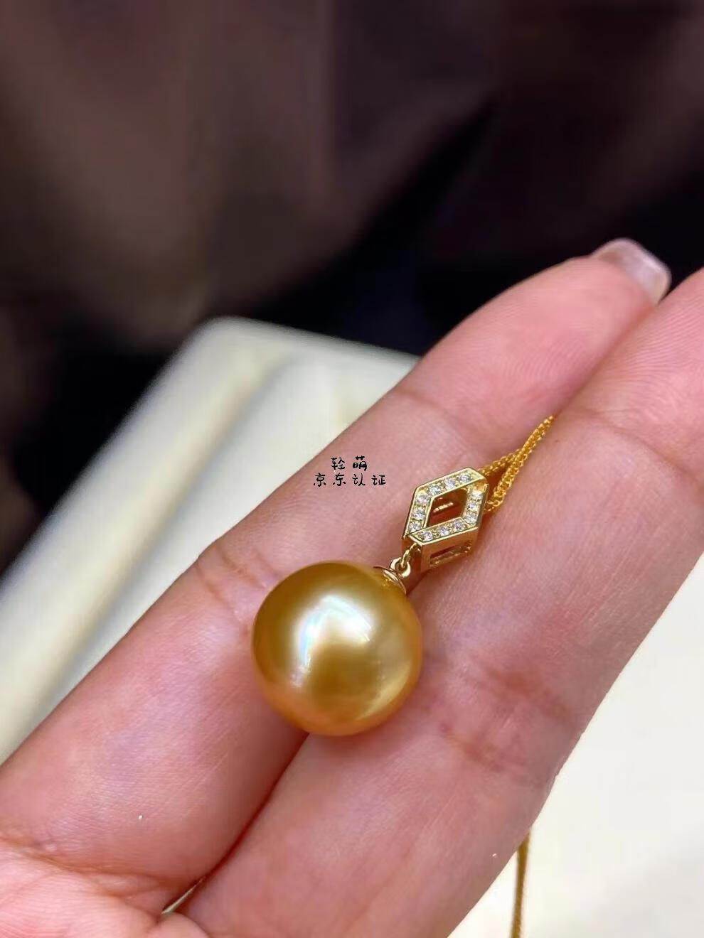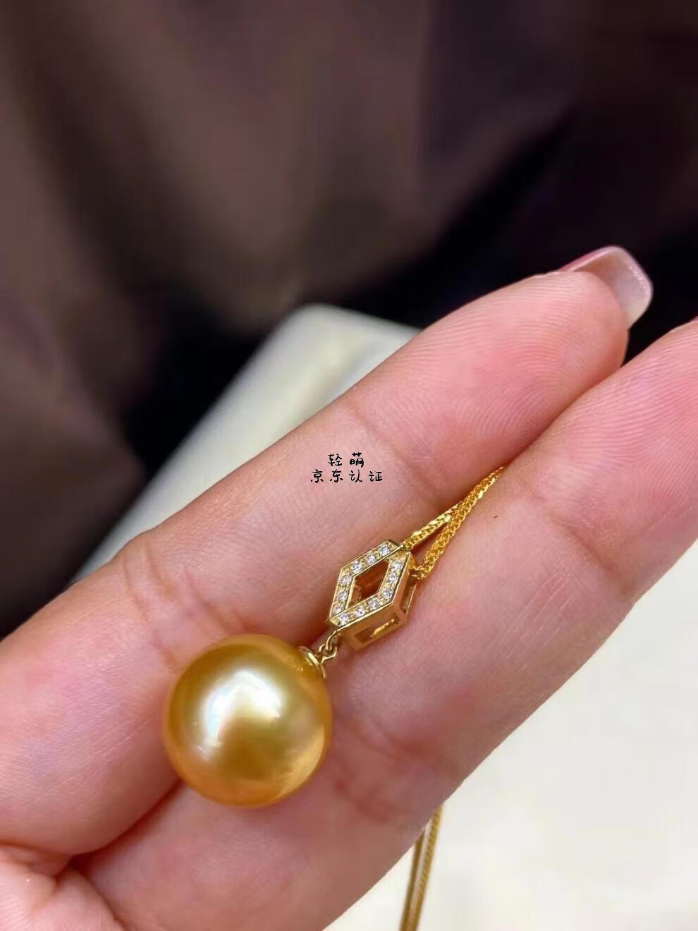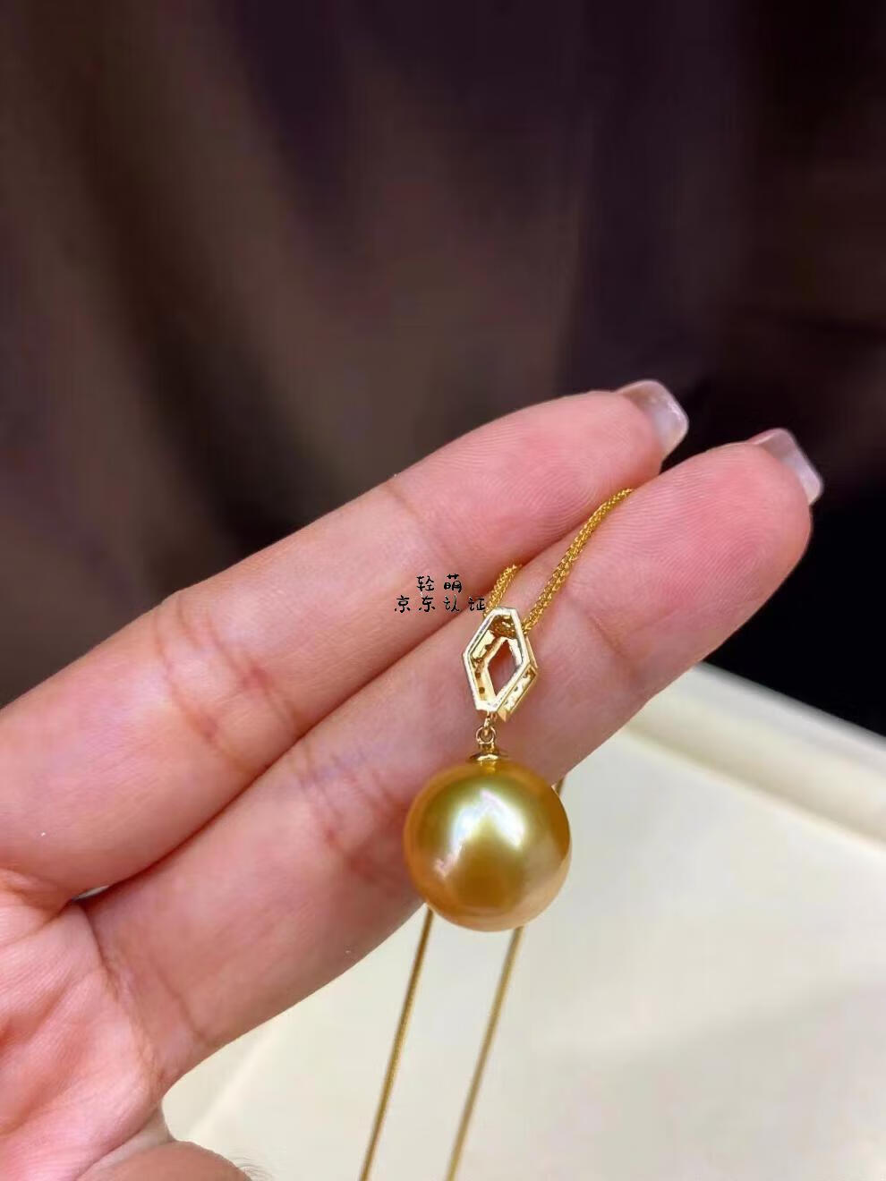 Everlasting Leaf South Sea Gold Bead Pendant Inlaid with Natural Rich Gold, Noble and Elegant, Perfect Round and Flawless Aurora, Single Pendant 10-11mm
