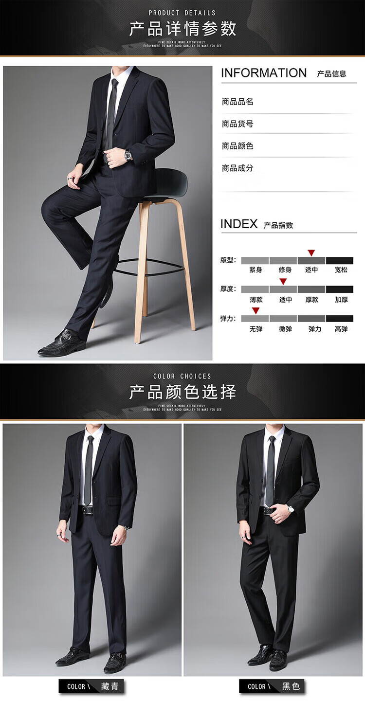 GOLDLION G+ Jinlilai suit men's four seasons new anti-wrinkle slim professional formal suit business dress men's outer black M 170 recommended 125Jin Jin equal to less than 0.5 kg