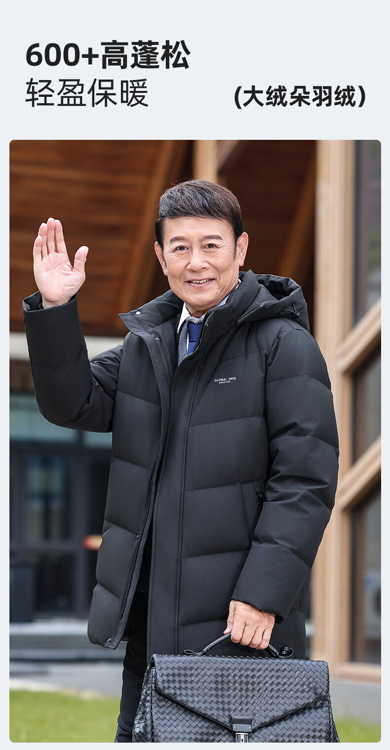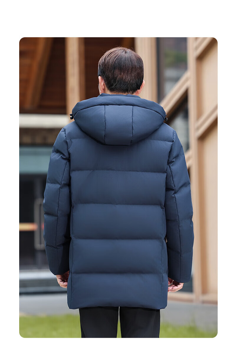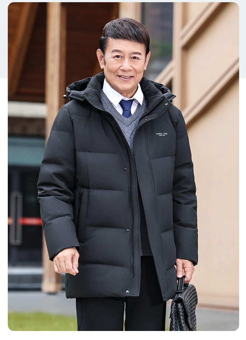 Ducky middle-aged and elderly down jacket men's mid-length 2025 winter new business casual thickened hooded warm jacket KL black XL 180/96A