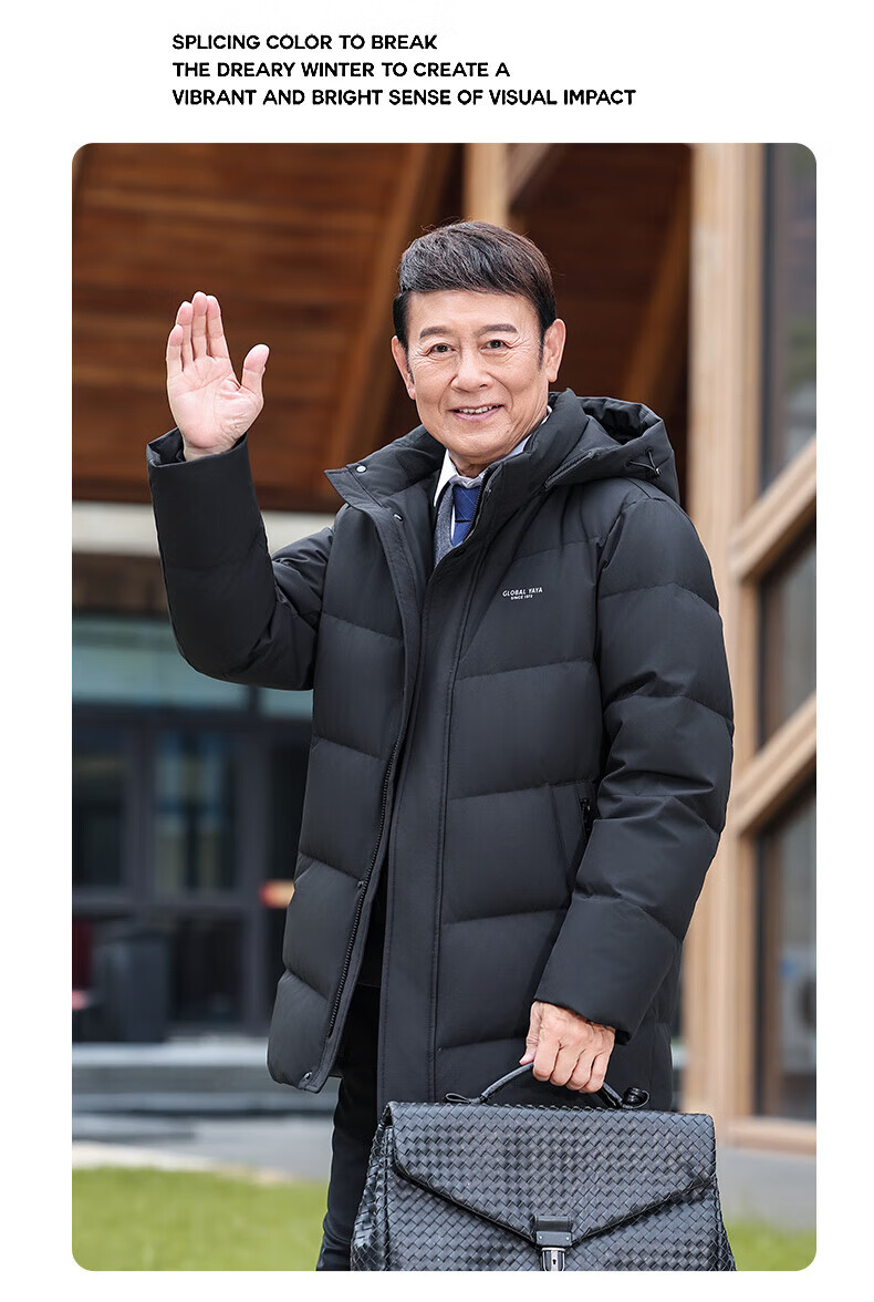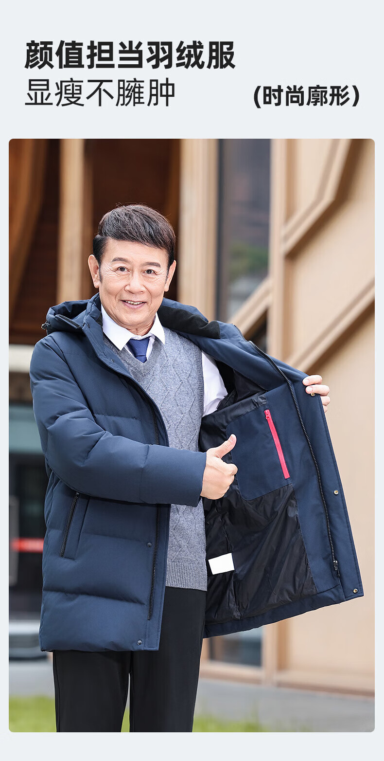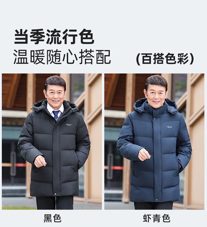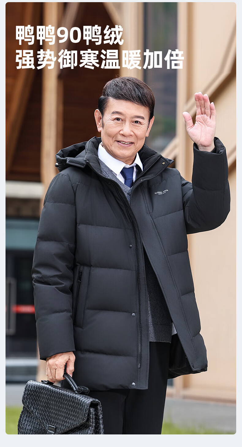 Ducky middle-aged and elderly down jacket men's mid-length 2025 winter new business casual thickened hooded warm jacket KL black XL 180/96A
