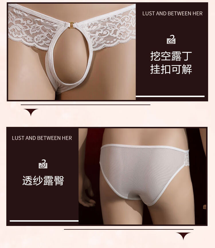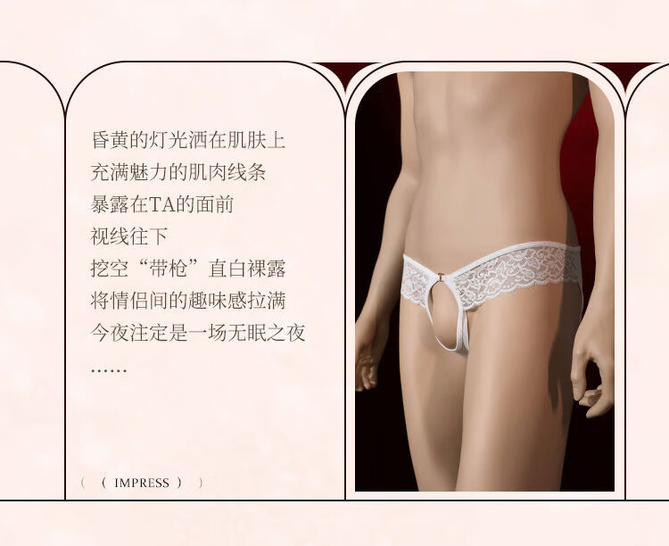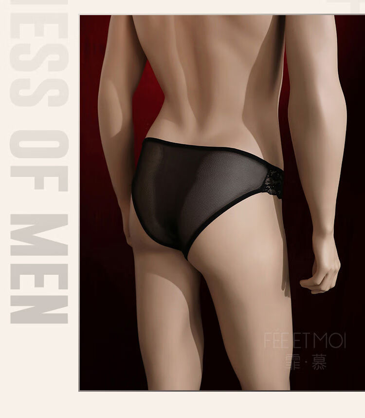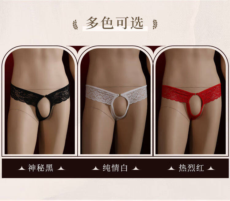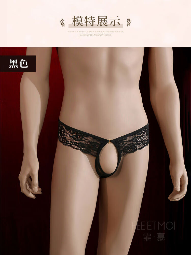 Men's crotchless lace underwear, sexy pure lust, hot special briefs shorts, thong underwear for men, black, one size fits all