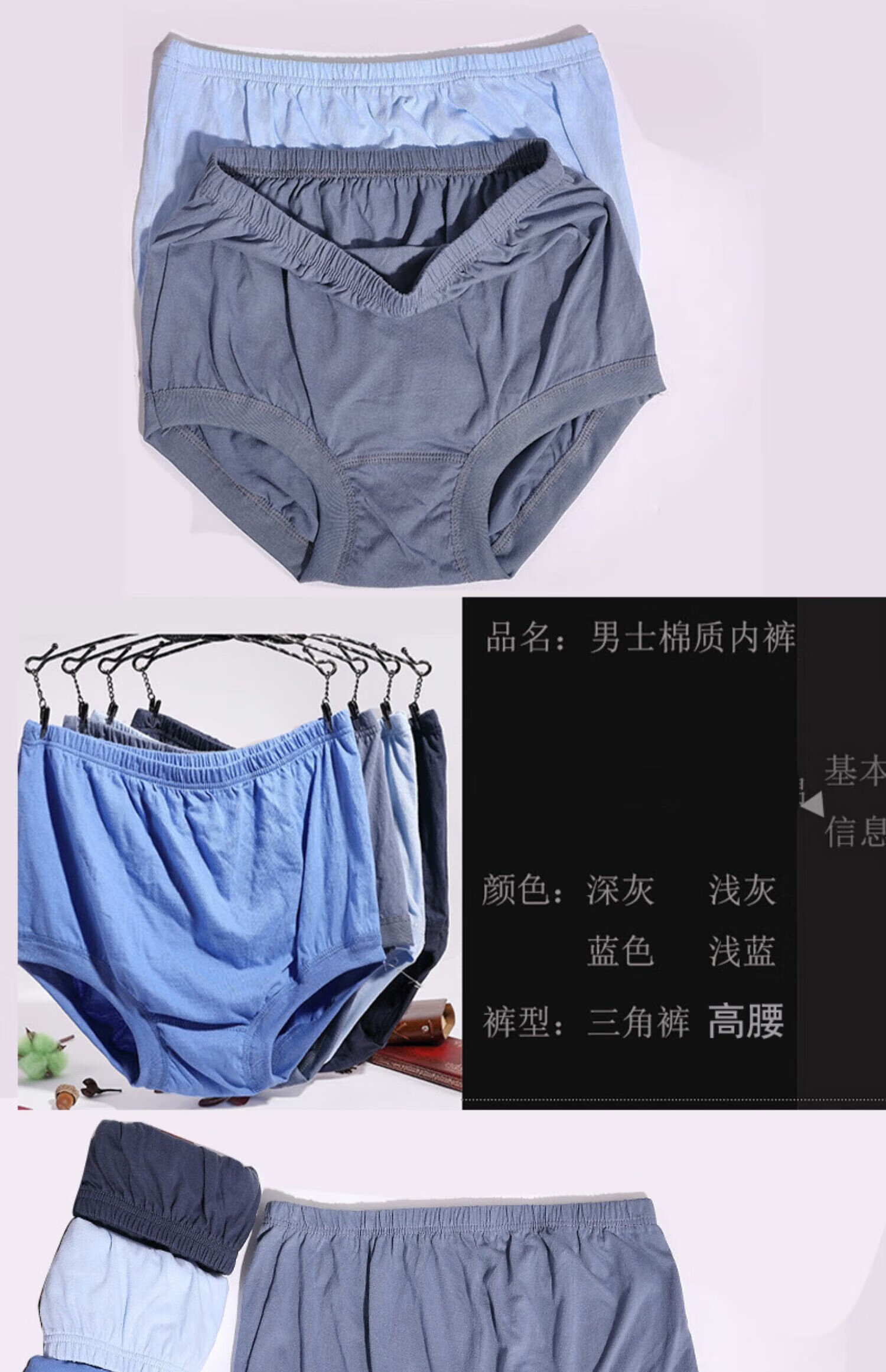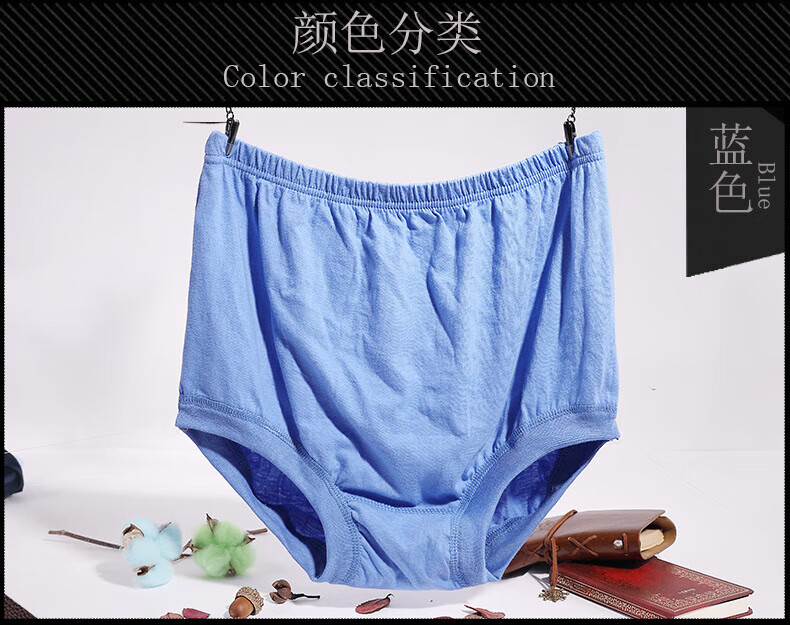 Yalu old-fashioned high-waisted shorts, pure cotton briefs, men's middle-aged and elderly men's loose cotton large size dad and grandpa, dark blue 2 pairs (royal blue) 130/5XL (180-220)