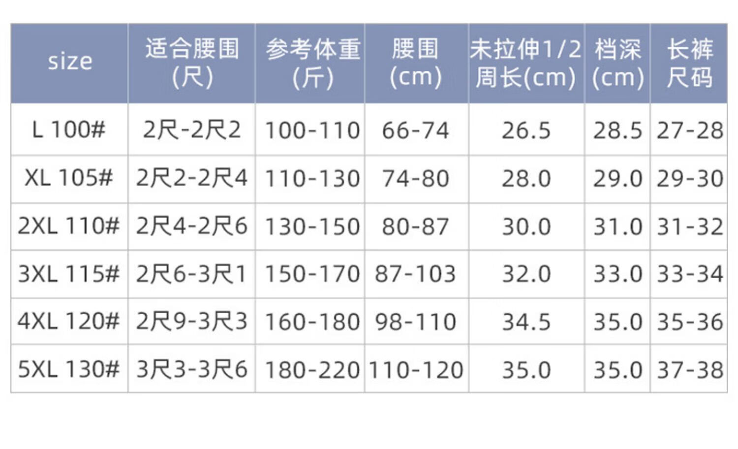 USA(inch) 28-30 30-32 32-34 34-38 38-42