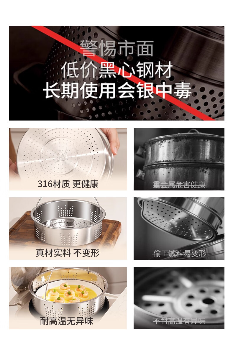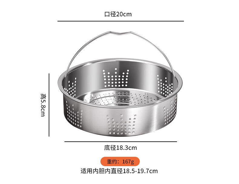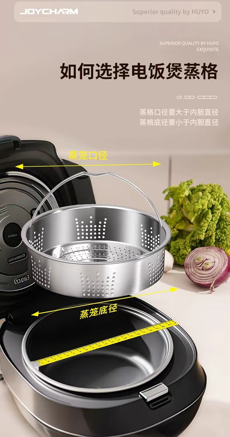 JOYCHARM316 stainless steel steamer rice steamer artifact rice soup separation household electric rice cooker steaming rack steaming plate universal water-proof steaming grid 316 maternal and infant grade + steaming mat (suitable for inner pot inner diameter 18.5~19.7cm)
