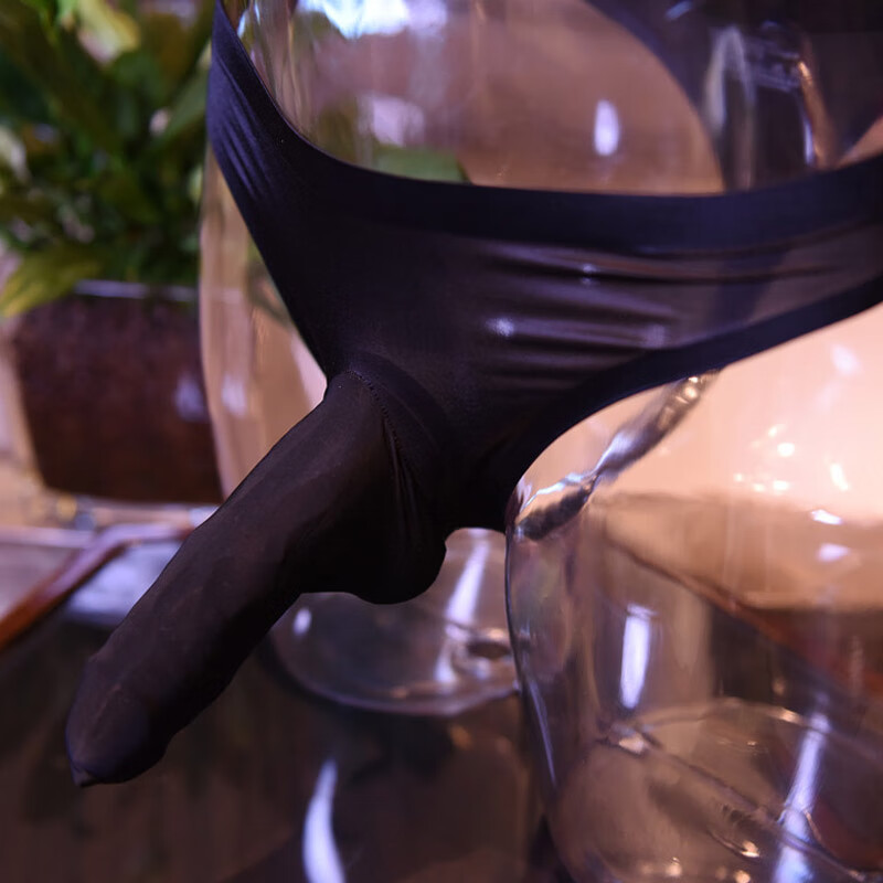 Airplane cup underwear for men to wear to work, sexy masturbation L tube special penis thong, black, ice silk JJ closed (with JJ cover) 80-120Jin Jin is equal to 0.5 kg