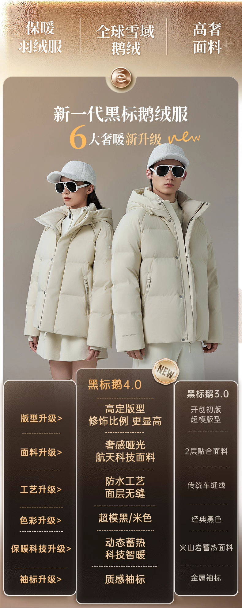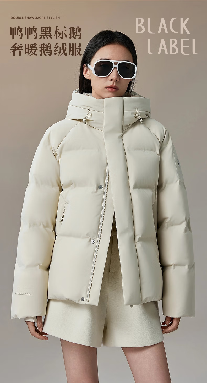 Duck Duck Black Label Goose Series Doudoune en duvet d'oie pour homme et femme courte 2025 hiver nouvelle veste chaude épaisse bouffante bleu clair noir L 175/92A
