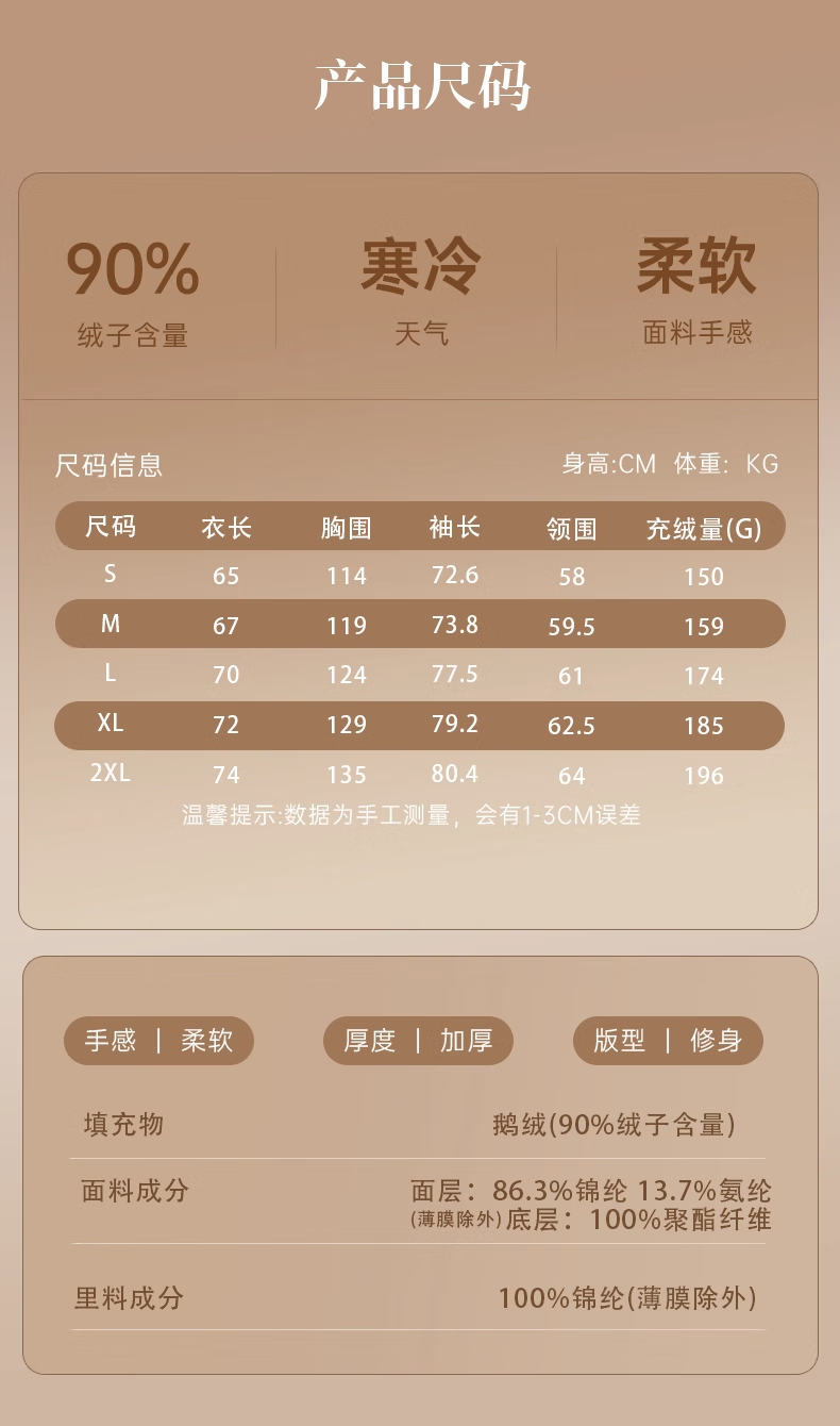 China (cm) 165 / 88-90 170 / 96-98 175 / 108-110 180 / 118-122 185 / 126-130