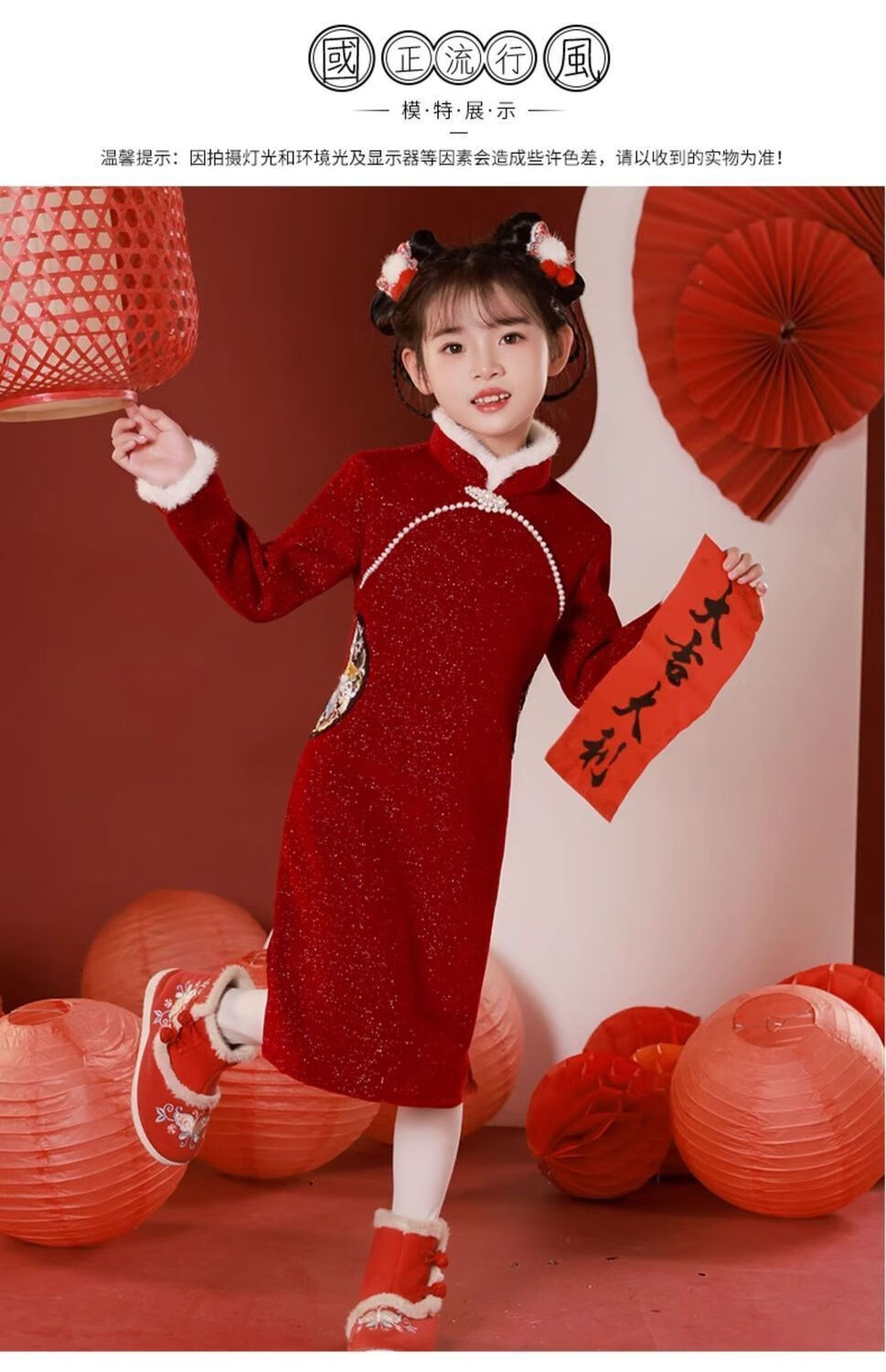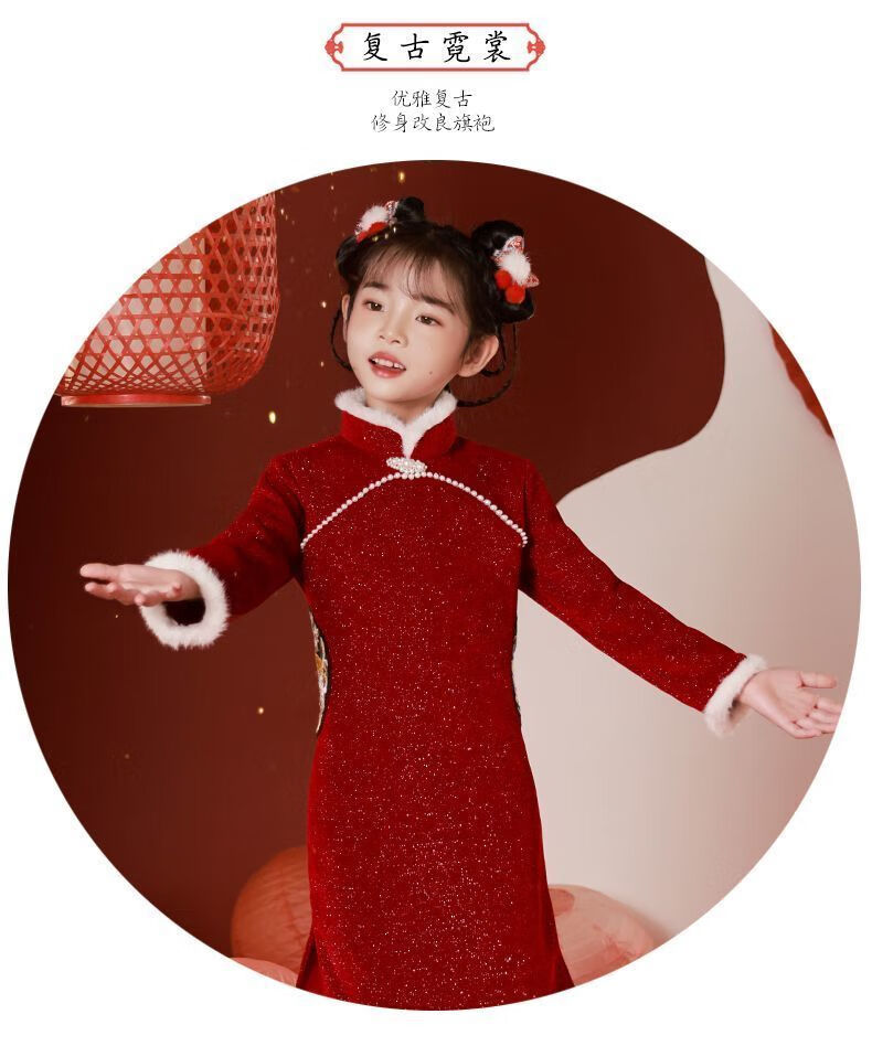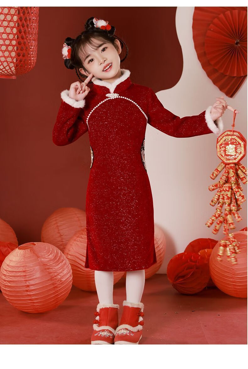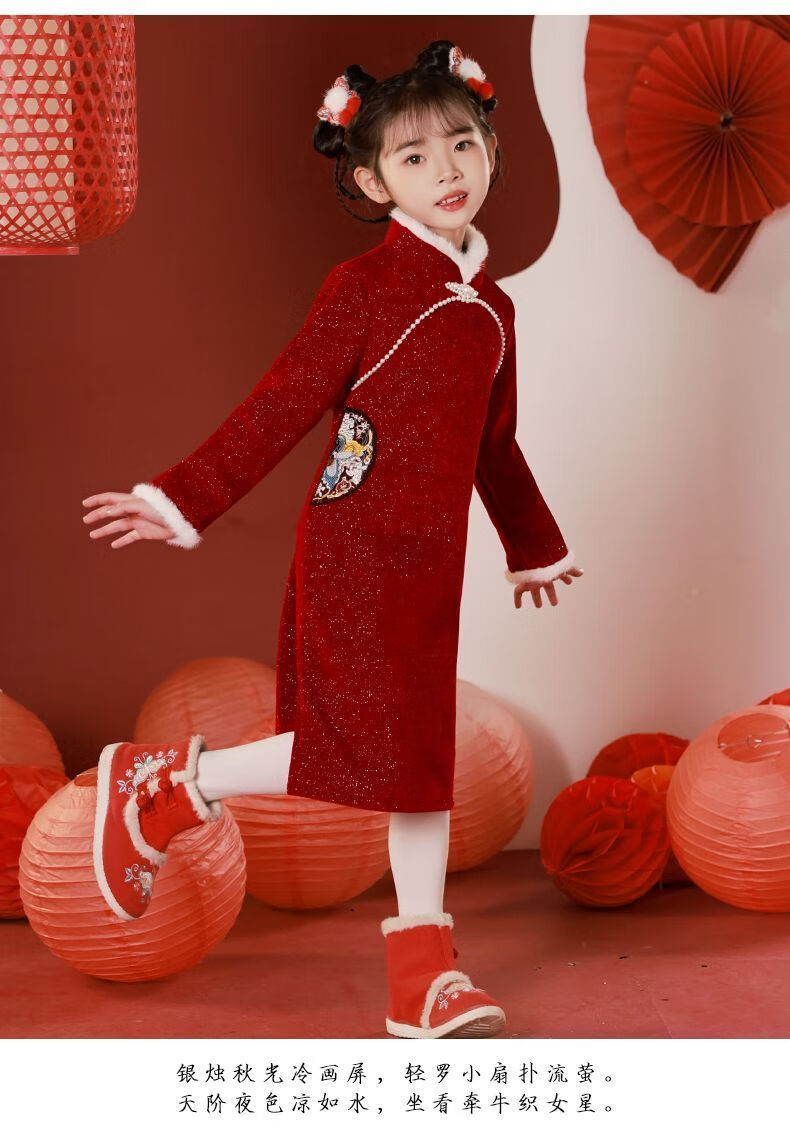 G.duck children's winter cheongsam for New Year's greetings thickened Chinese style plus velvet Chinese style red New Year's dress dress for girls red cheongsam with velvet lining inside 120
