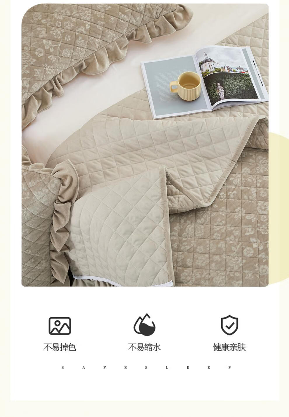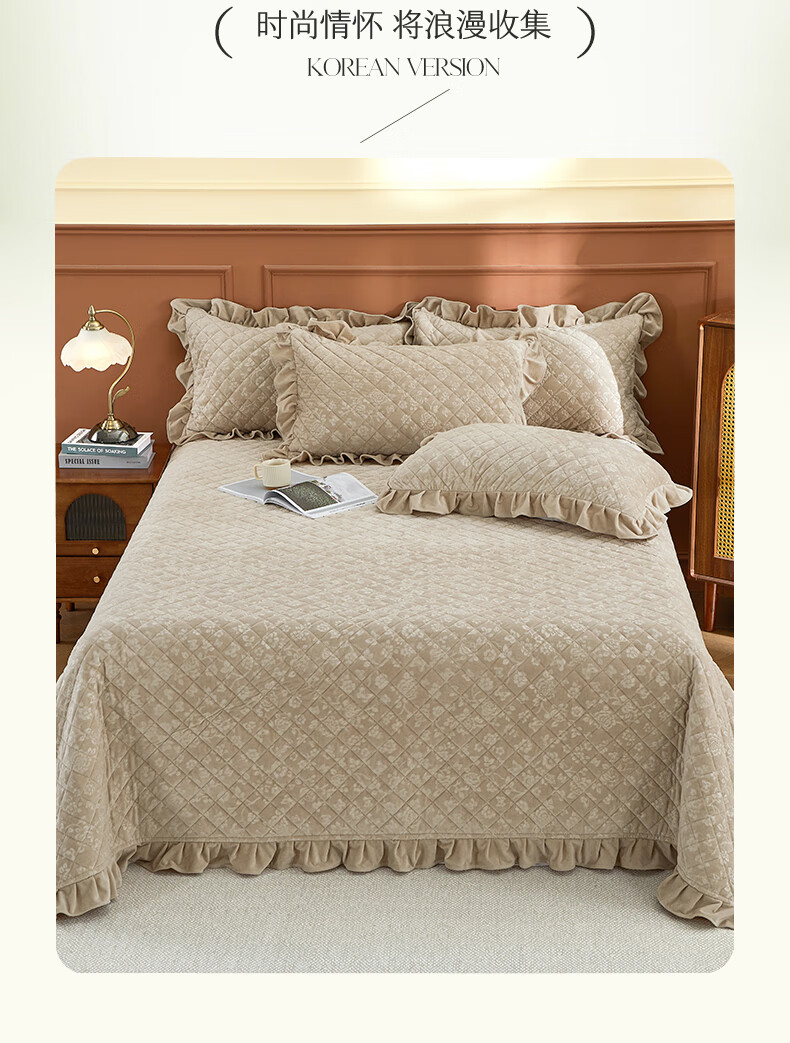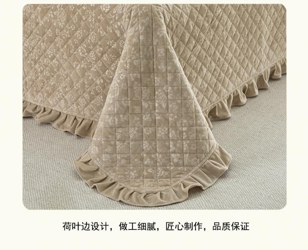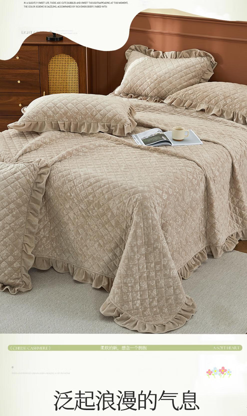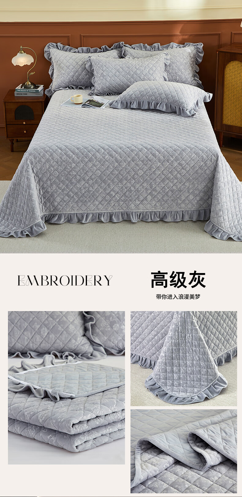 Fu丨Anna lace embossed baby velvet jacquard quilted bed cover three-piece set 2025 new bed sheets gray single bed cover 200cm*230cm