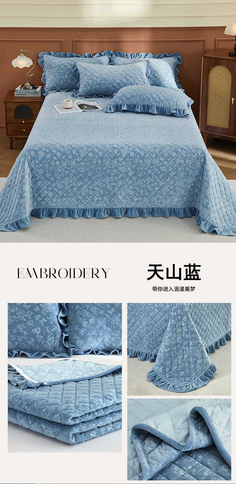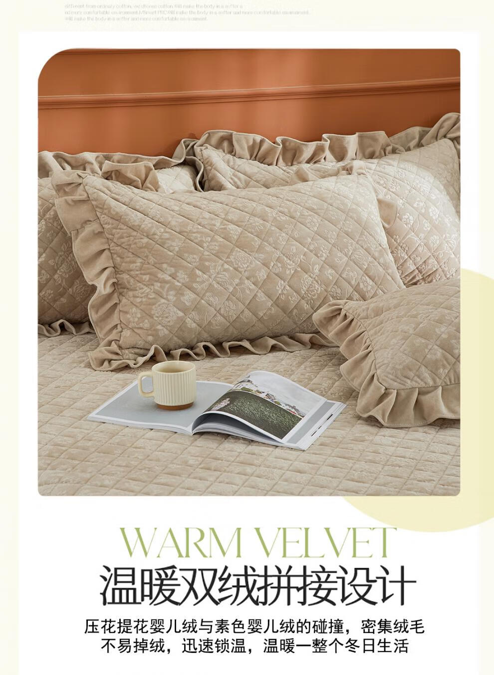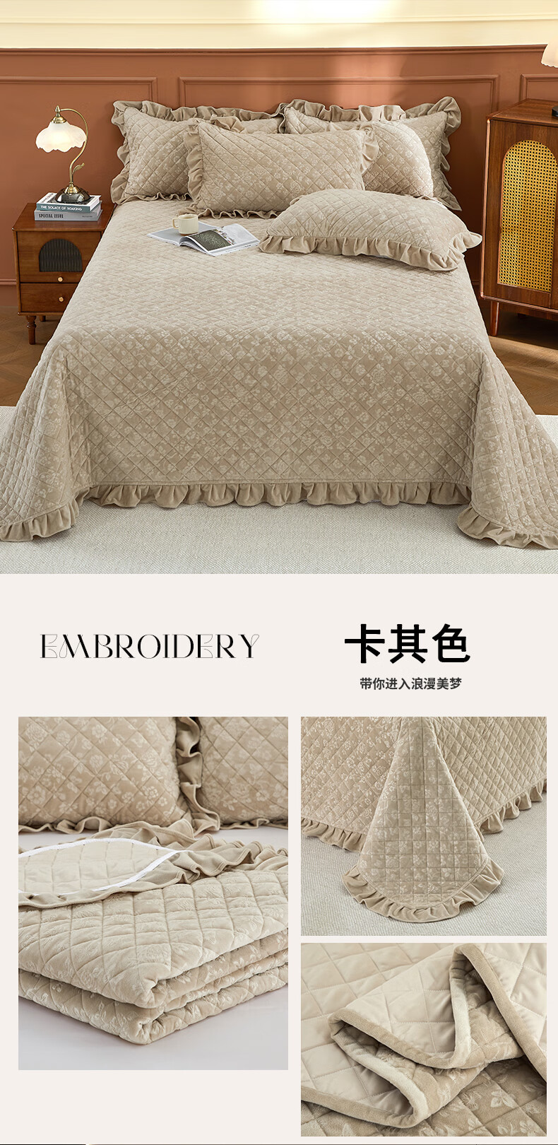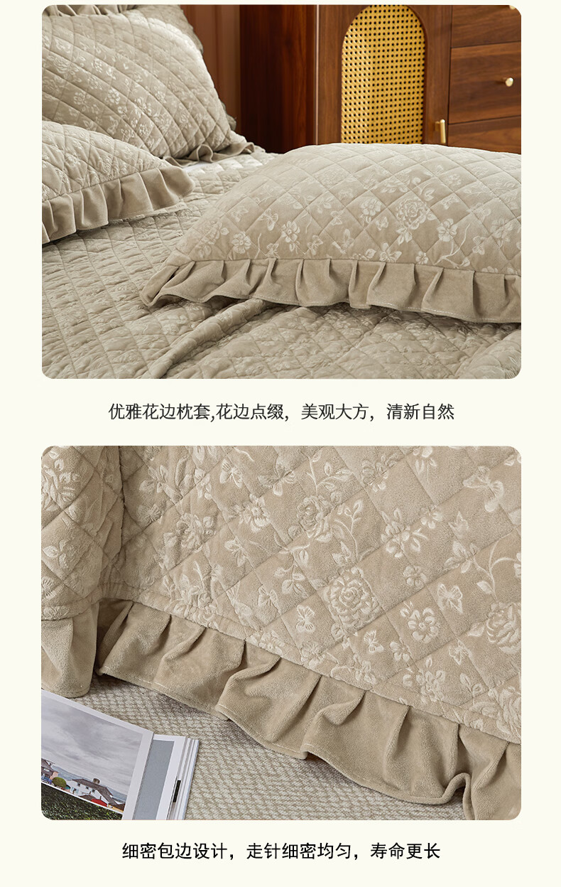 Fu丨Anna lace embossed baby velvet jacquard quilted bed cover three-piece set 2025 new bed sheets gray single bed cover 200cm*230cm