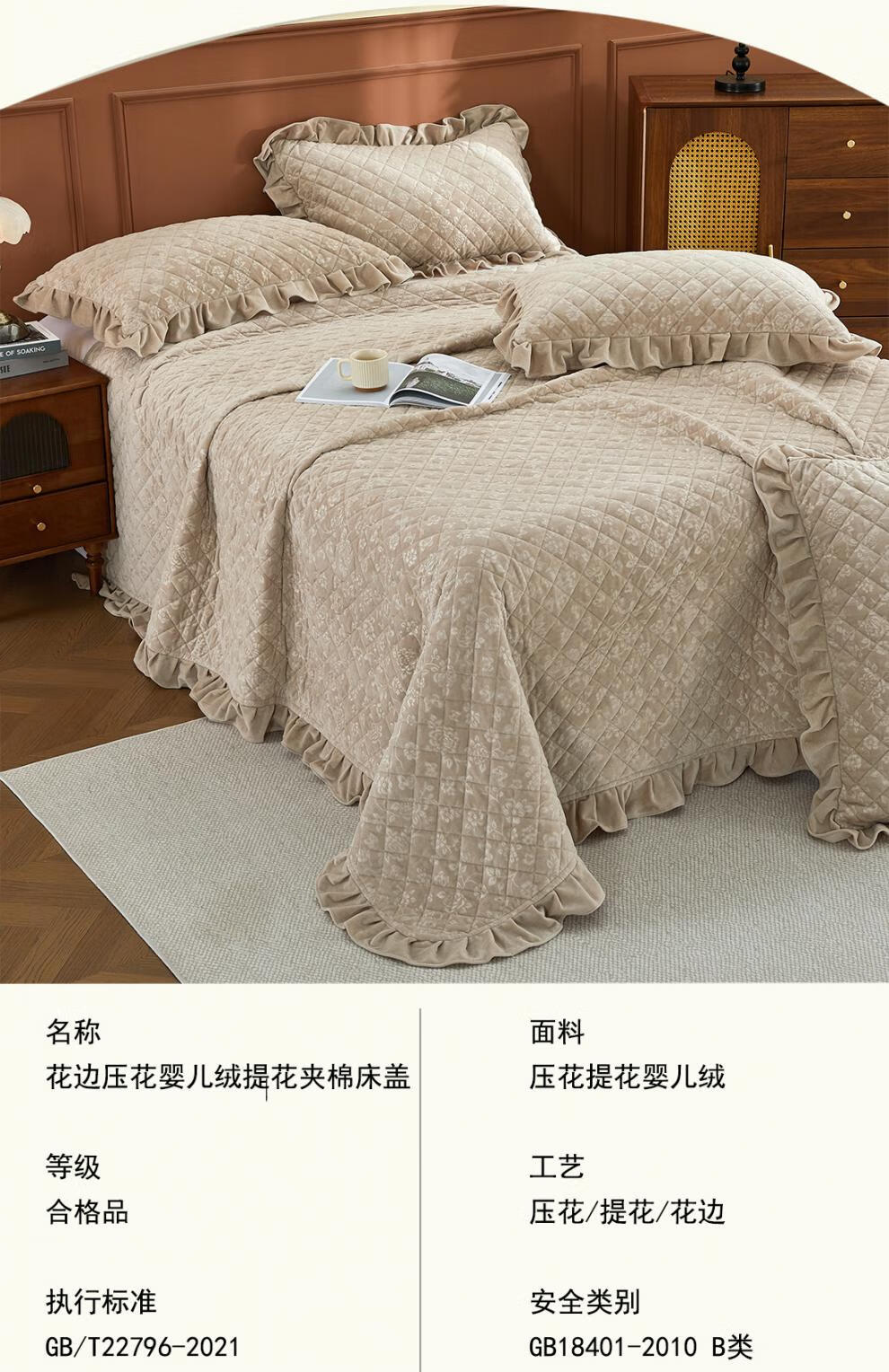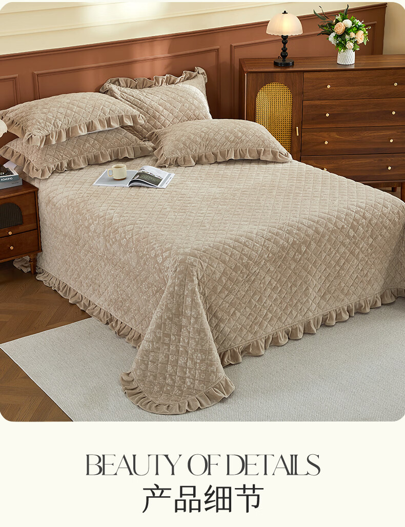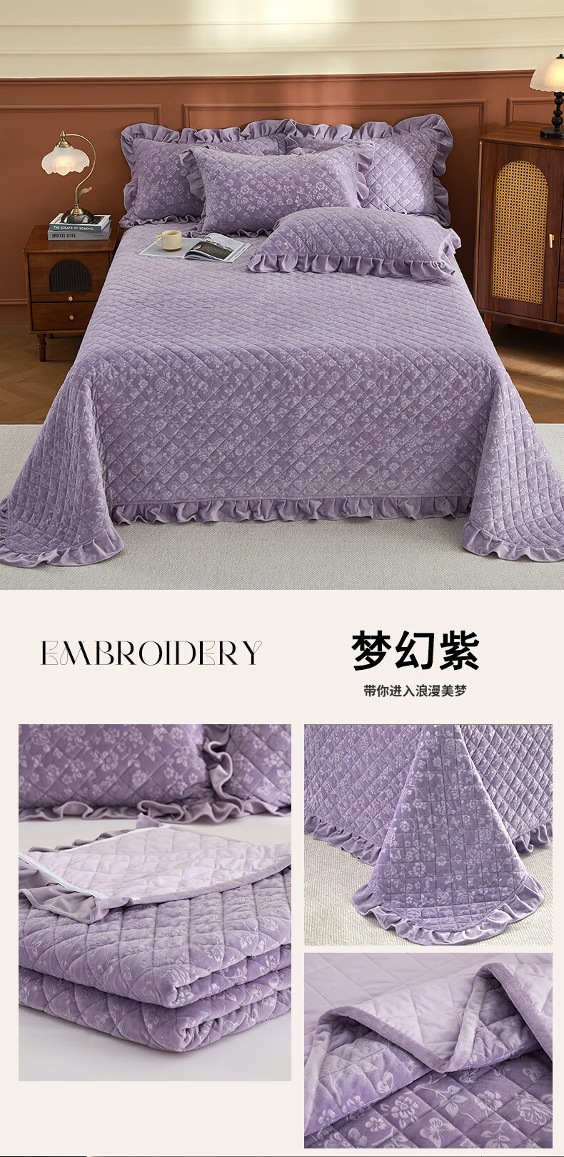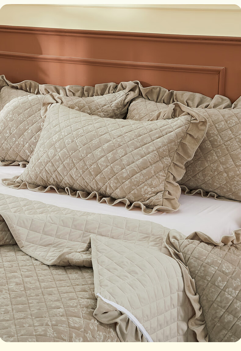 Fu丨Anna lace embossed baby velvet jacquard quilted bed cover three-piece set 2025 new bed sheets gray single bed cover 200cm*230cm