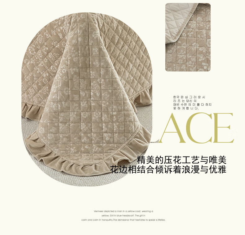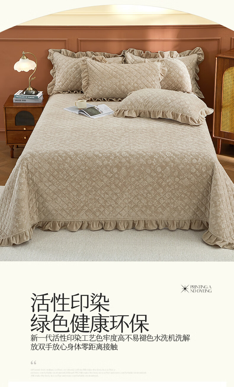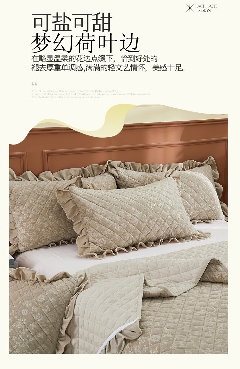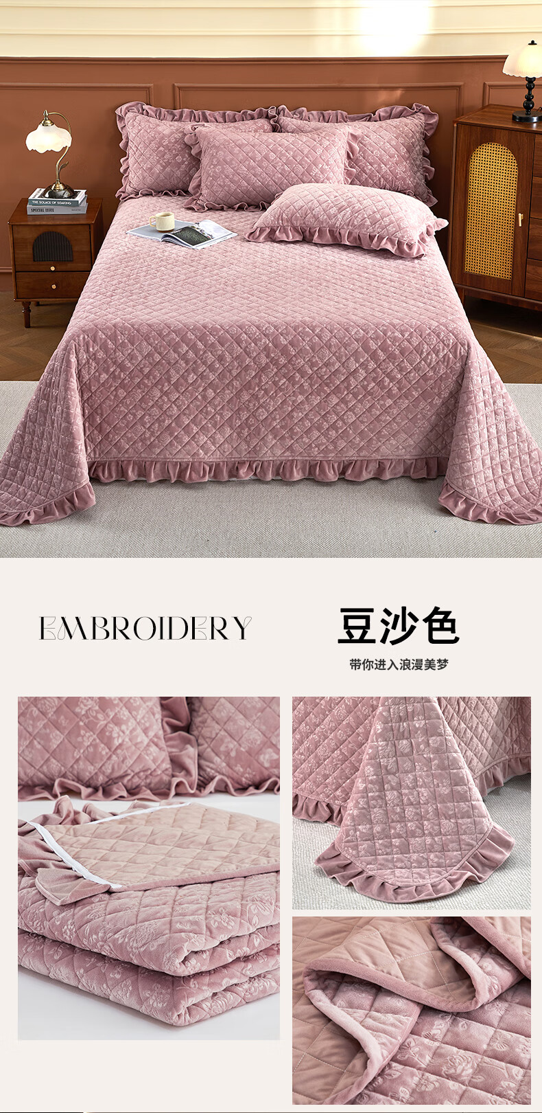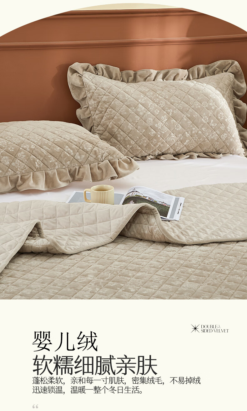 Fu丨Anna lace embossed baby velvet jacquard quilted bed cover three-piece set 2025 new bed sheets gray single bed cover 200cm*230cm