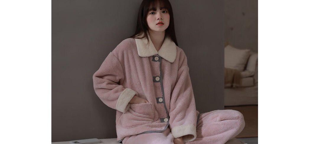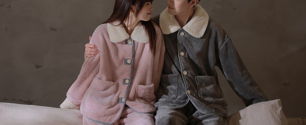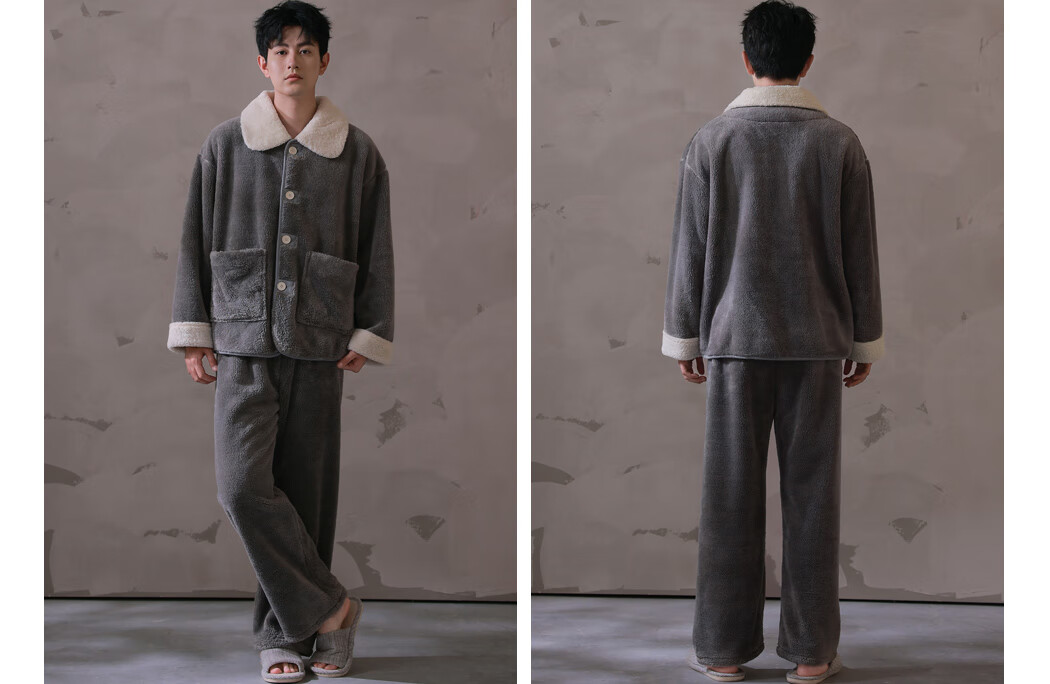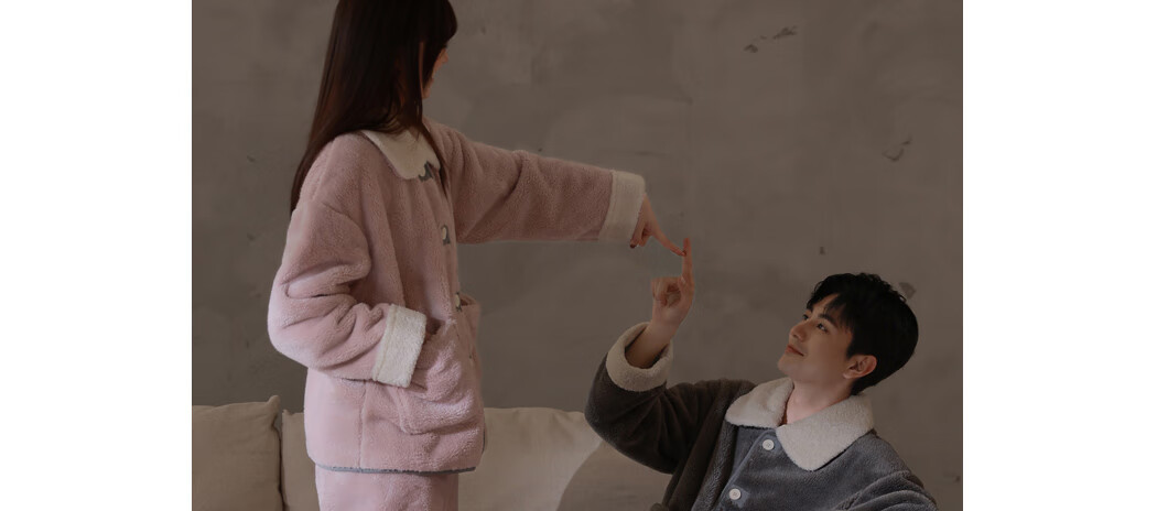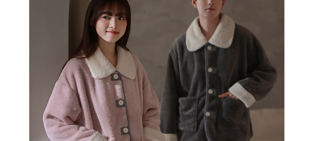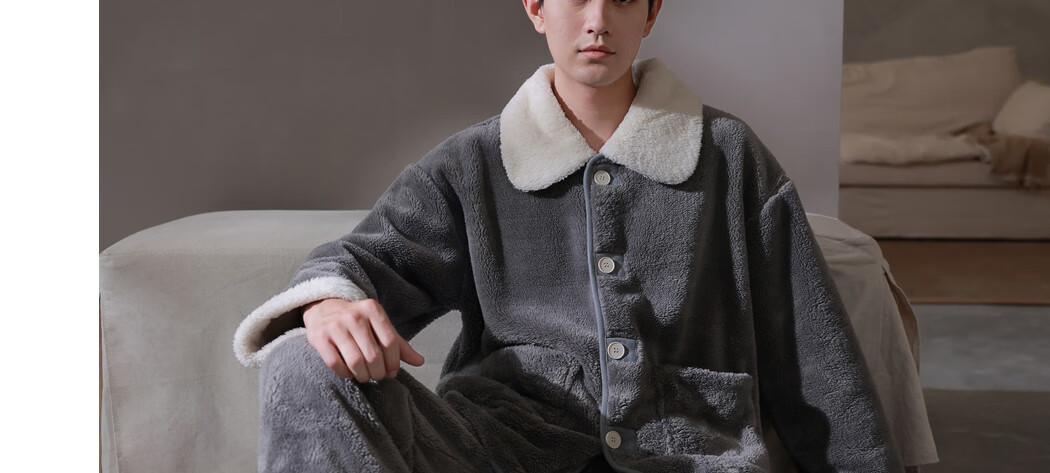 Mrs. Slee Sleep TIGHT couple's winter pajamas, women's coral velvet thickened double-sided velvet, warm and can be worn outside, winter one man and one woman suit QHR96135-men's 2XL
