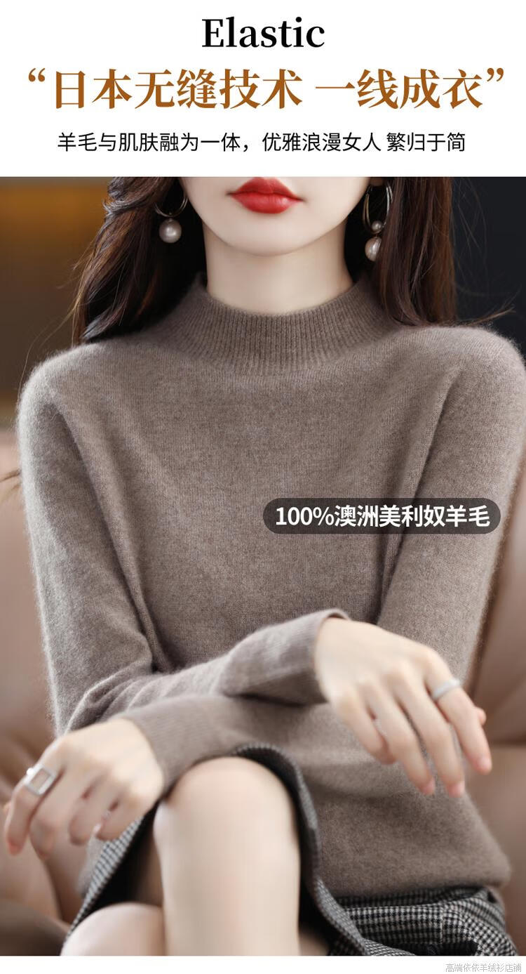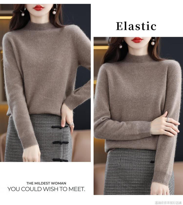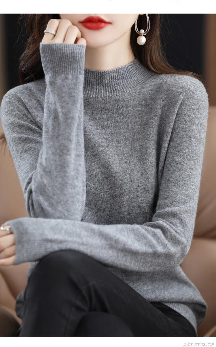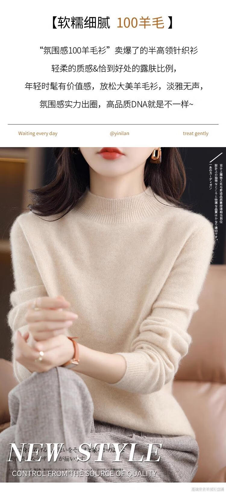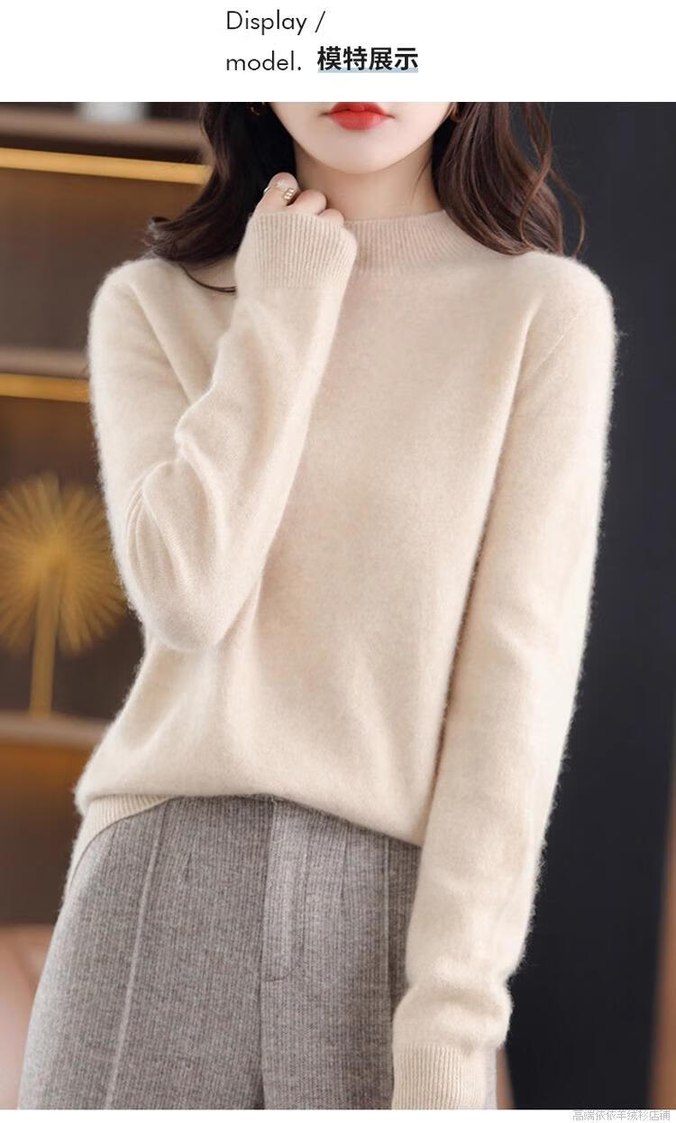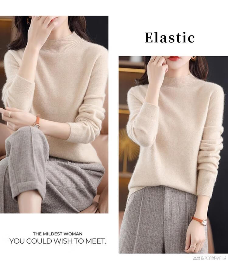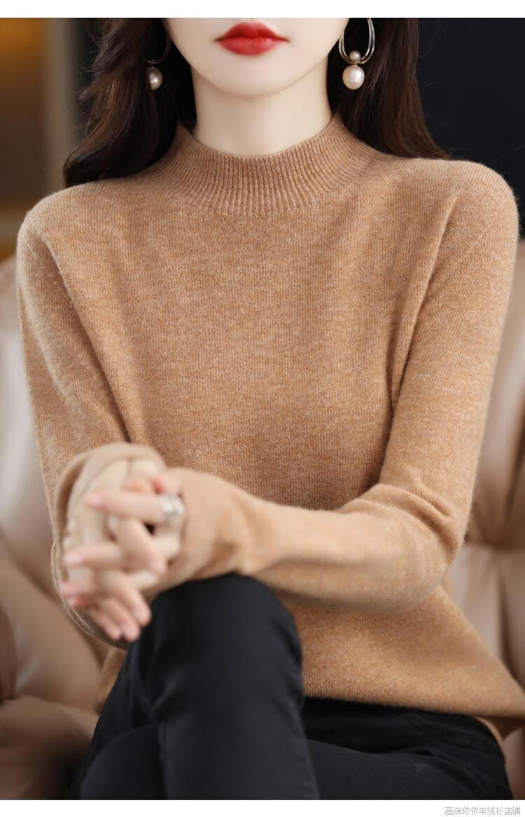 Pierre Cardin 2025 new winter cardigan women's thickened half turtleneck loose inner sweater 100 cashmere bottoming sweater for women apricot M recommended 90-110Jin Jin equals 0.5 kg