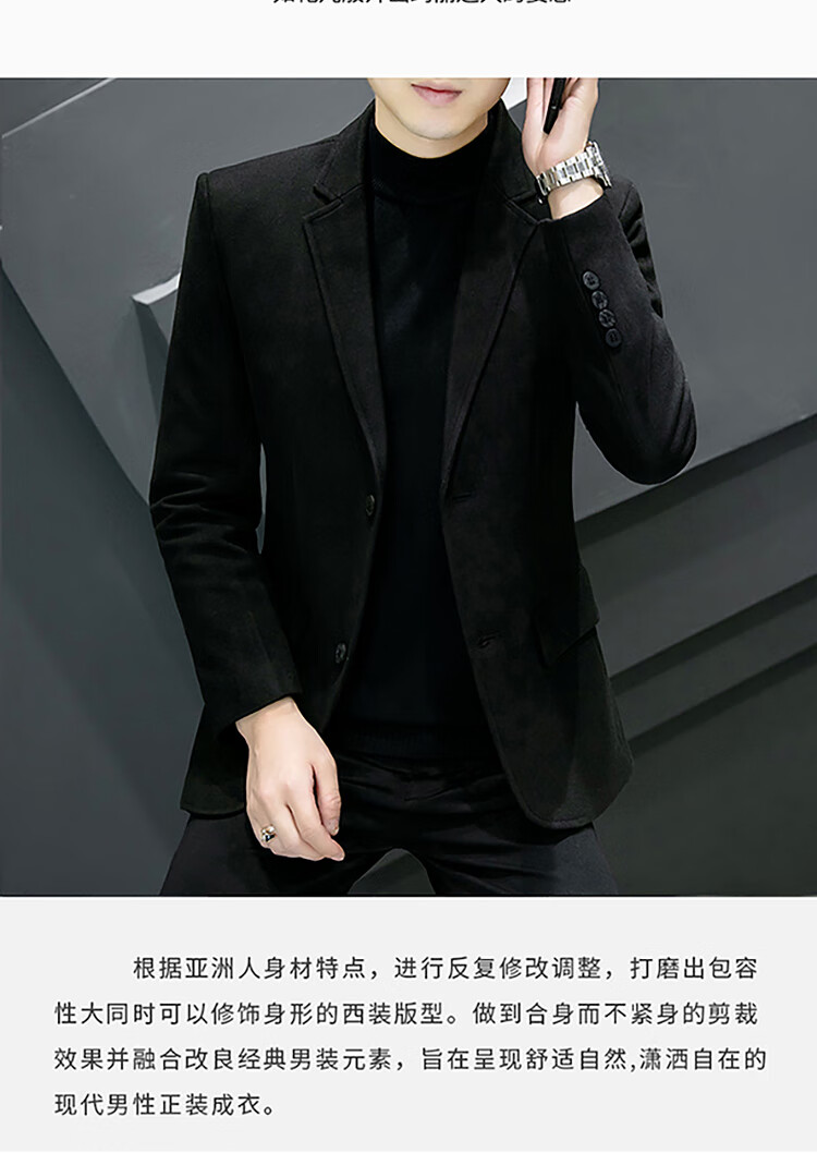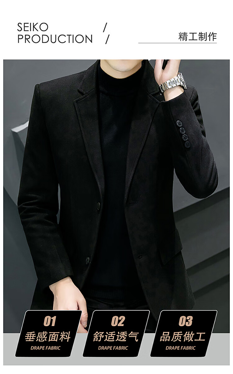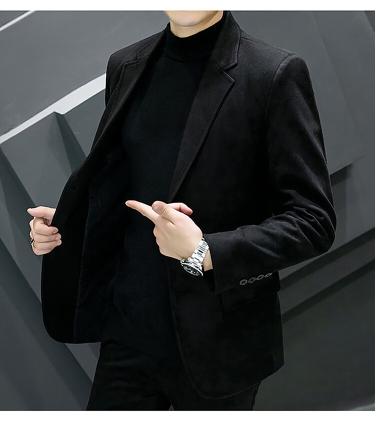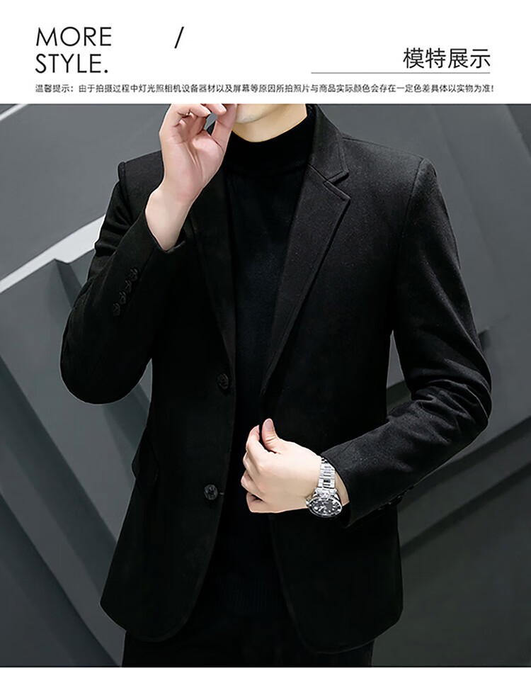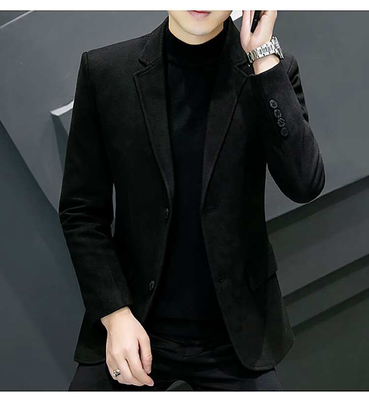 ARMANI EXCHANGE Armani men's thickened woolen suit Korean style slim autumn and winter coat gam-617 woolen suit jacket black M (170)