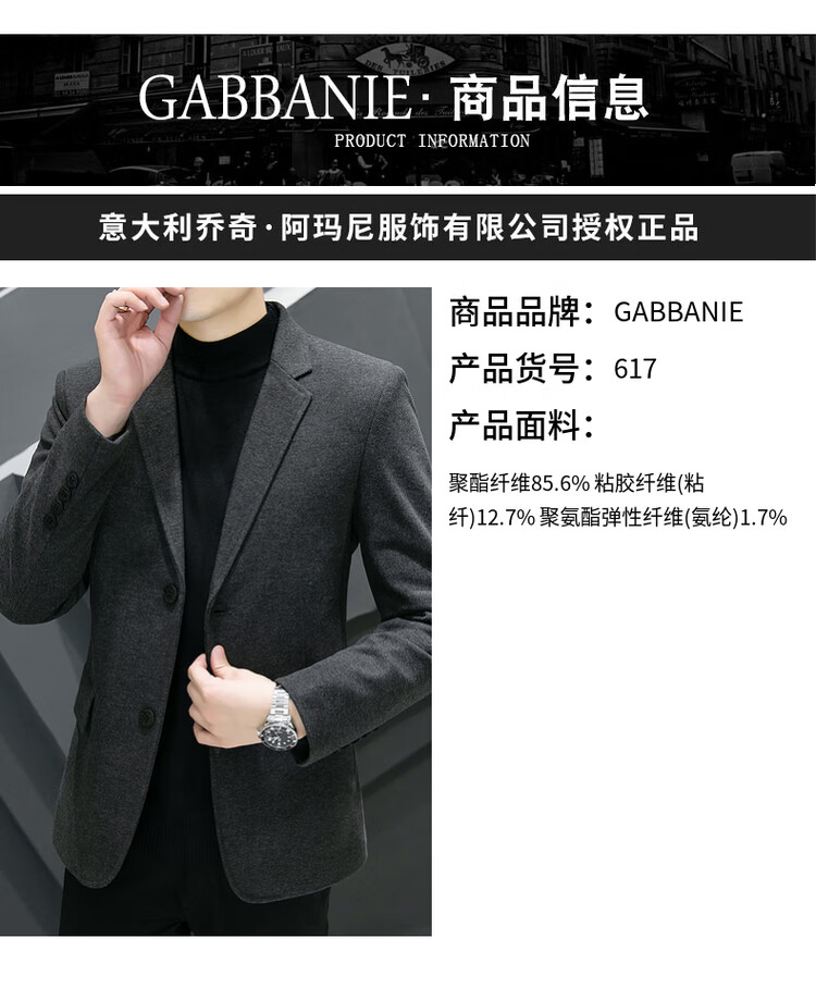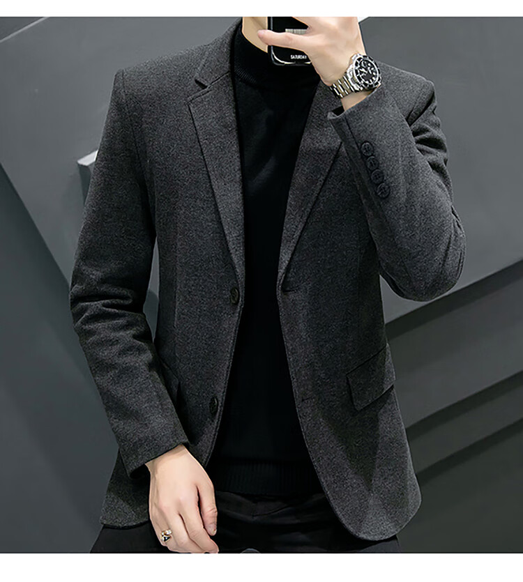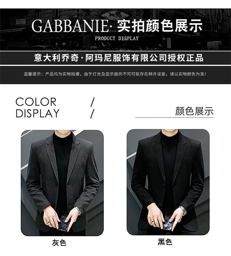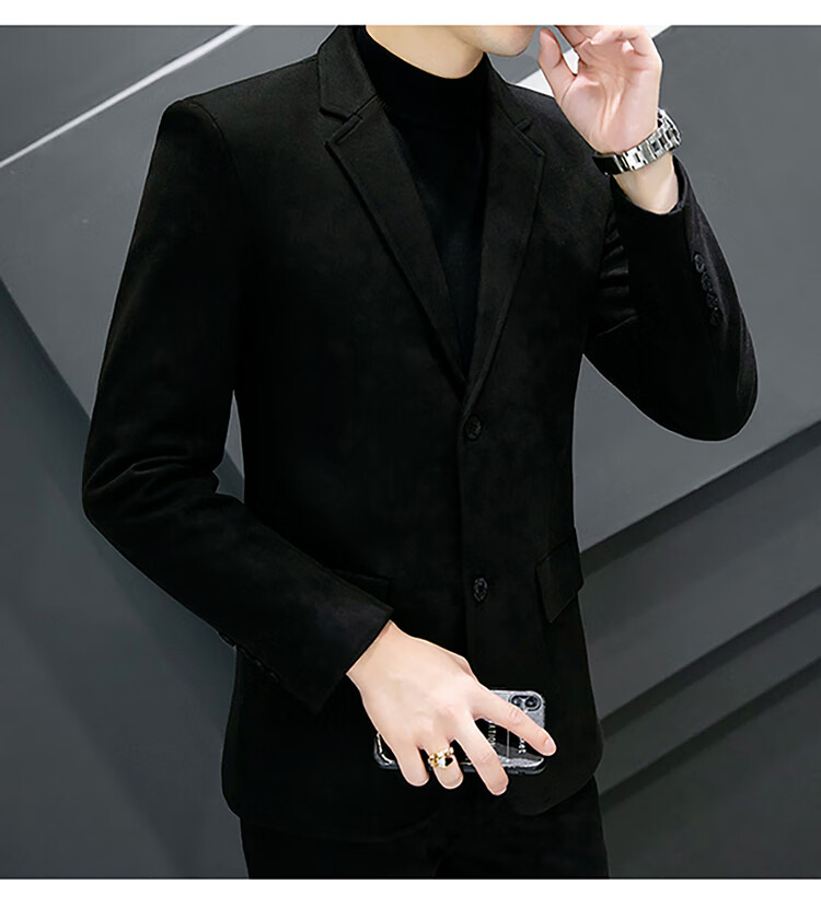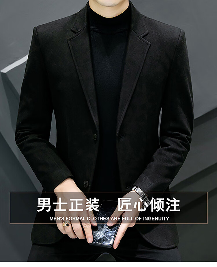 ARMANI EXCHANGE Armani men's thickened woolen suit Korean style slim autumn and winter coat gam-617 woolen suit jacket black M (170)