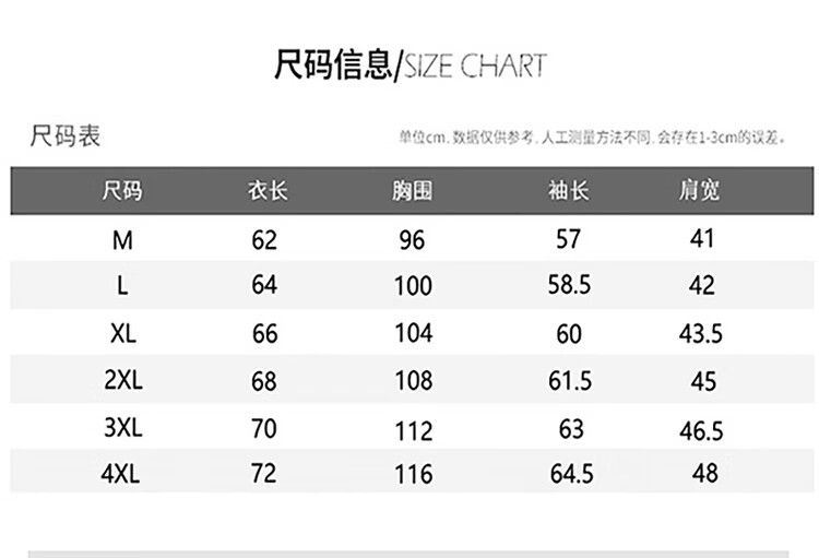 China (cm) 165 / 88-90 170 / 96-98 175 / 108-110 180 / 118-122 185 / 126-130