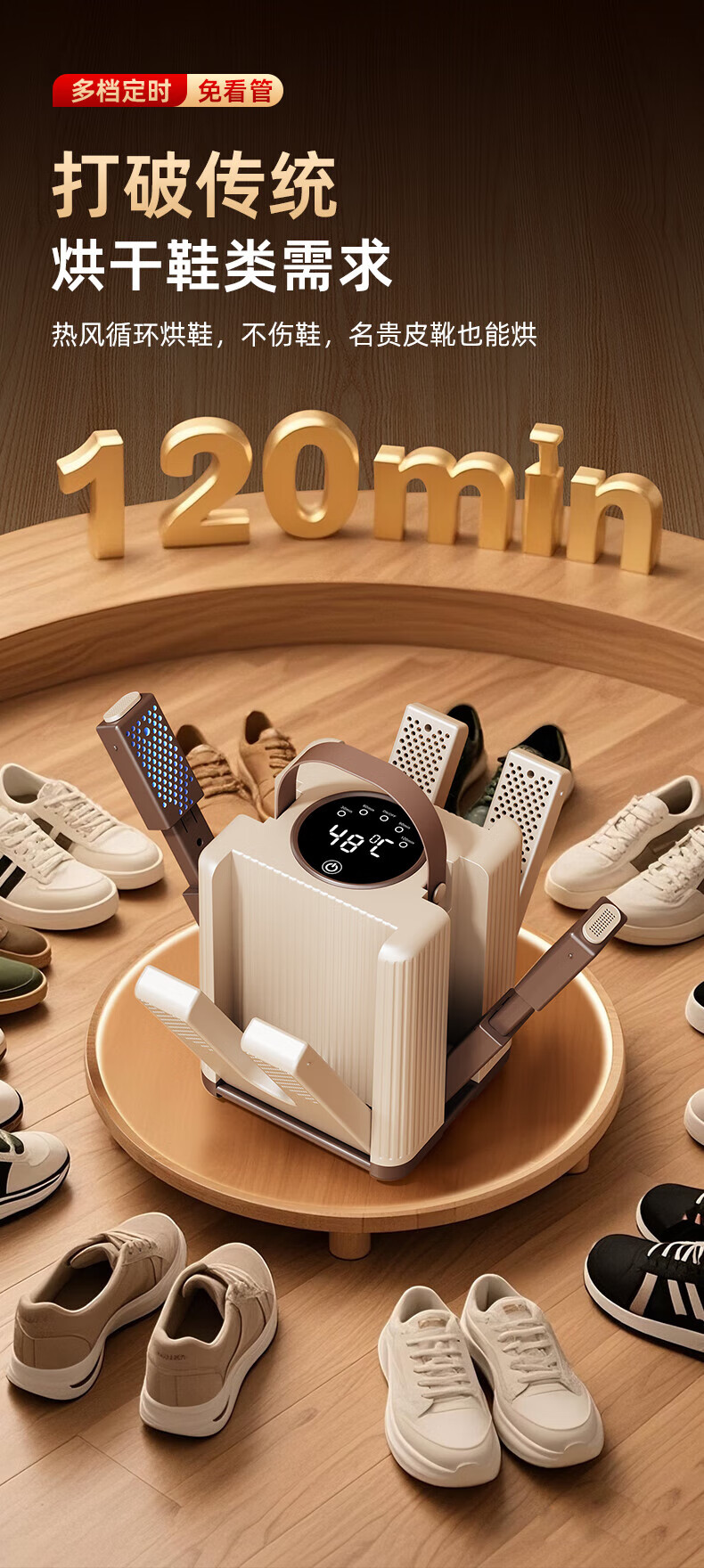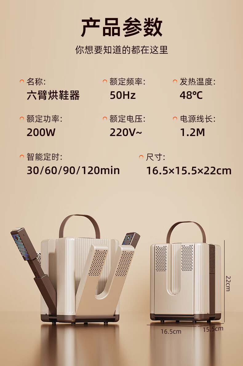 New model of shoe dryer for home use, 6-arm dry and wet dual-purpose baking, deodorization, fully automatic sterilization, quick-drying, intelligent constant temperature, touch screen model, wall-mounted shoe dryer, foldable