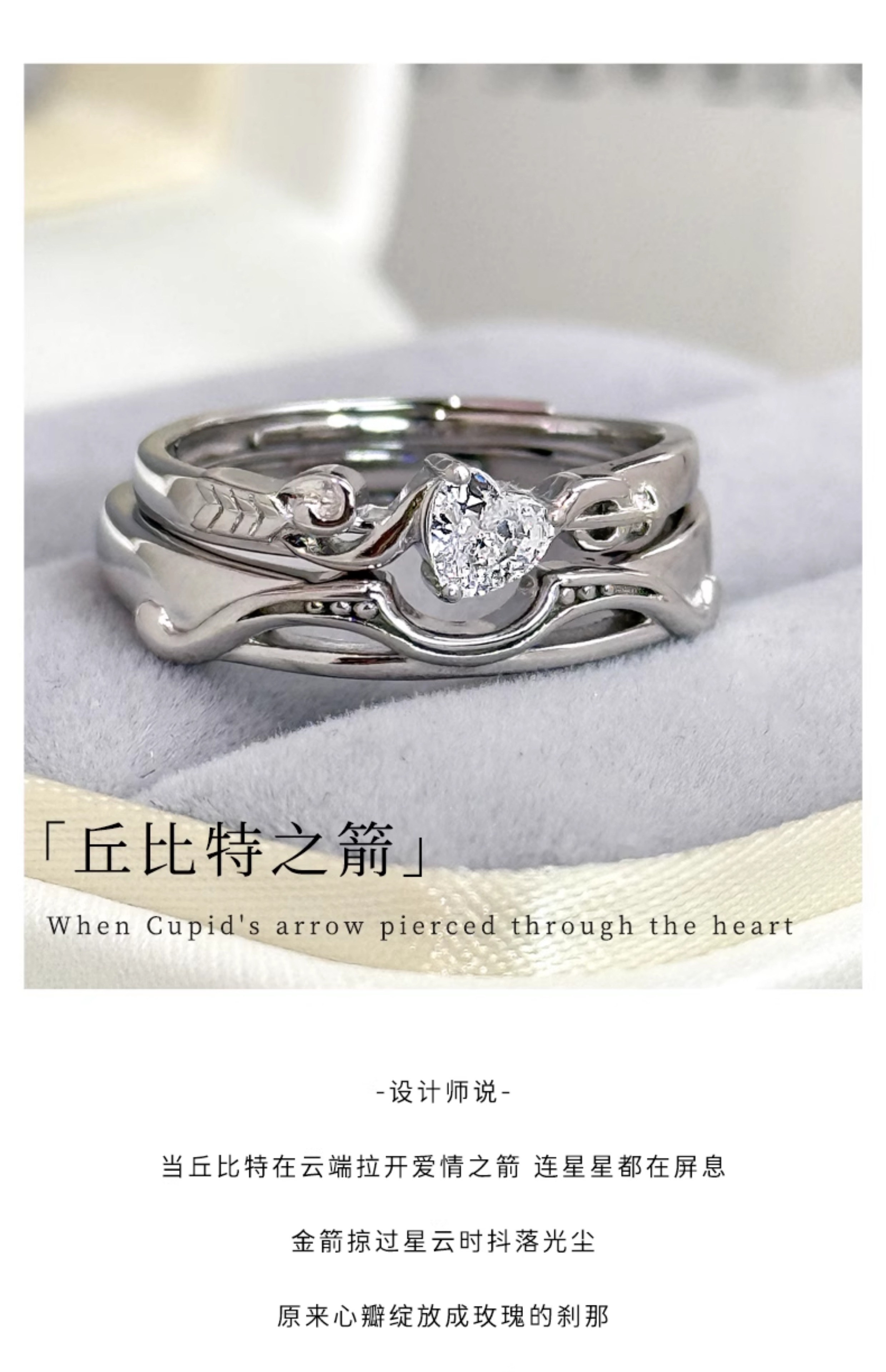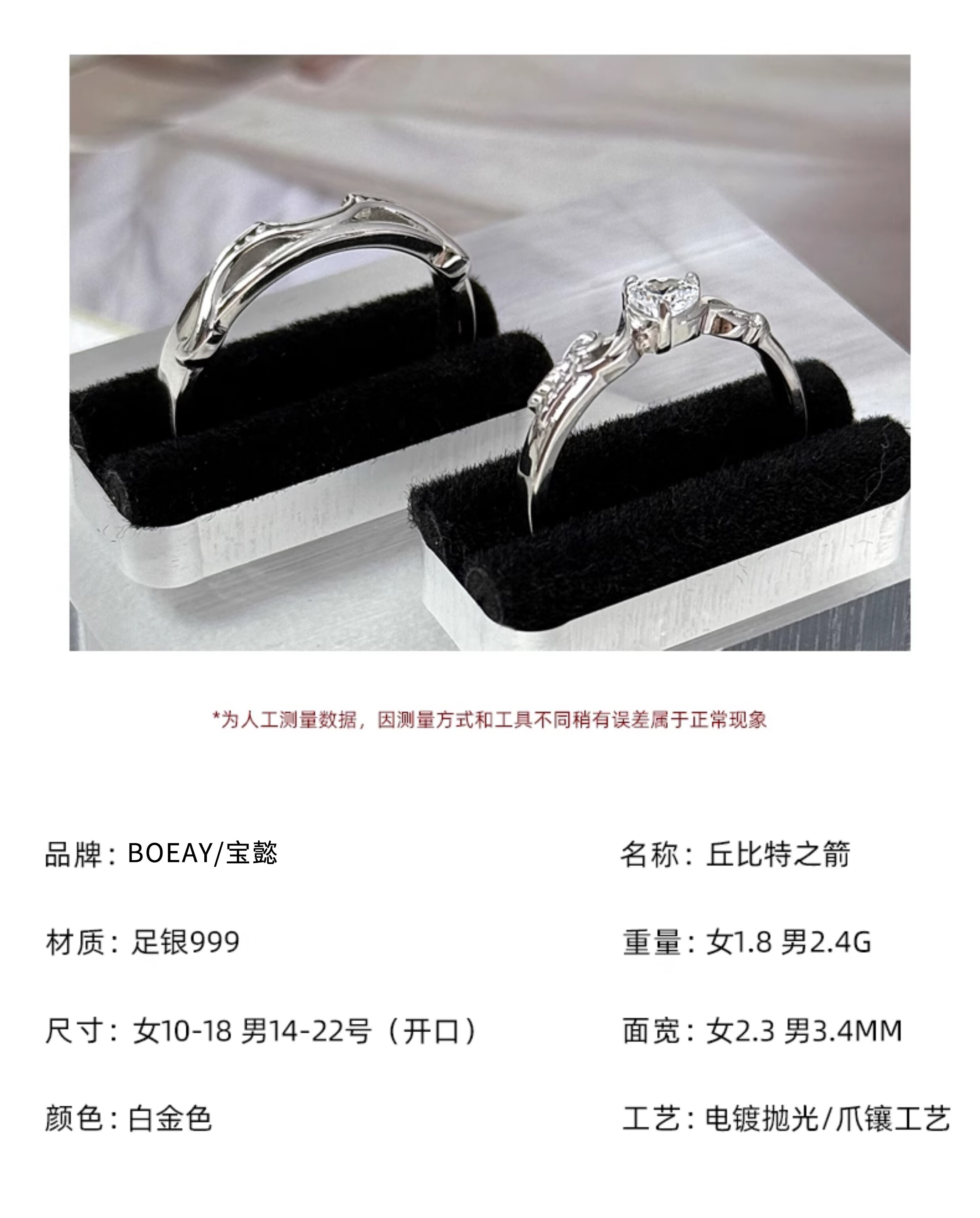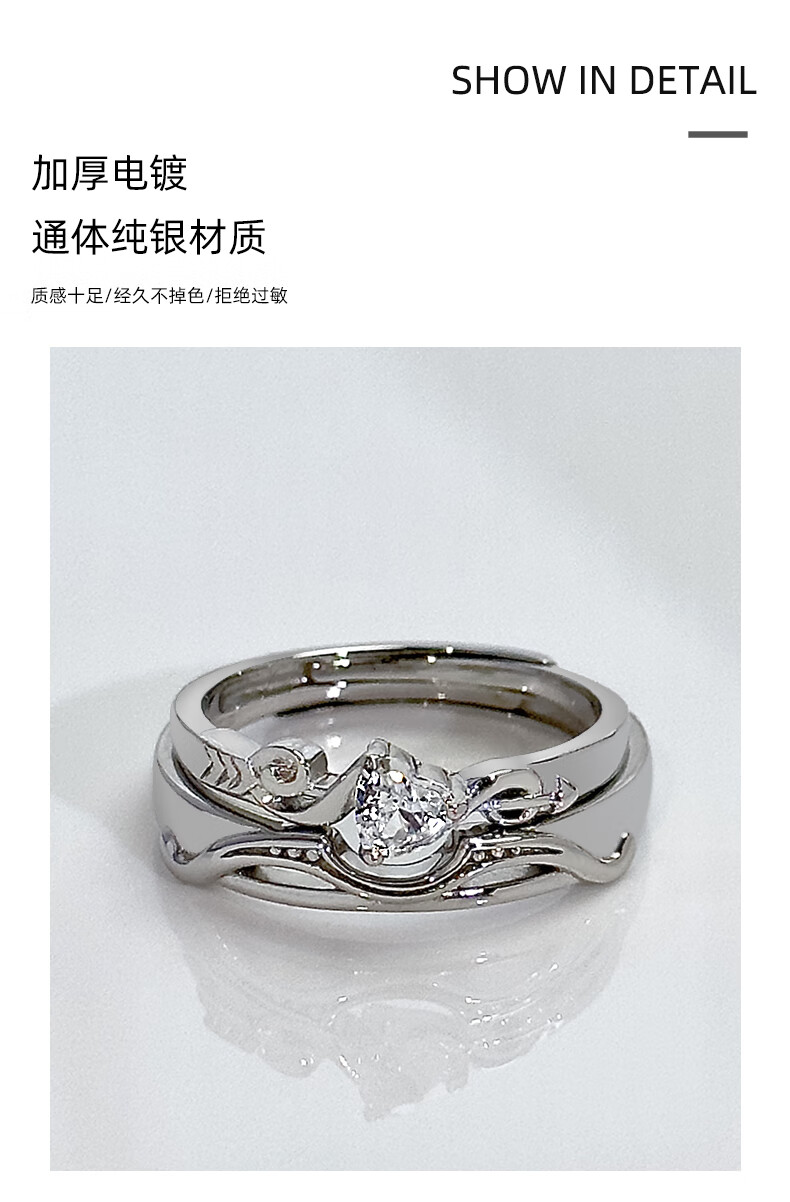 BOEAY Cupid's Arrow pure silver couple ring 999 sterling silver ring women's men's and boys Zhong Jiujiu proposes marriage free engraving 999 silver Cupid's Arrow couple ring
