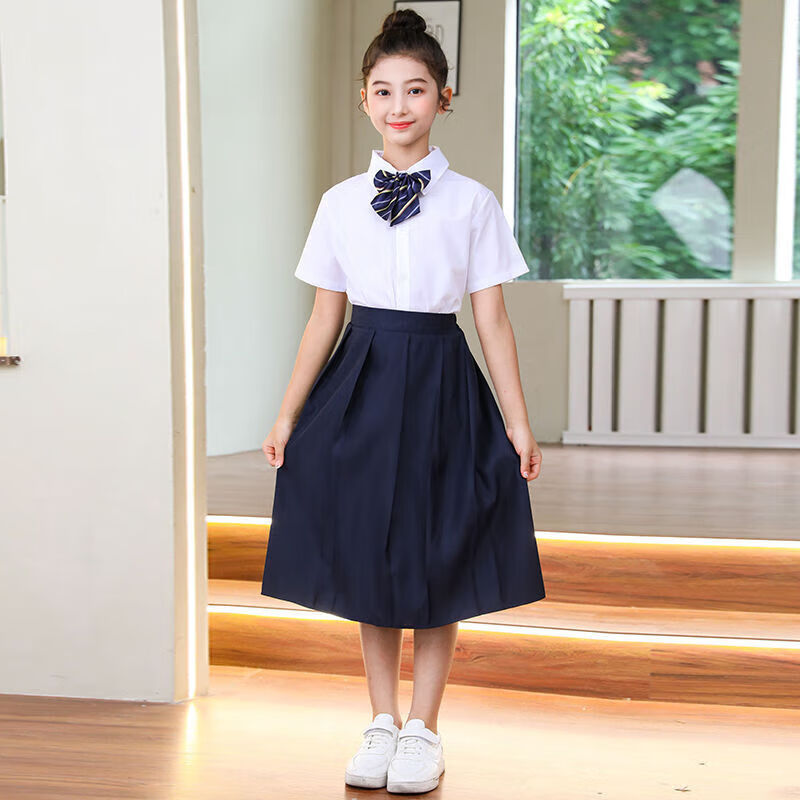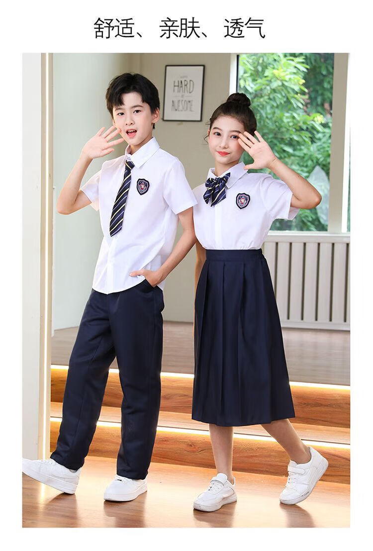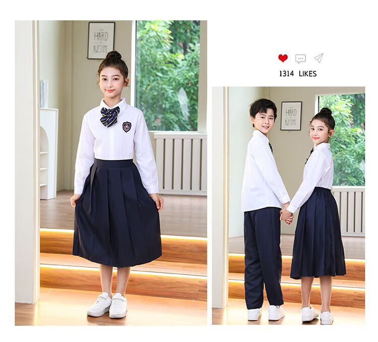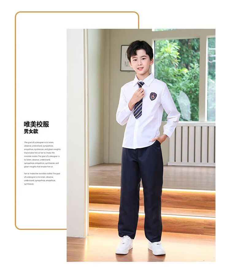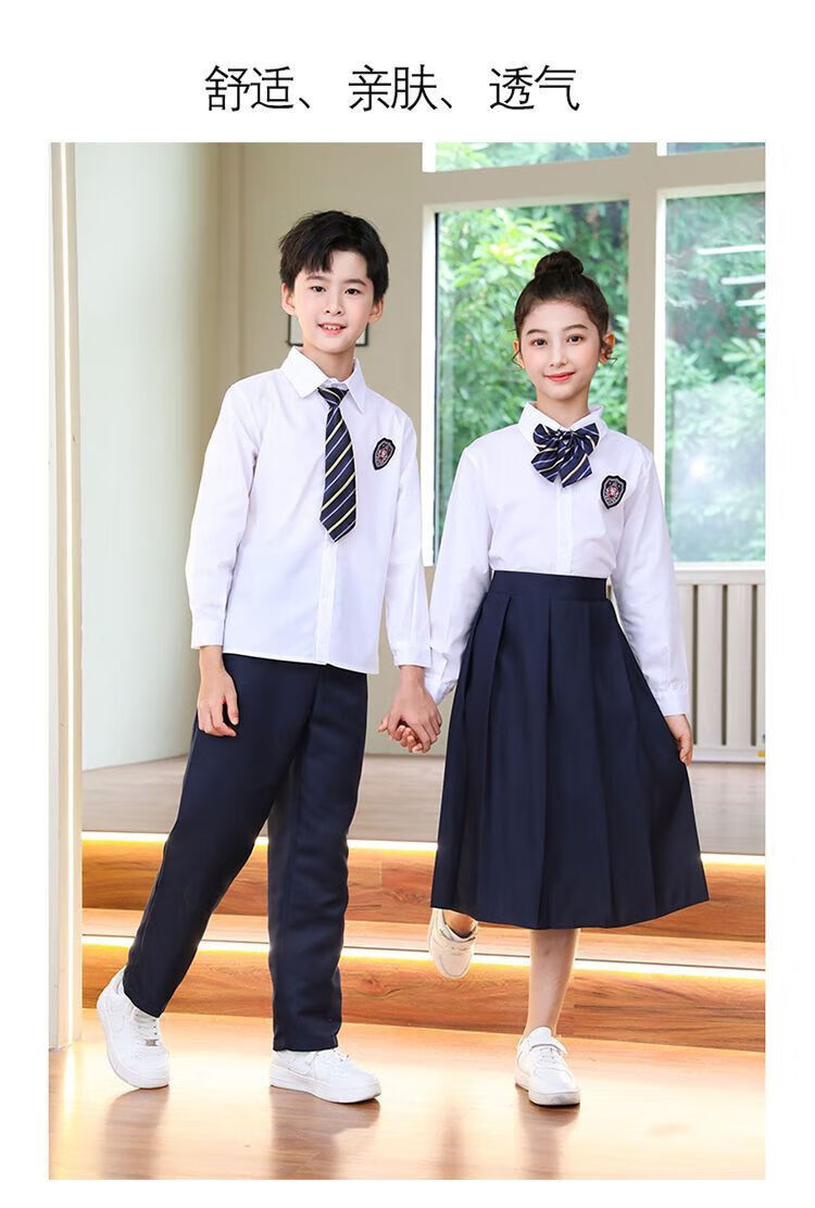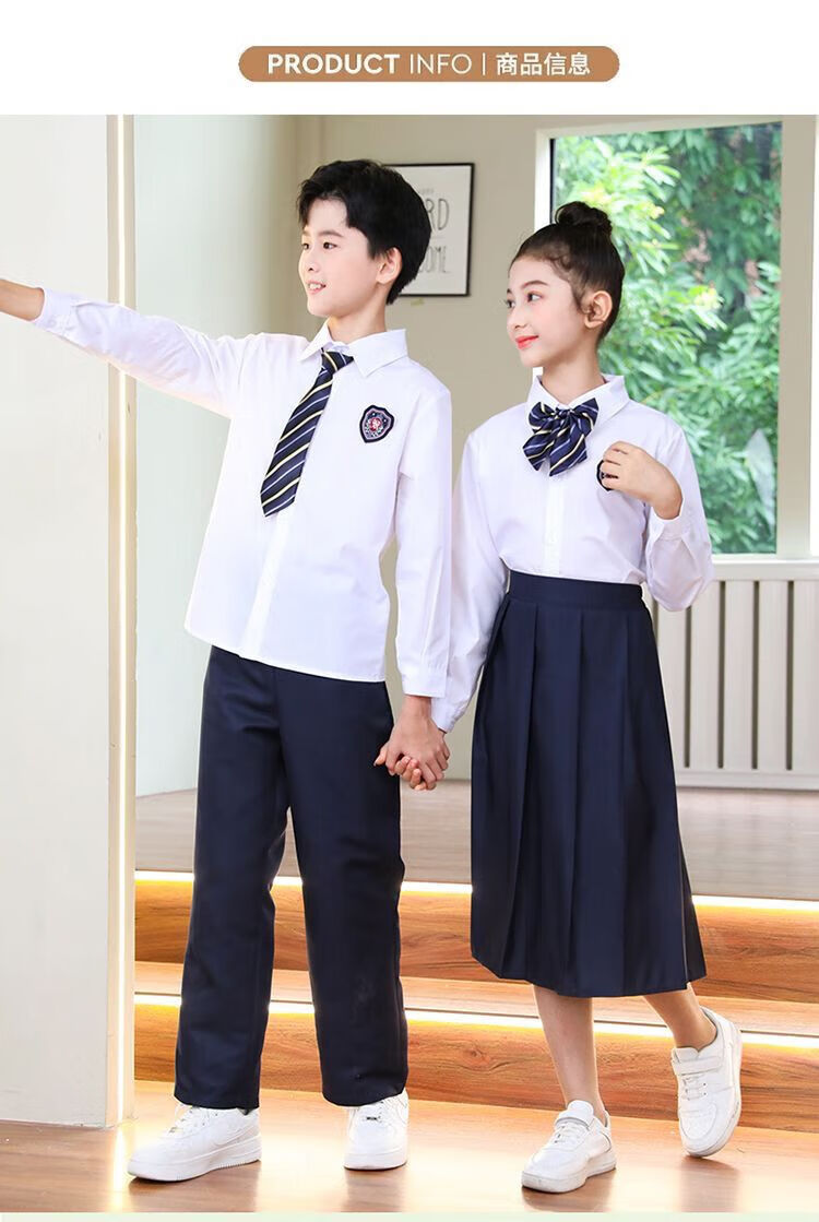 Sheng Miaoci British Children's Chorus Costumes Primary and Secondary School Students Performance Costumes Recitation Cantata Class Costumes Host Dress White Long Sleeves + Navy Blue Trousers Free (Tie Medal) S 160 (Quality Assurance)