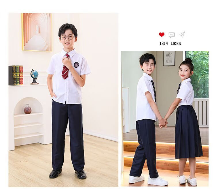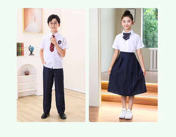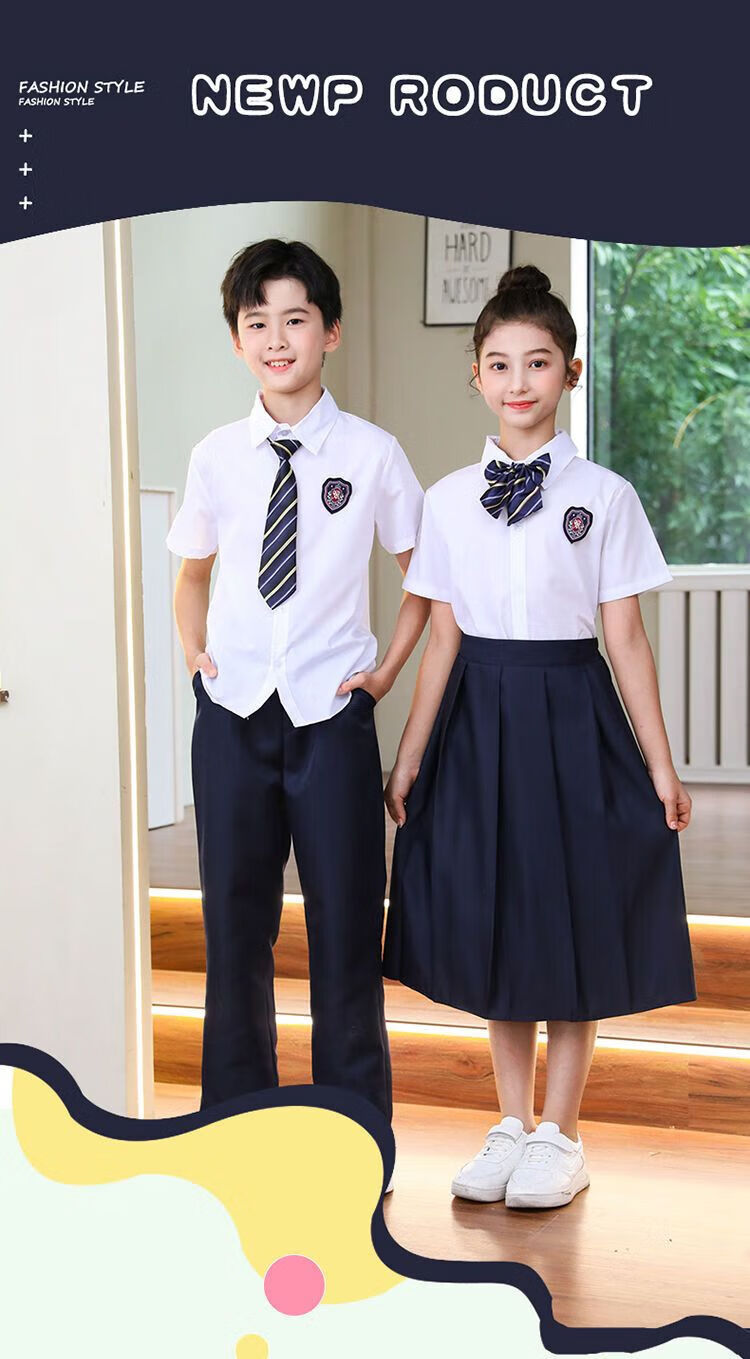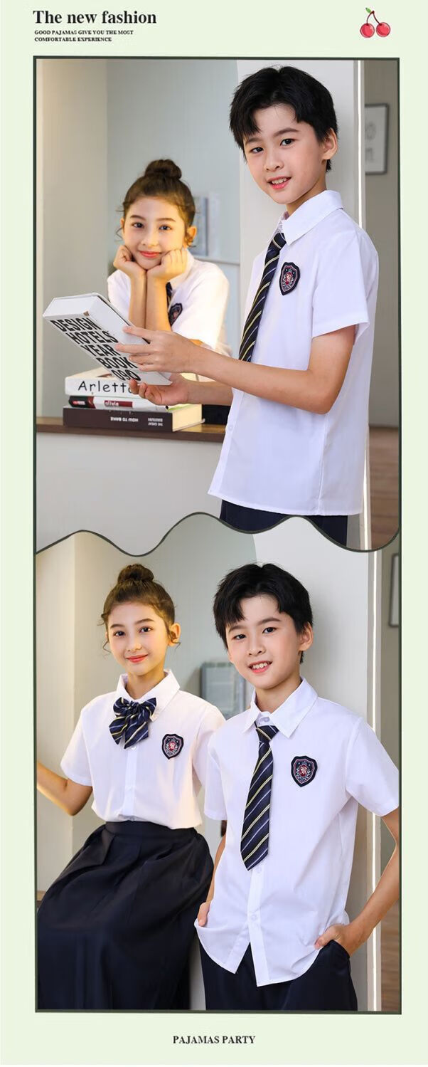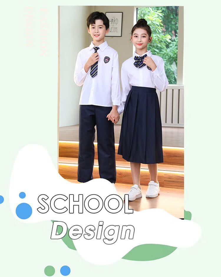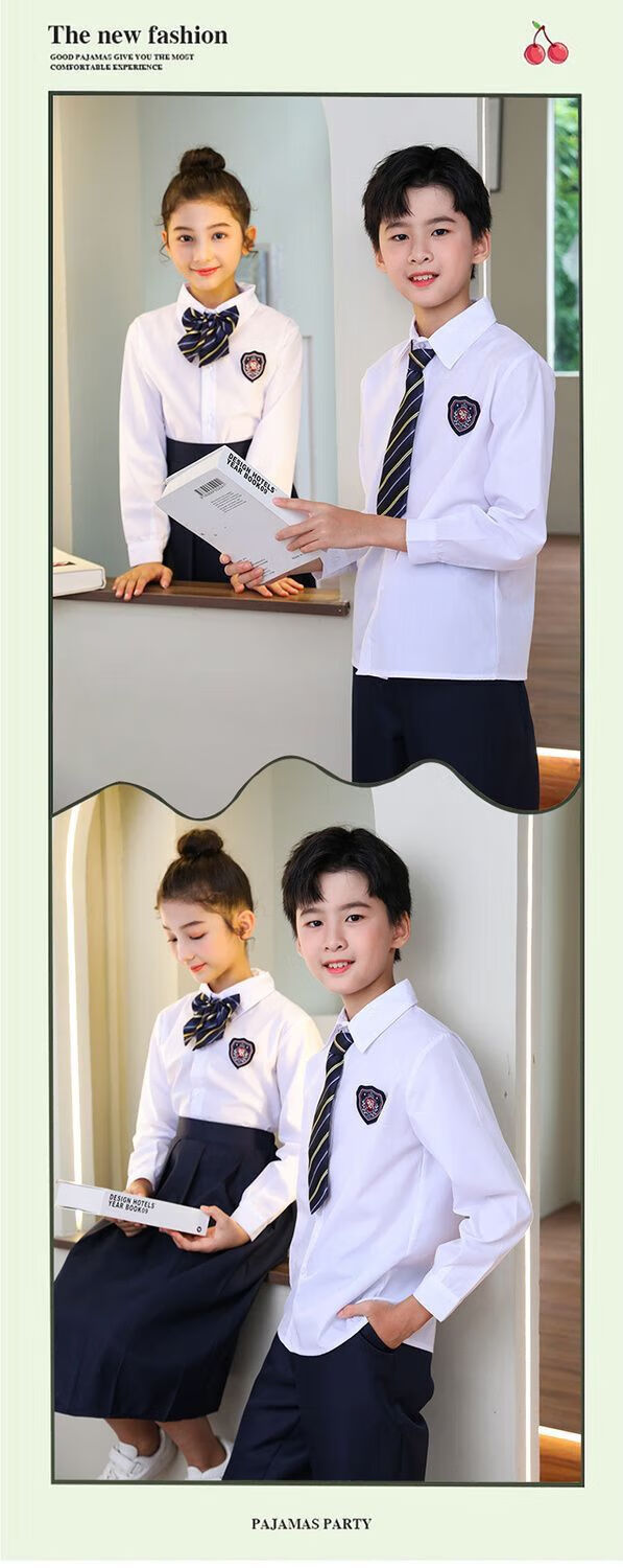 Sheng Miaoci British Children's Chorus Costumes Primary and Secondary School Students Performance Costumes Recitation Cantata Class Costumes Host Dress White Long Sleeves + Navy Blue Trousers Free (Tie Medal) S 160 (Quality Assurance)