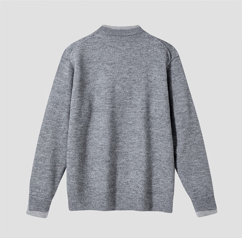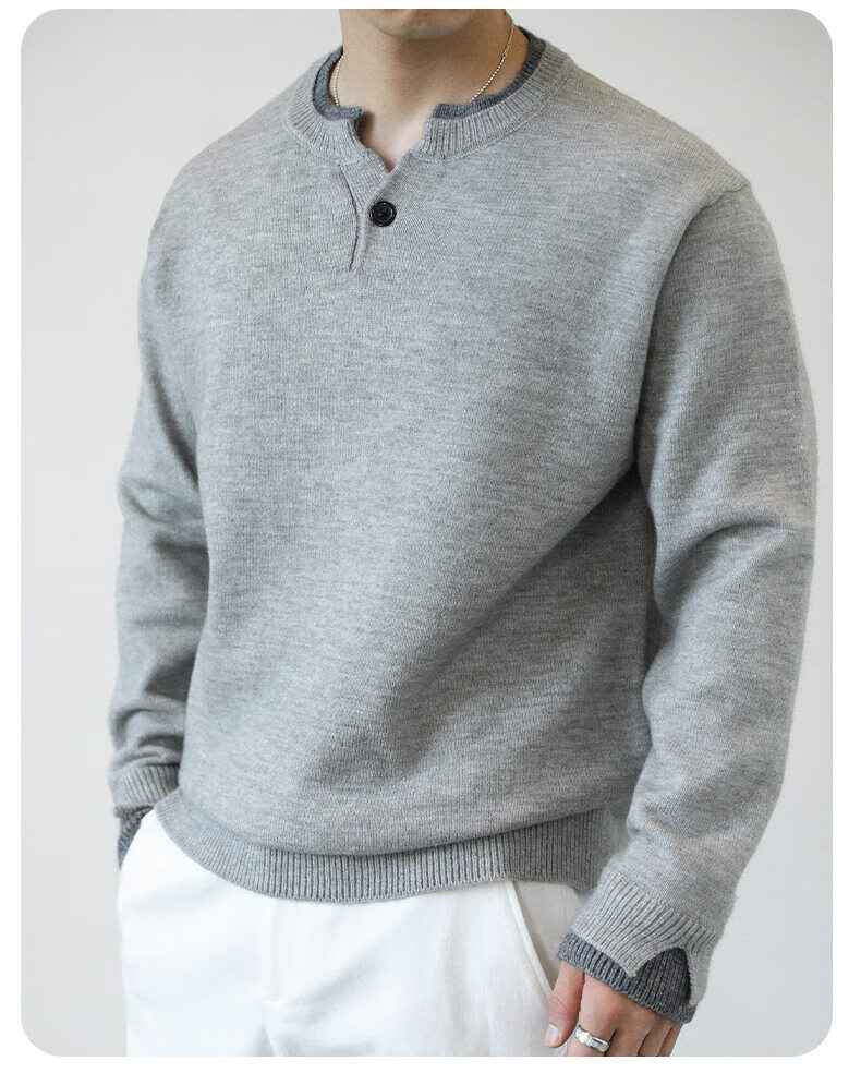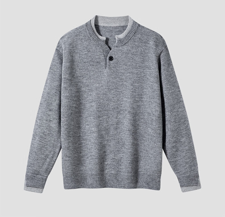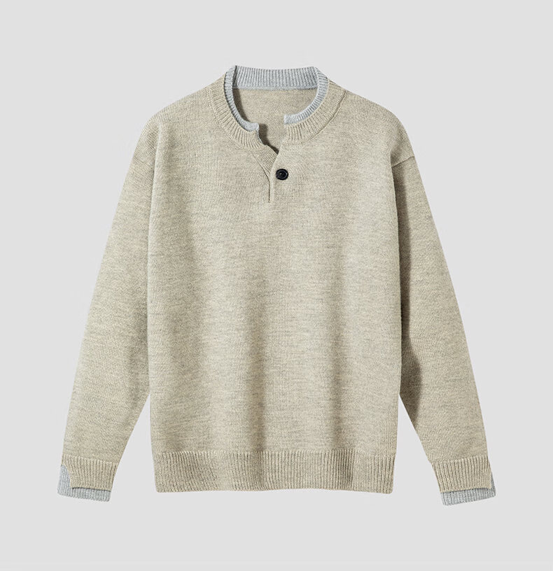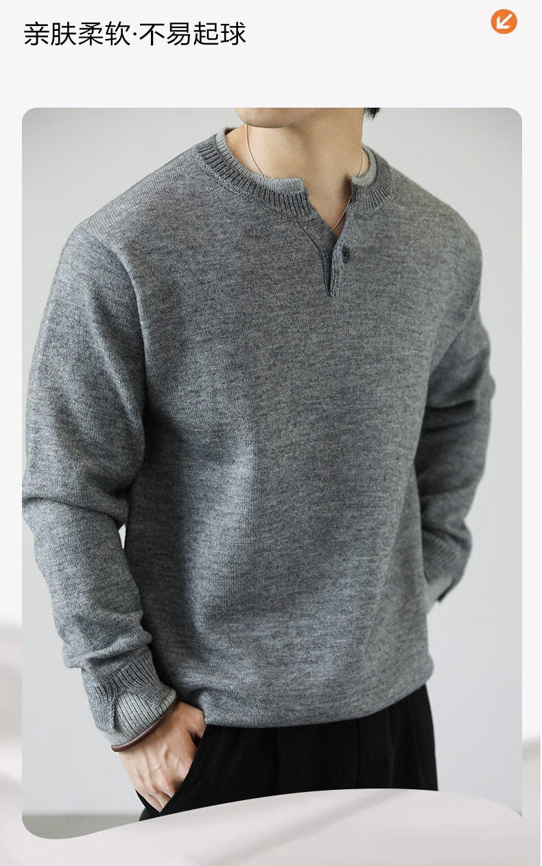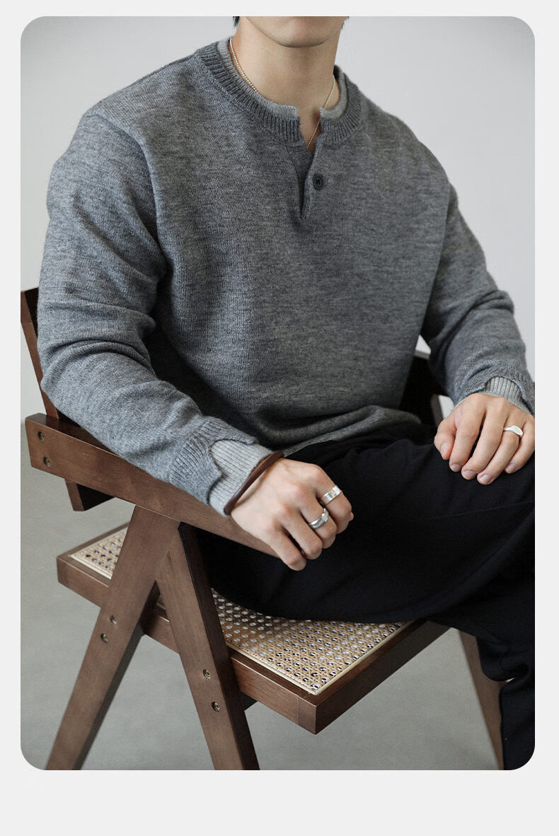 Kuraishi Kazuki trendy brand old money retro Henry collar sweater men's 2025 autumn and winter fashion versatile casual warm top light gray M