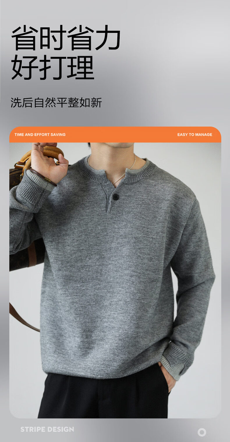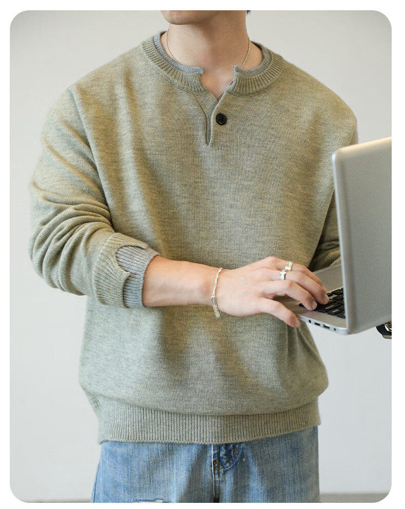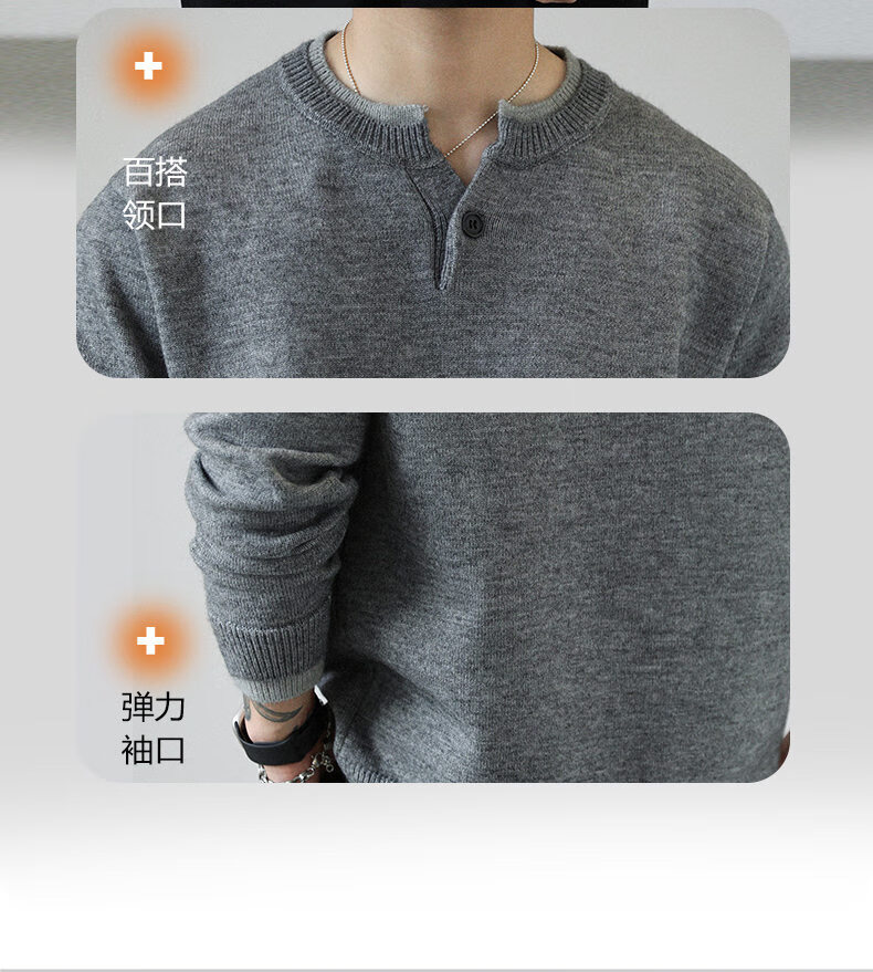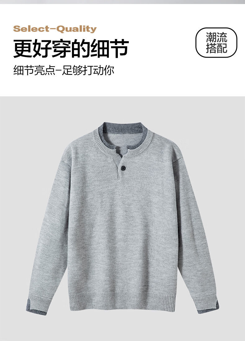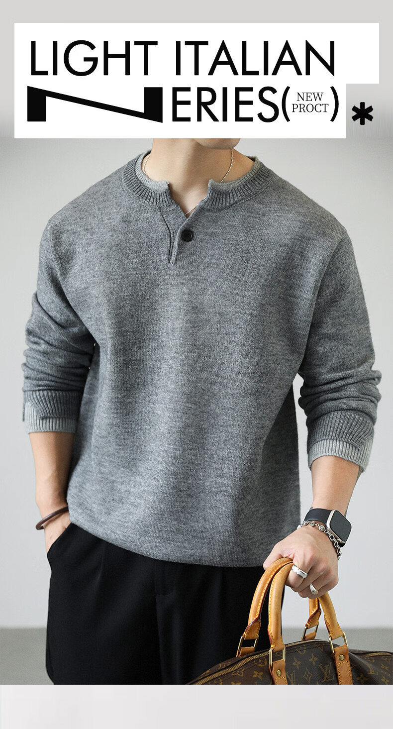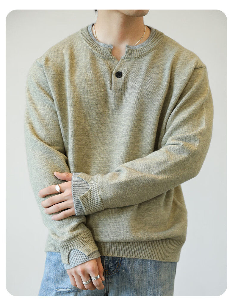 Kuraishi Kazuki trendy brand old money retro Henry collar sweater men's 2025 autumn and winter fashion versatile casual warm top light gray M