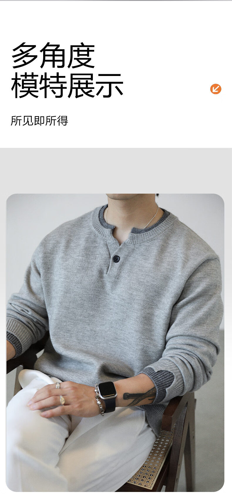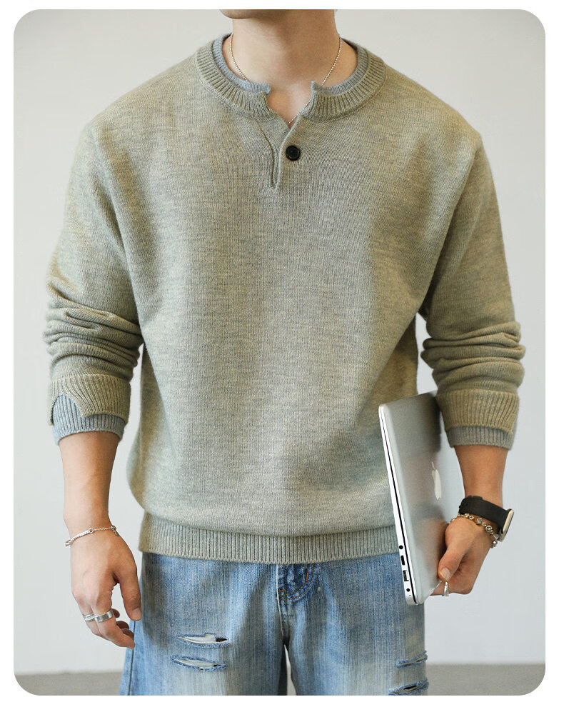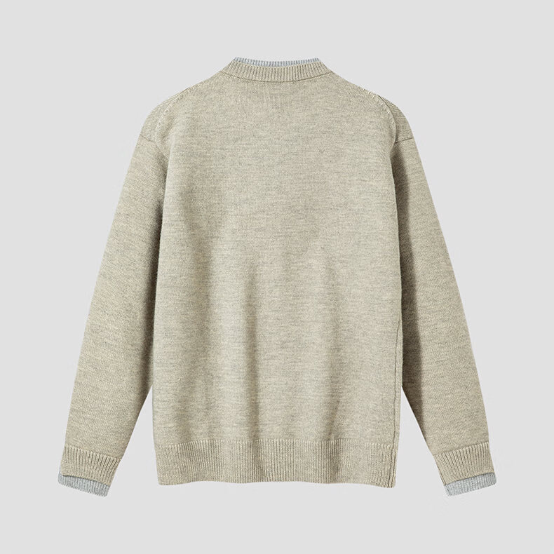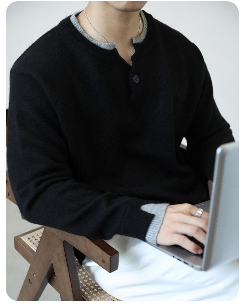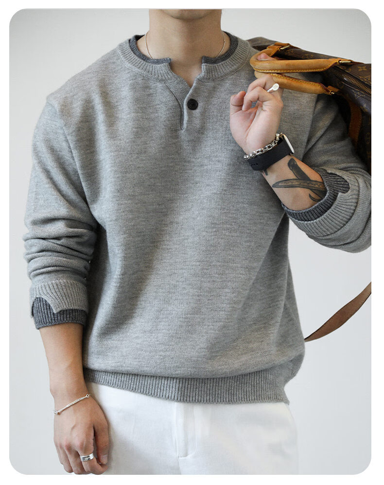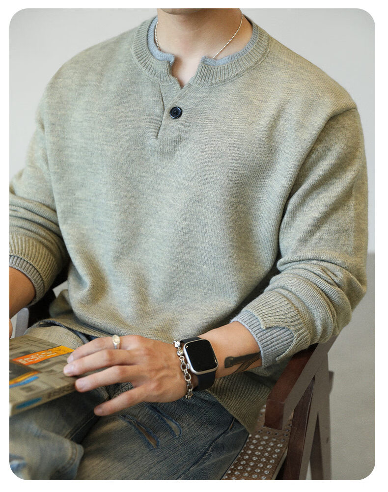 Kuraishi Kazuki trendy brand old money retro Henry collar sweater men's 2025 autumn and winter fashion versatile casual warm top light gray M