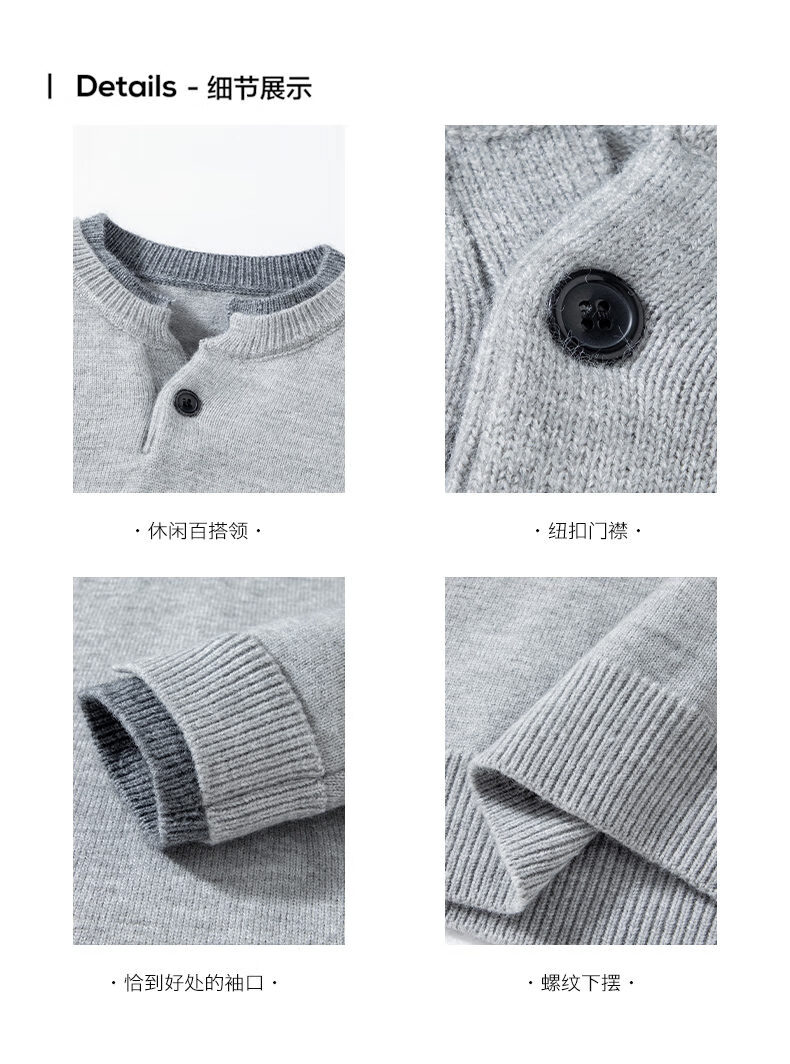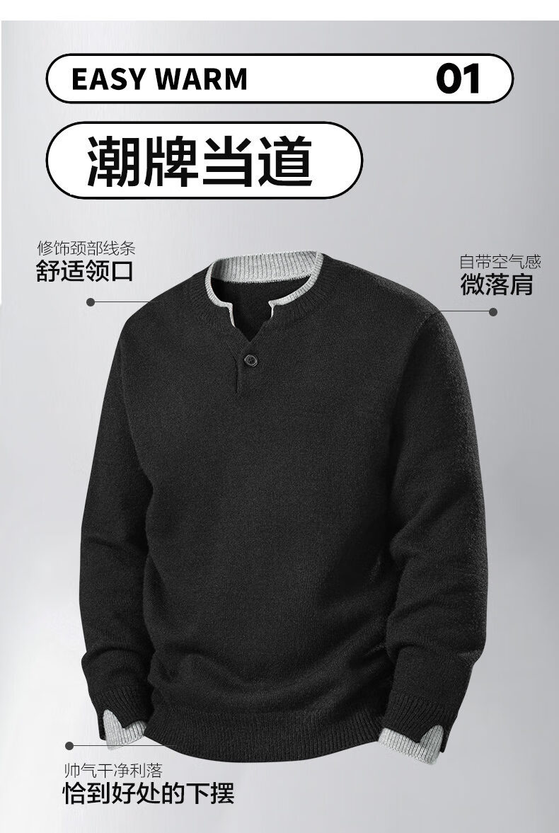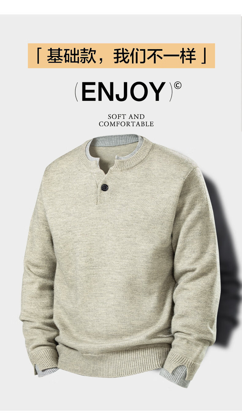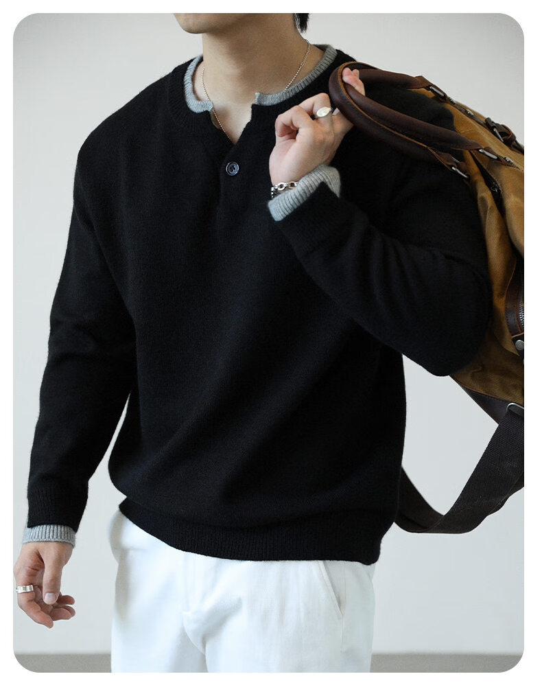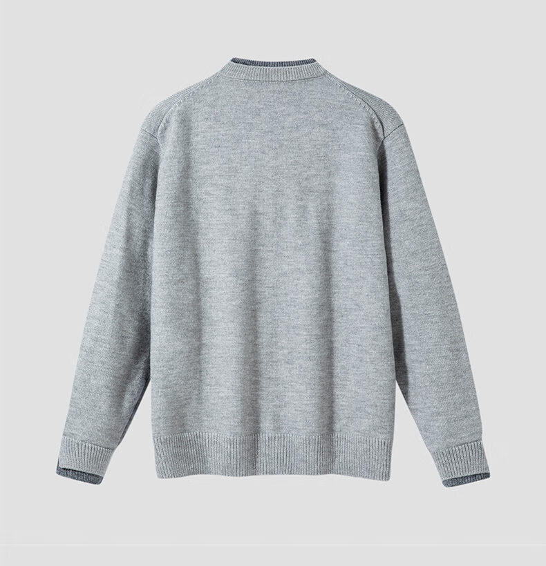 Kuraishi Kazuki trendy brand old money retro Henry collar sweater men's 2025 autumn and winter fashion versatile casual warm top light gray M