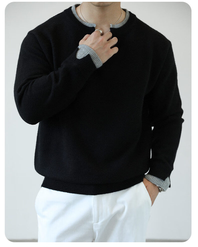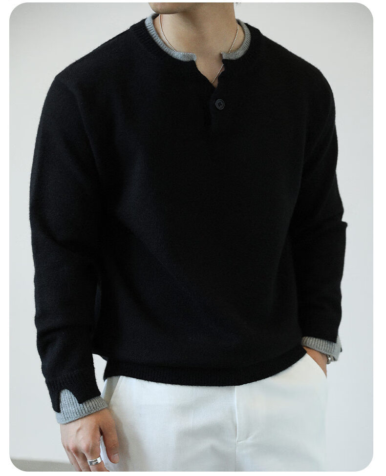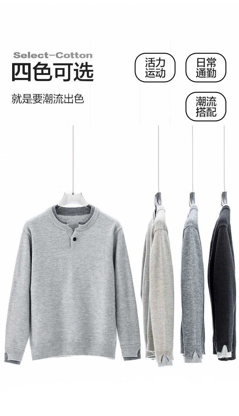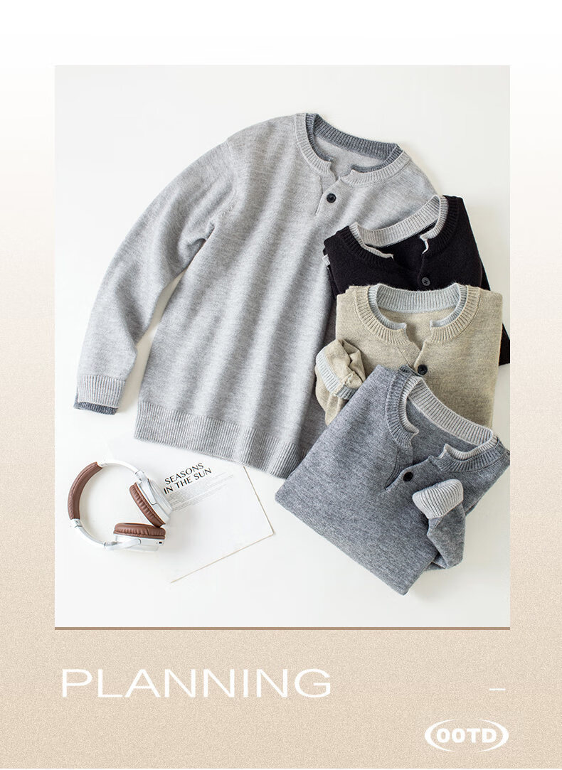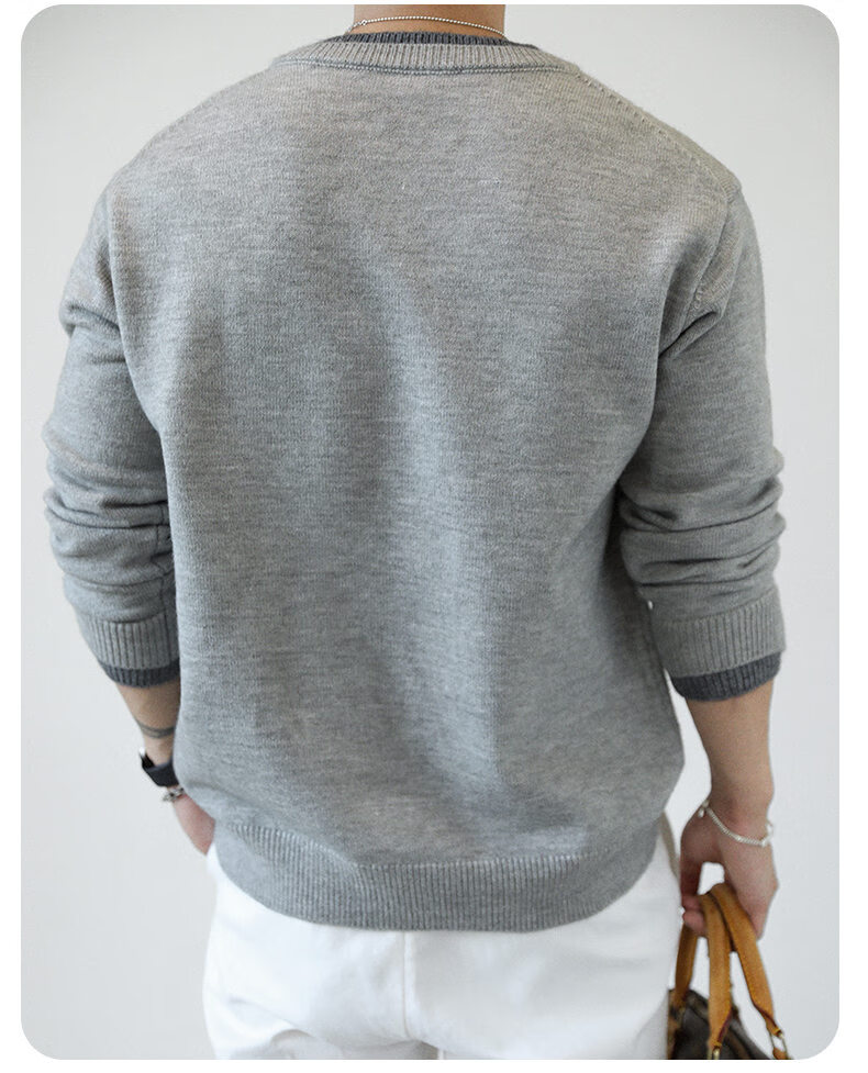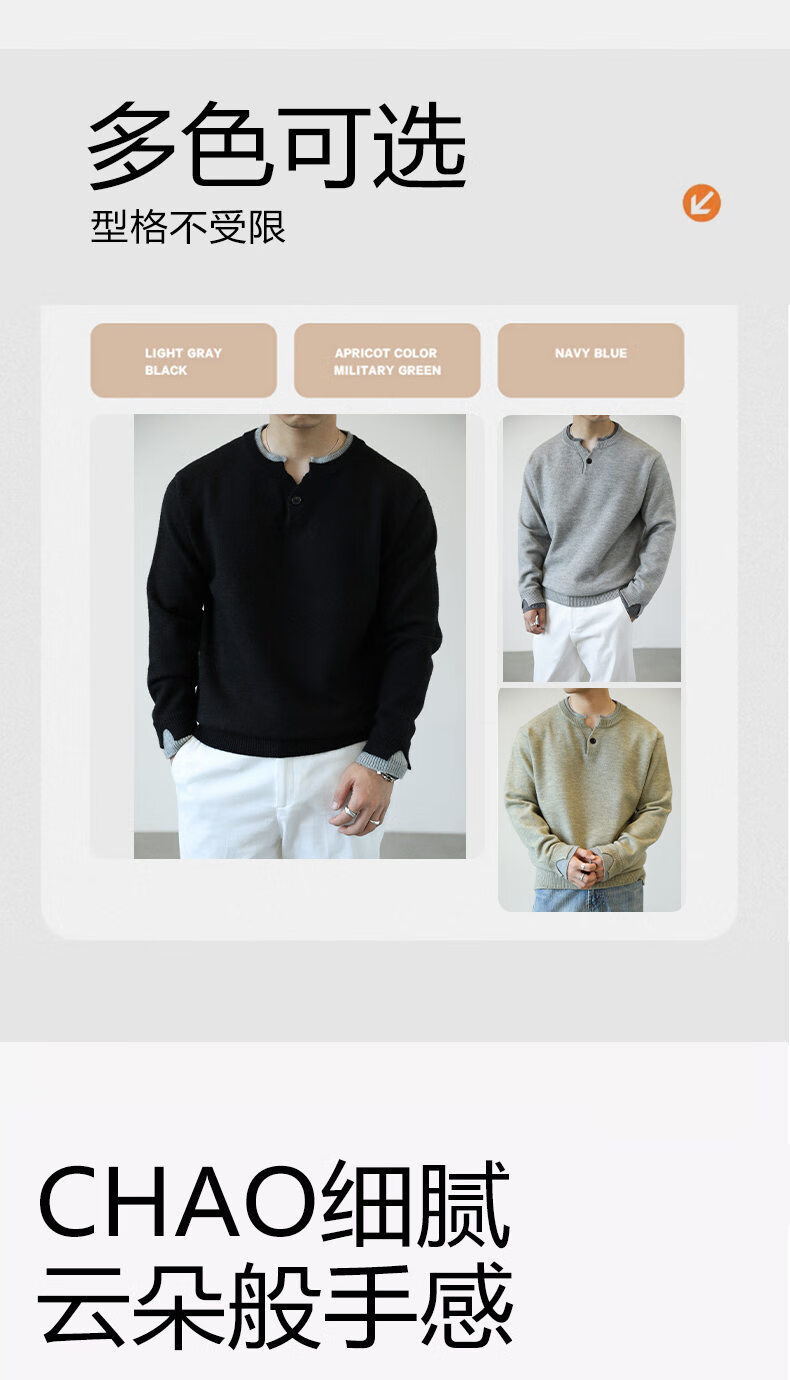 Kuraishi Kazuki trendy brand old money retro Henry collar sweater men's 2025 autumn and winter fashion versatile casual warm top light gray M