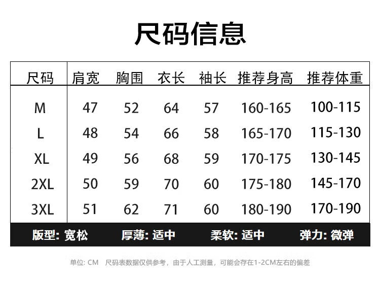 China (cm) 165 / 88-90 170 / 96-98 175 / 108-110 180 / 118-122 185 / 126-130