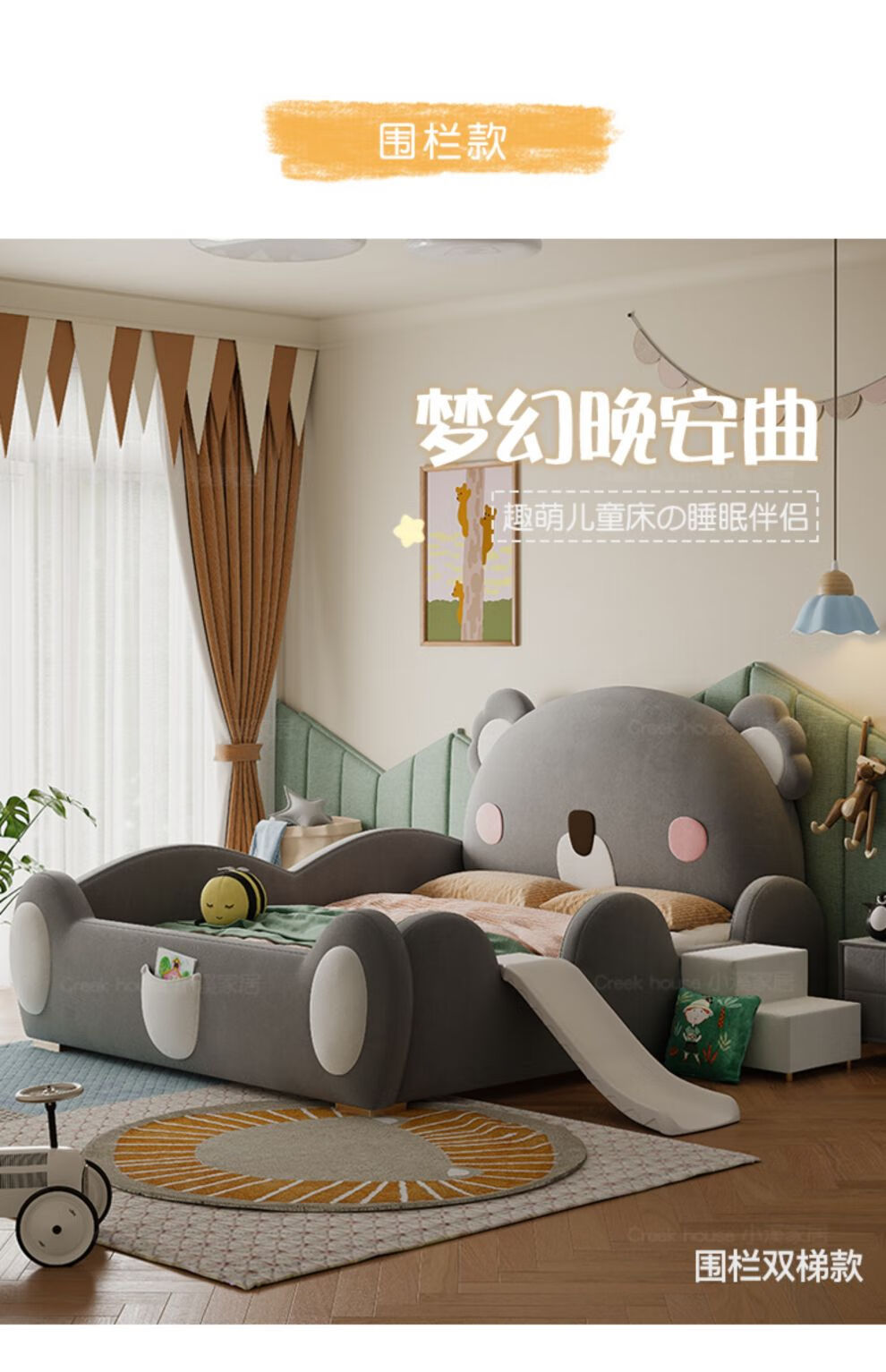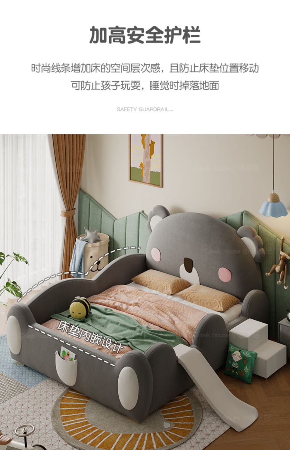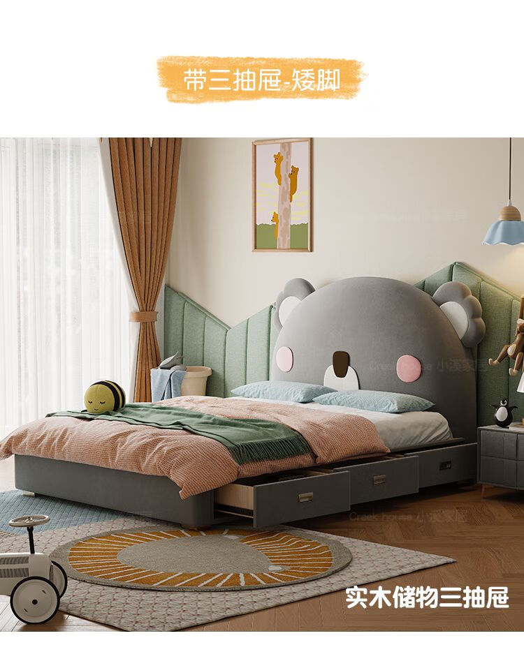 X.M.B bed girl bedroom princess bed small apartment storage bed 1.2M teenage boy single bed fence double ladder + coconut palm mattress 1800mm*2000mm x with
