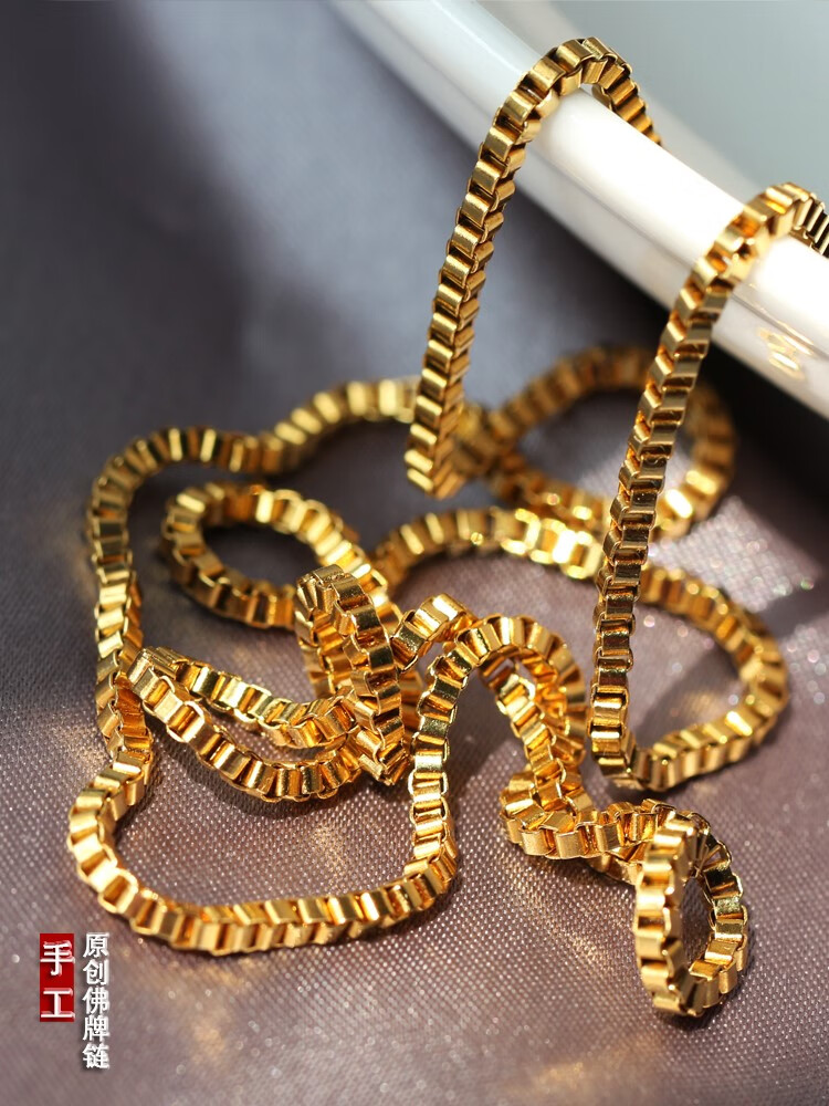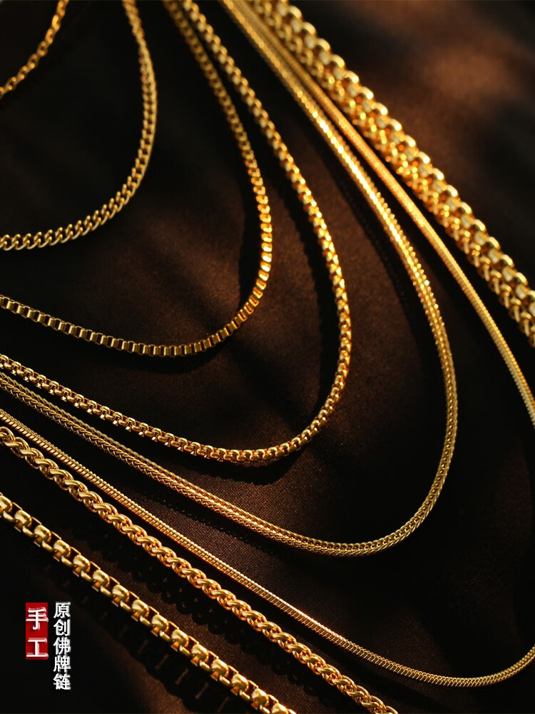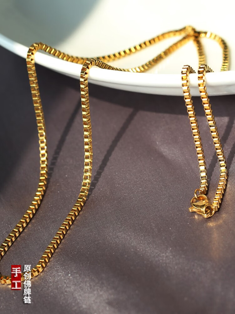 CHAUIYIN Chaoyin Old Phoenix 999 Thai Buddha Amulet Chain Gold Men and Women Long Fine Jade Hanging Chain Titanium Steel Sweater Necklace 1.5mm Box Chain Gold 50cm