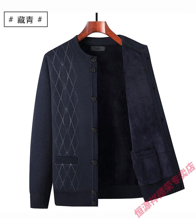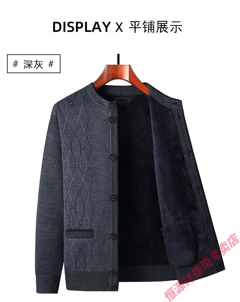 Hengyuanxiang woolen sweater men's velvet round neck warm button cardigan sweater for middle-aged and elderly thickened knitted jacket daddy X5 dark gray M 165 about 120Jin Jin is equal to 0.5kg within