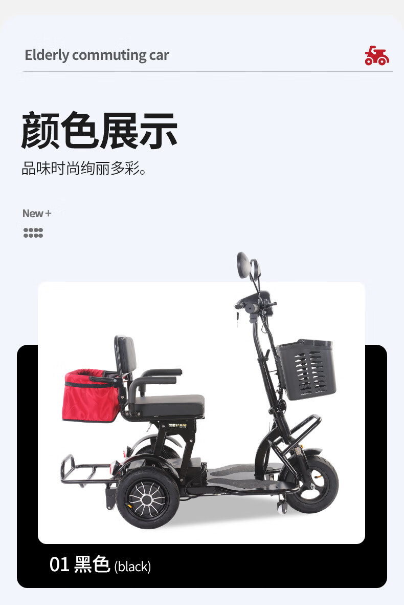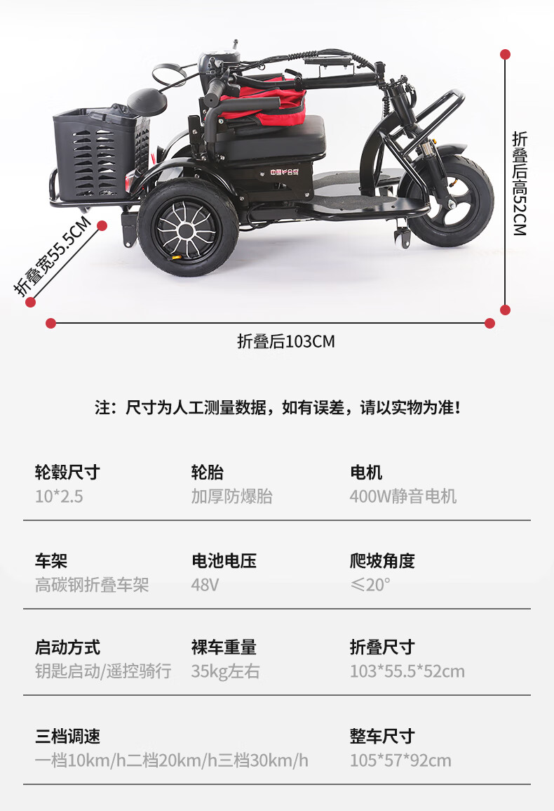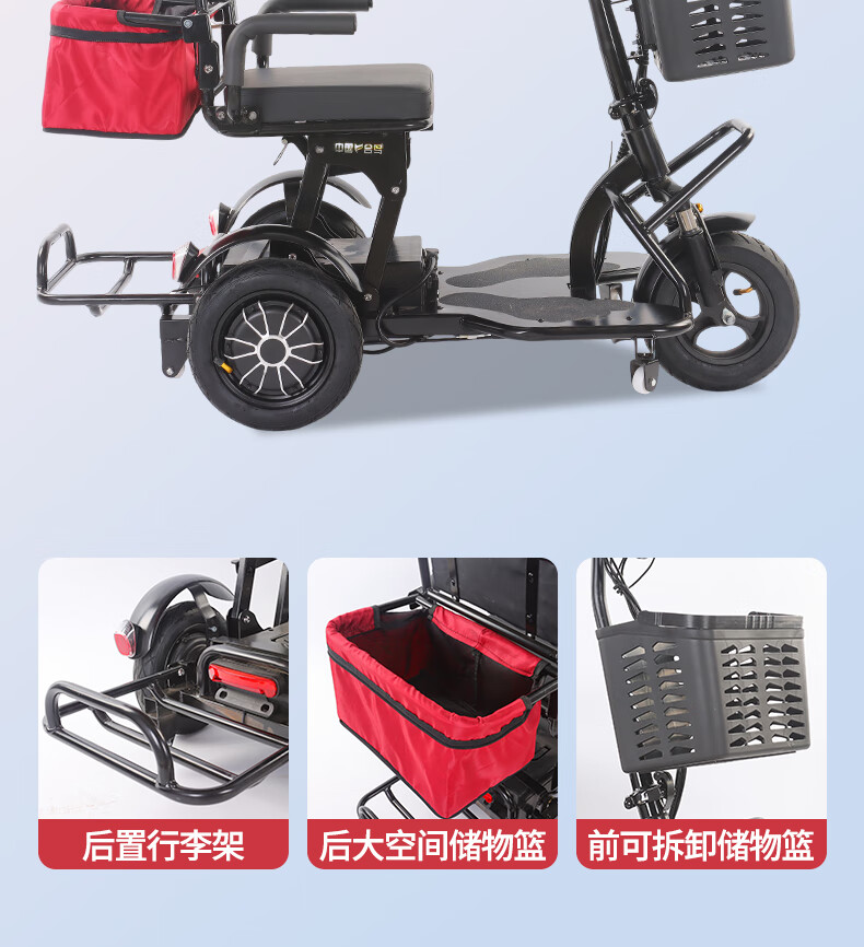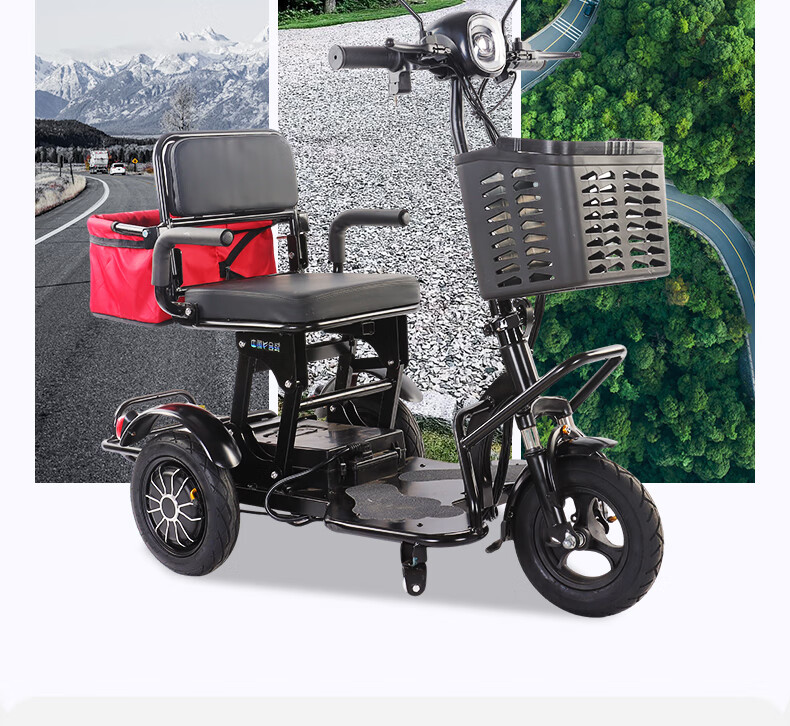 Small electric tricycle for home use to pick up and drop off children, ladies, elderly parent-child folding car, lightweight battery car, anti-rollover, dual drive, lithium battery, 48V-15A - battery life 60 miles
