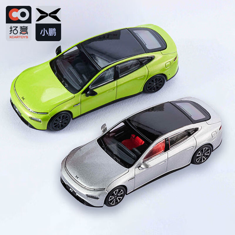 He Jiagong Xiaopeng P7 simulation alloy car 164 miniature model new energy car model children's car toy ornaments T1110 Xiaopeng P7i interstellar green
