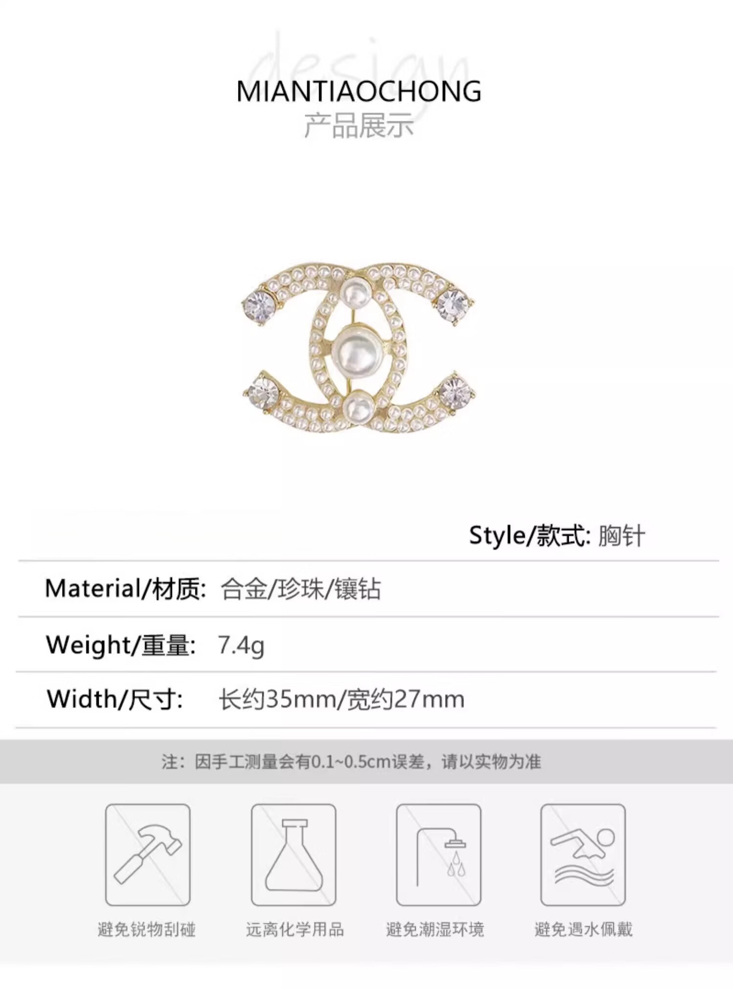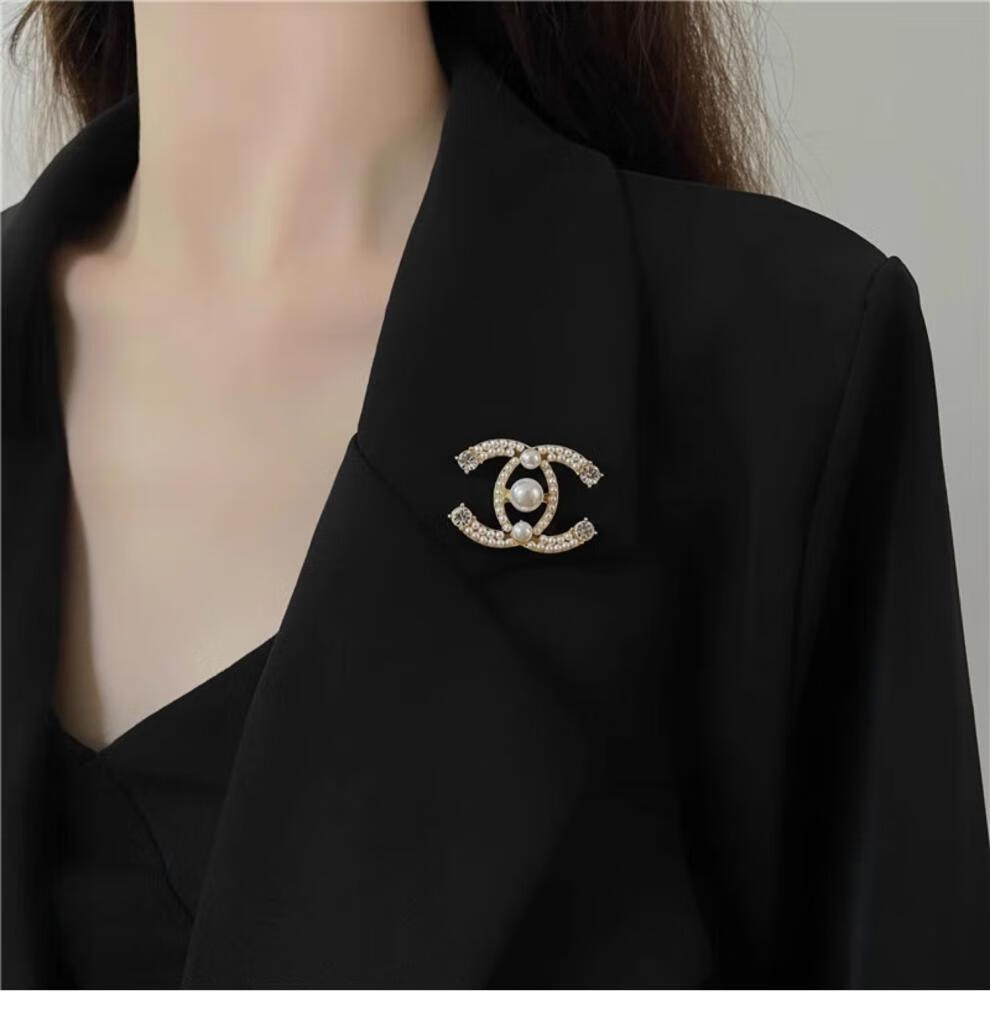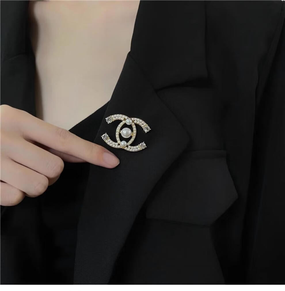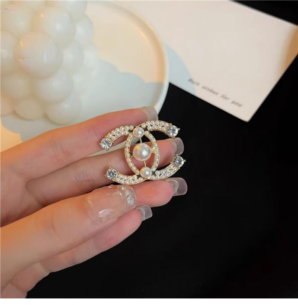 SNQP Korean light luxury temperament small fragrance style letter pearl brooch for women exquisite fashion suit sweater accessories pearl zircon earrings-silver needle