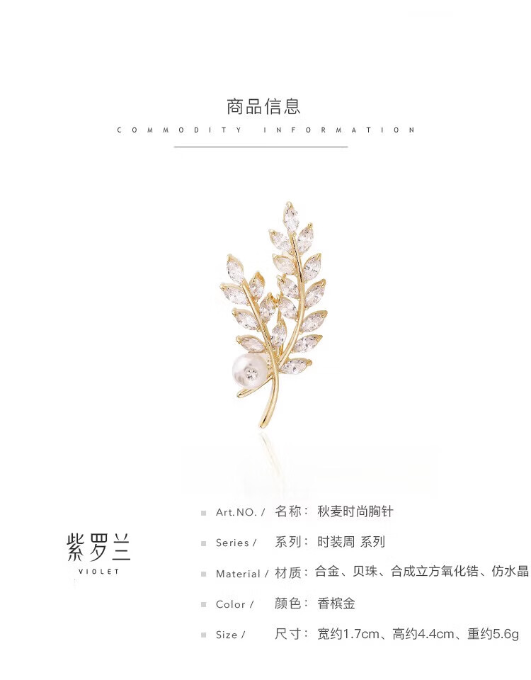 SNQP Autumn Wheat Pearl Brooch Feminine Exquisite Corsage Suit Birthday Gift Champagne Gold