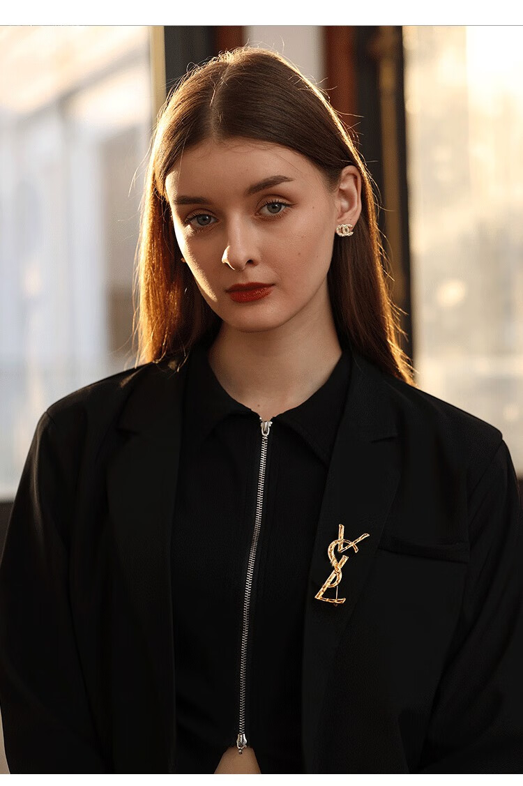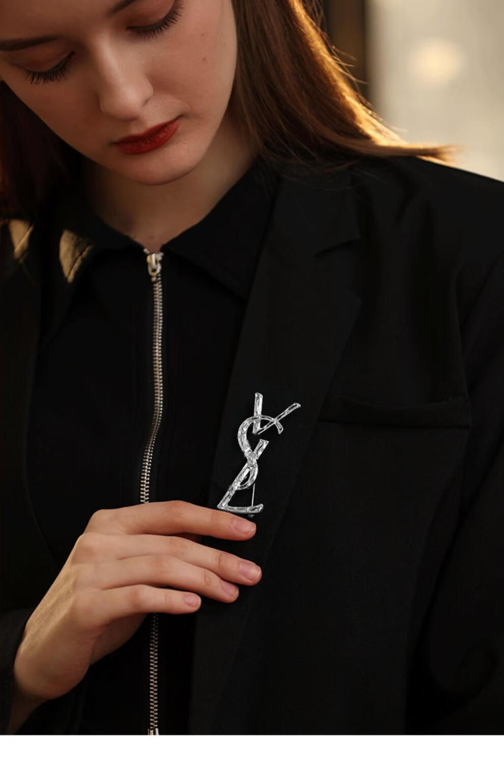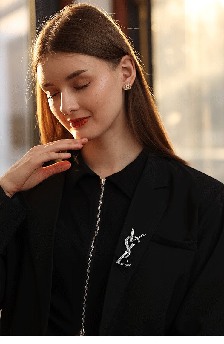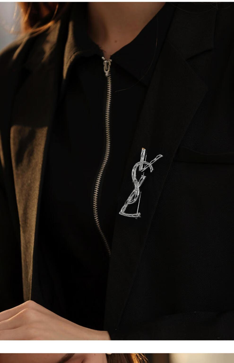 SNQP Letter Brooch Lapel Pin Women's Crystal Corsage Style Suit Coat Small Fragrance Retro Pin Snake Pattern - Bronze