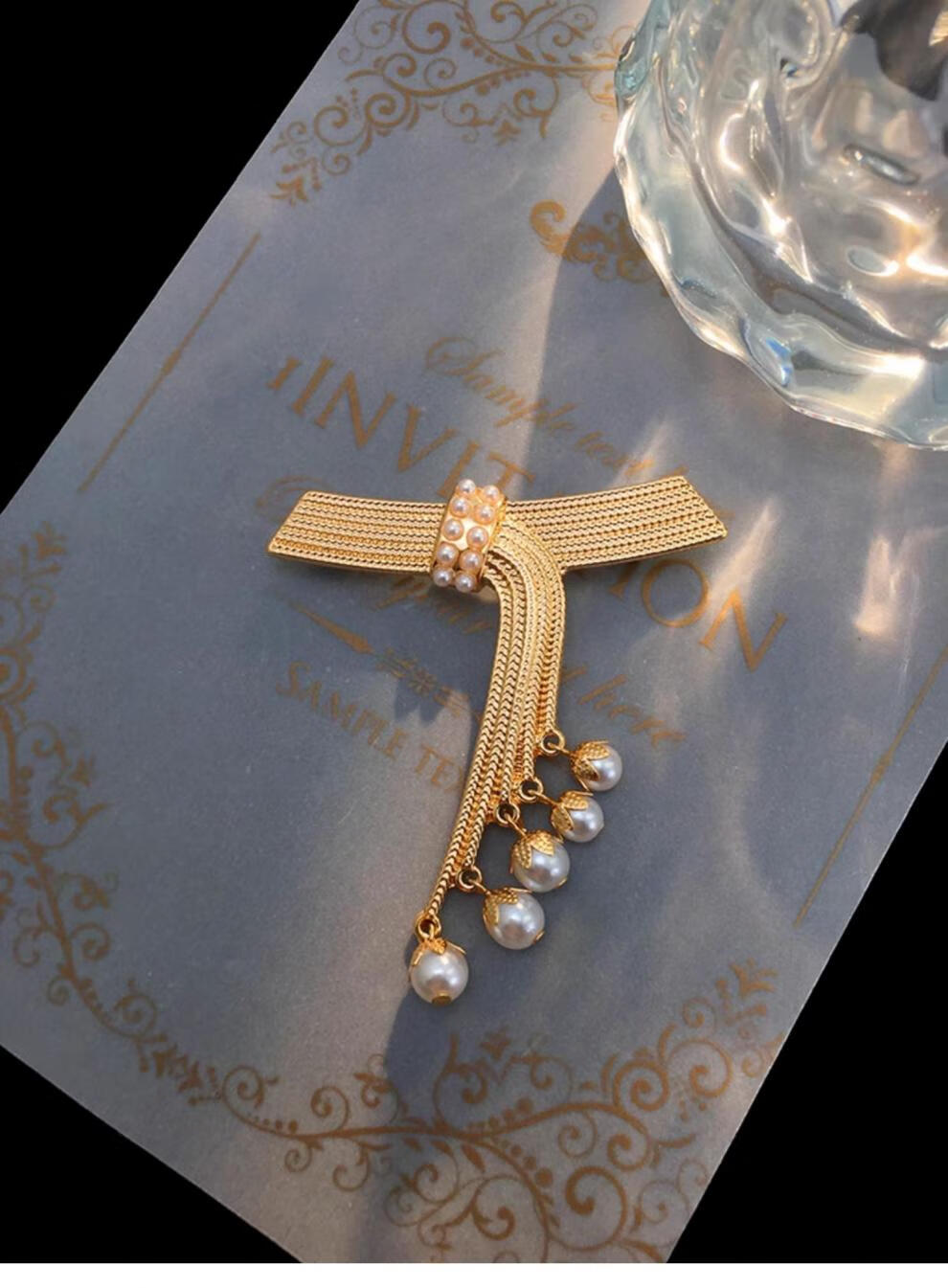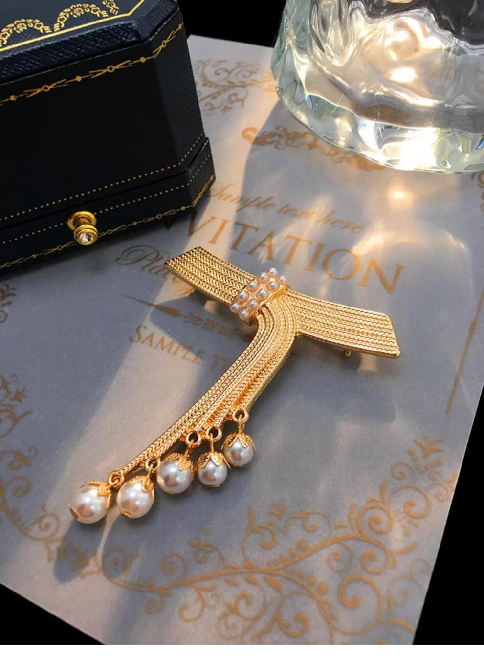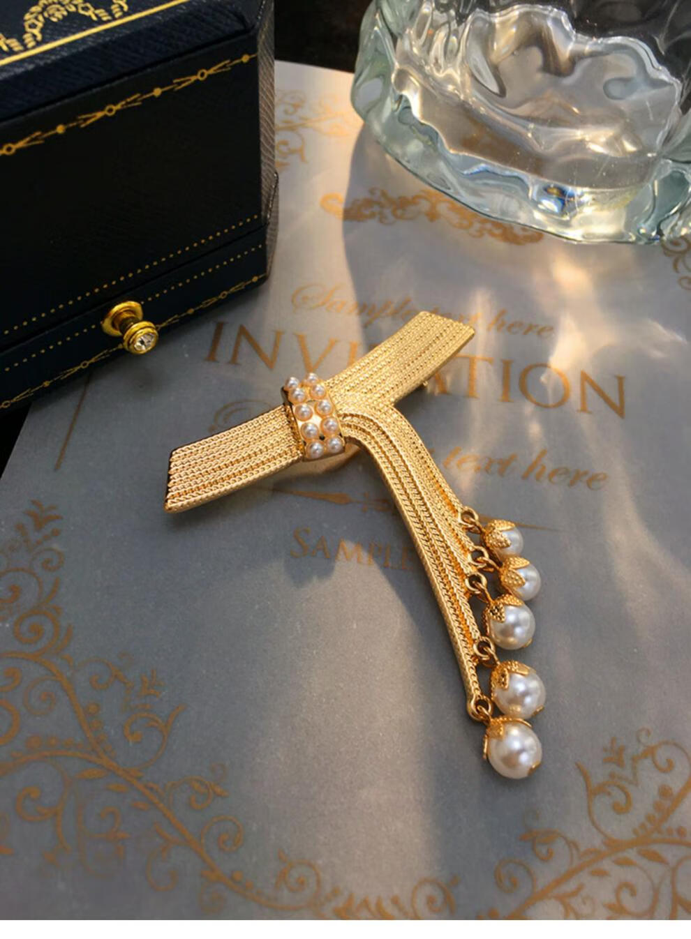 SNQP European and American style matte gold brooch women's retro pearl corsage large brooch matte gold