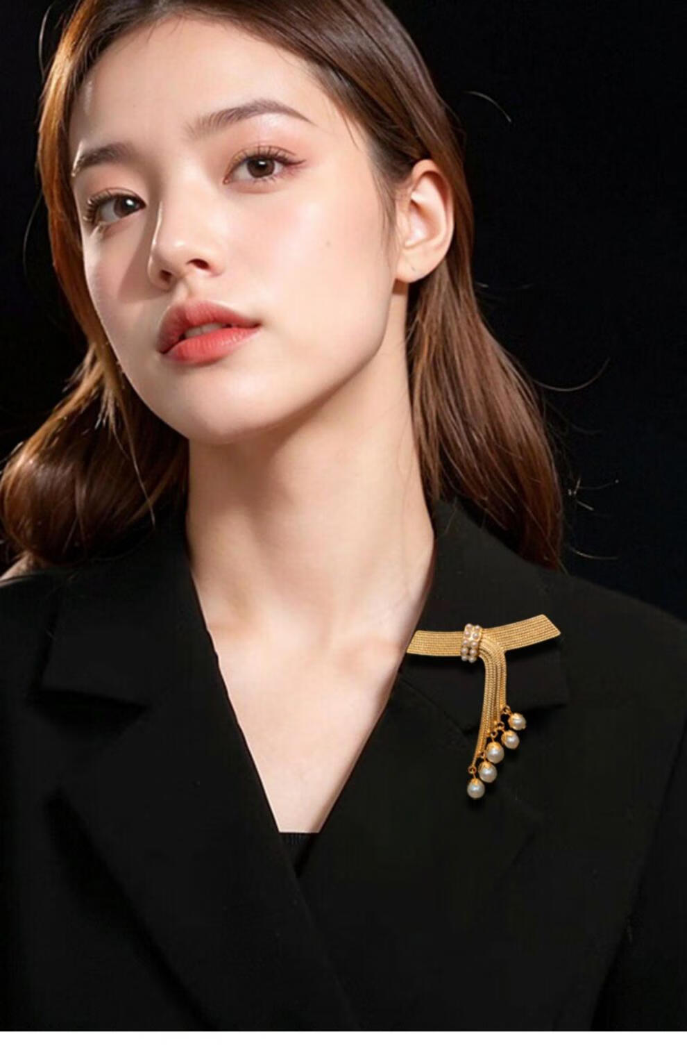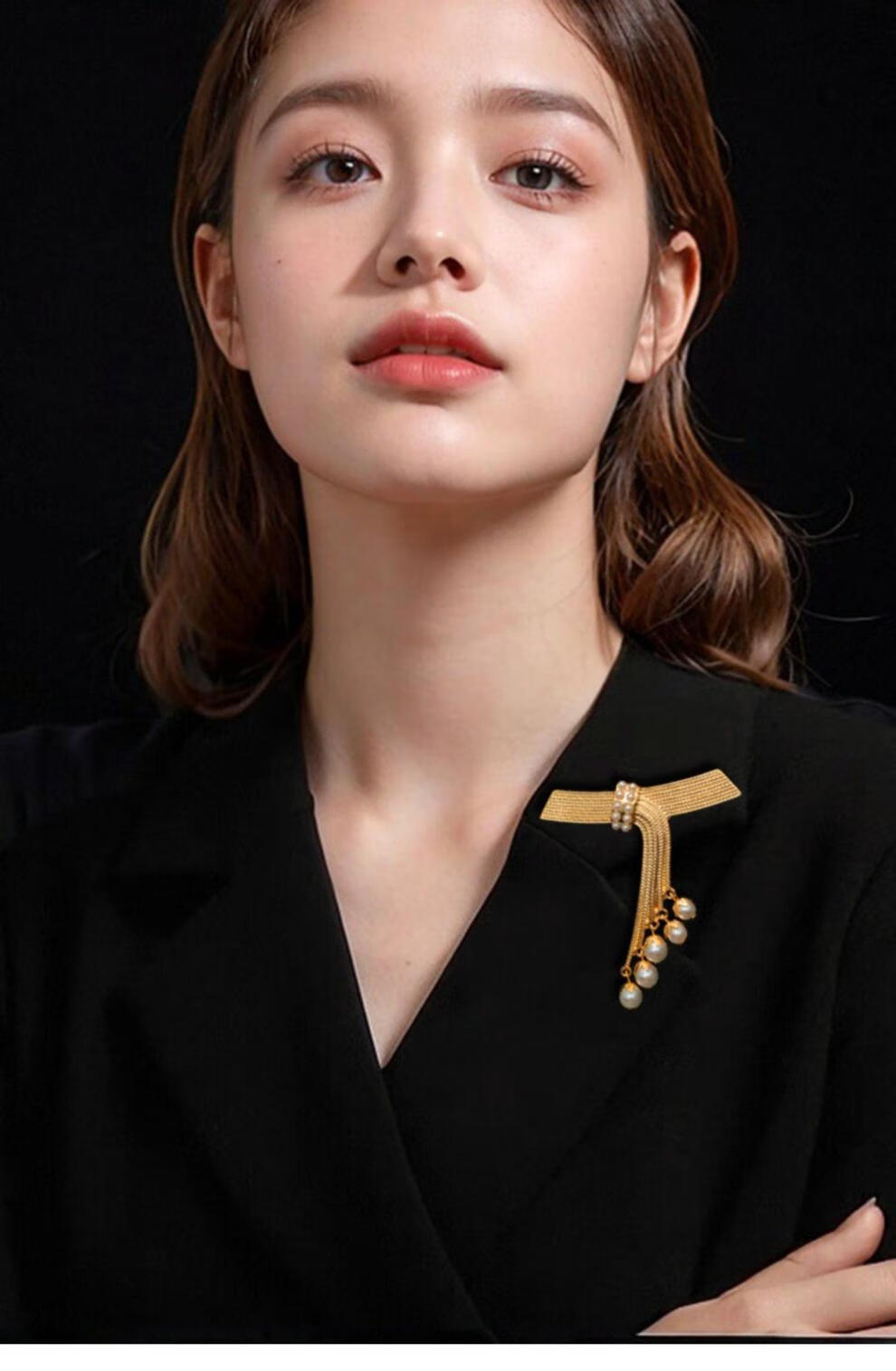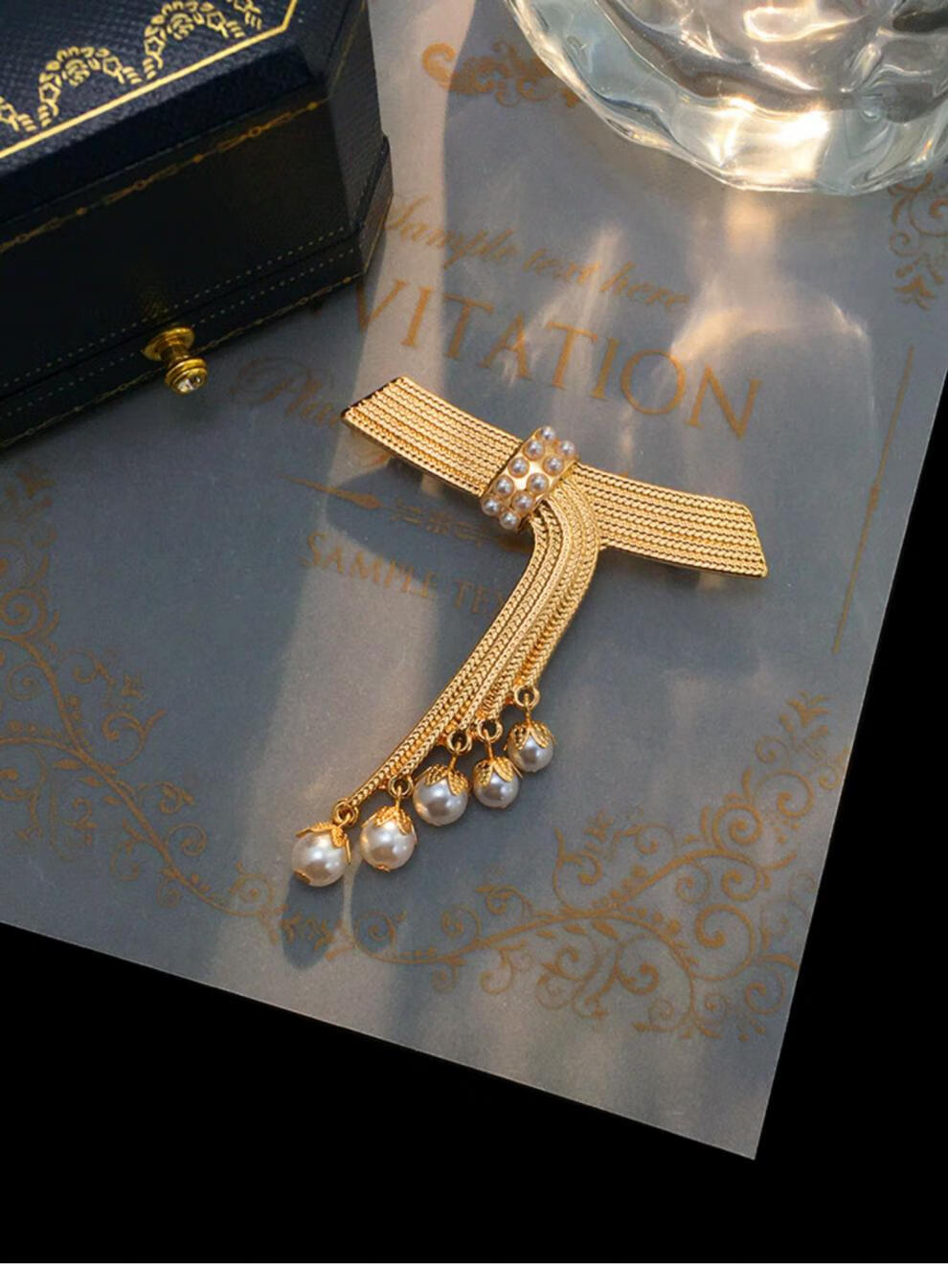 SNQP European and American style matte gold brooch women's retro pearl corsage large brooch matte gold